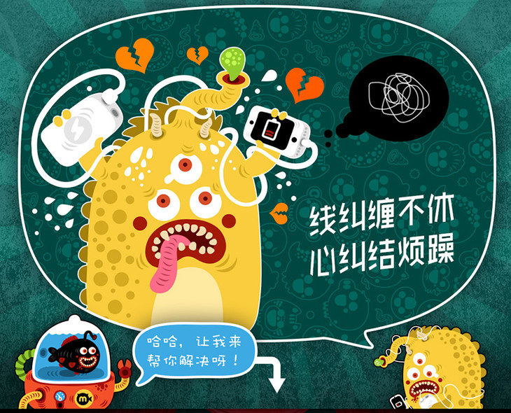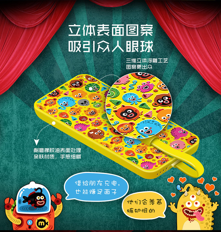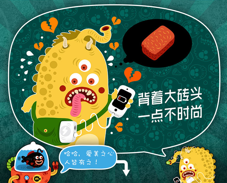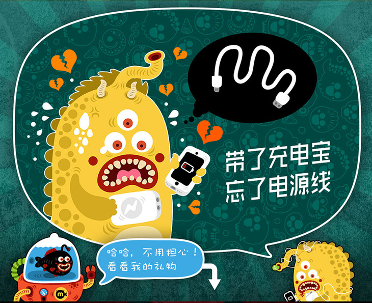 黑鱼自带线苹果X超薄8000毫安移动电源