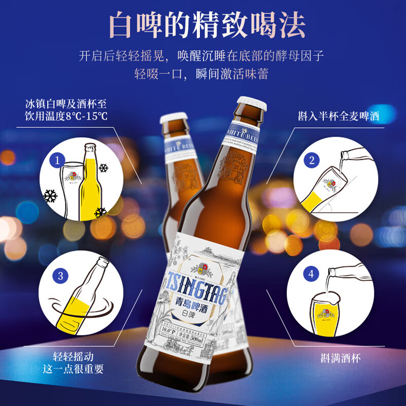 青岛啤酒(TsingTao)全麦白啤10度500ml*1瓶/6瓶/12瓶