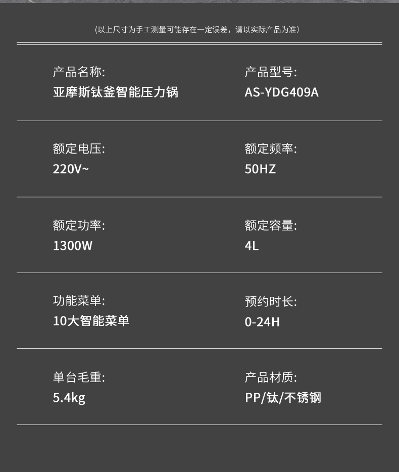 亚摩斯钛多功能电压力锅AS-YDG409A