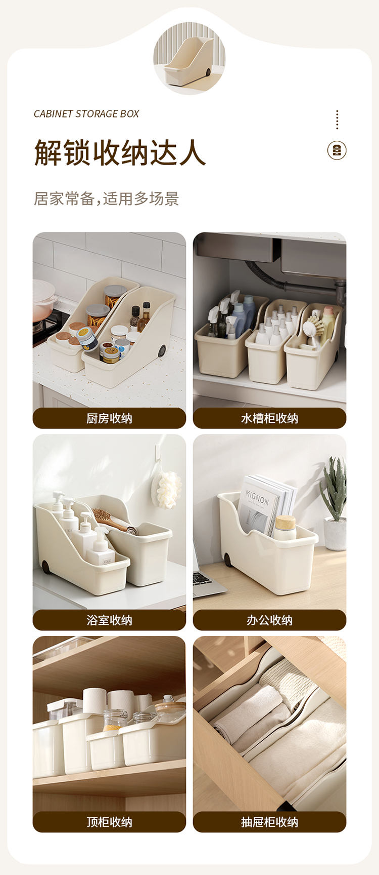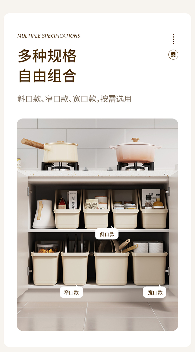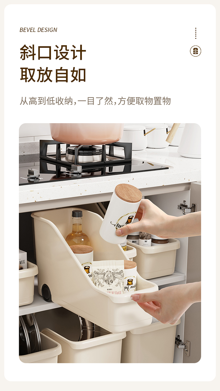 FaSoLa 厨房柜橱收纳盒直角设计窄长型储物盒厨具整理盒日式抽屉式