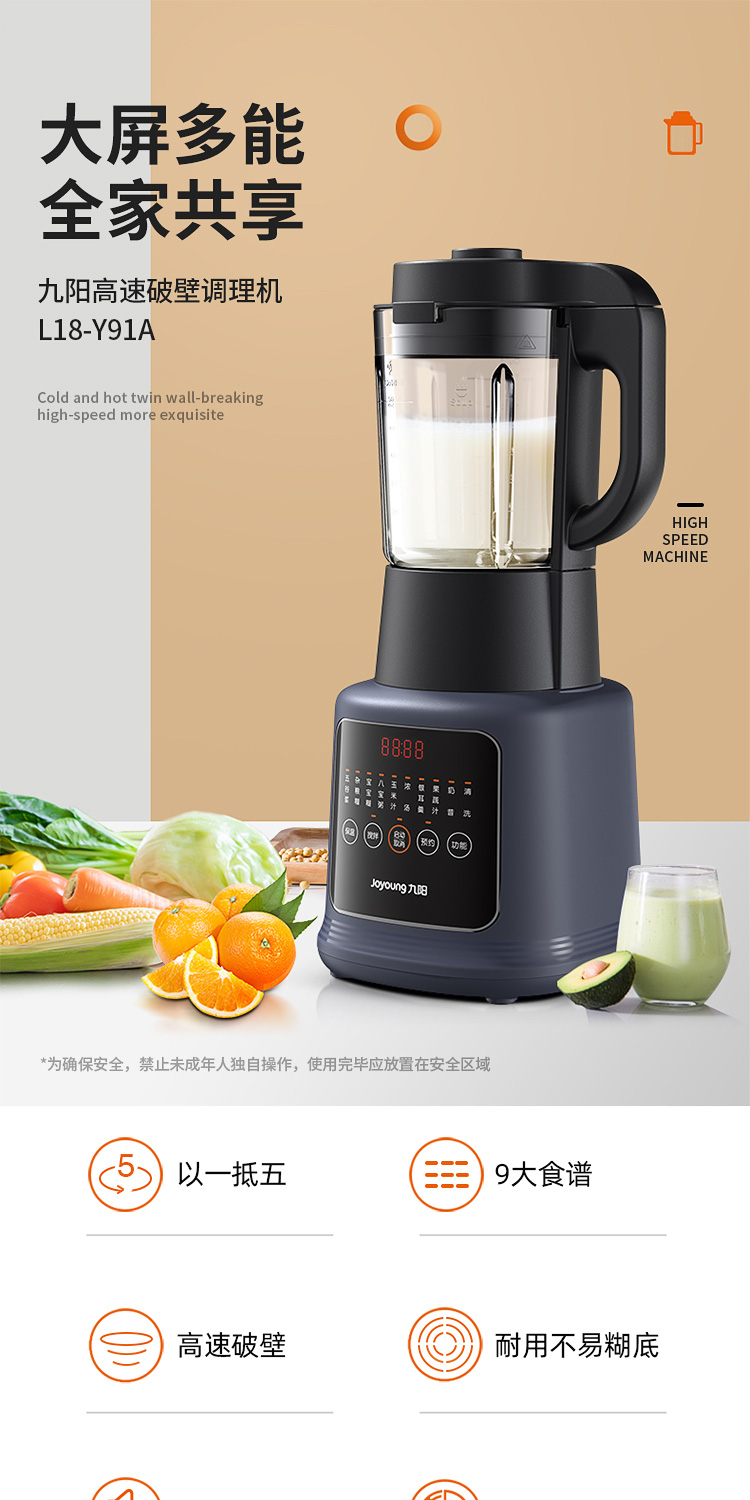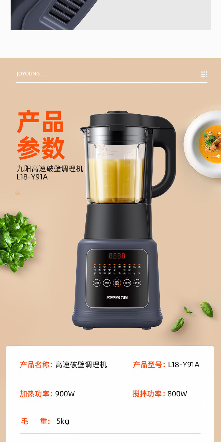 九阳(Joyoung) ZMD安心系列 预约保温自动清洗破壁食多功能加热榨汁机豆浆防溢免滤辅料理机绞肉机L18-Y91A