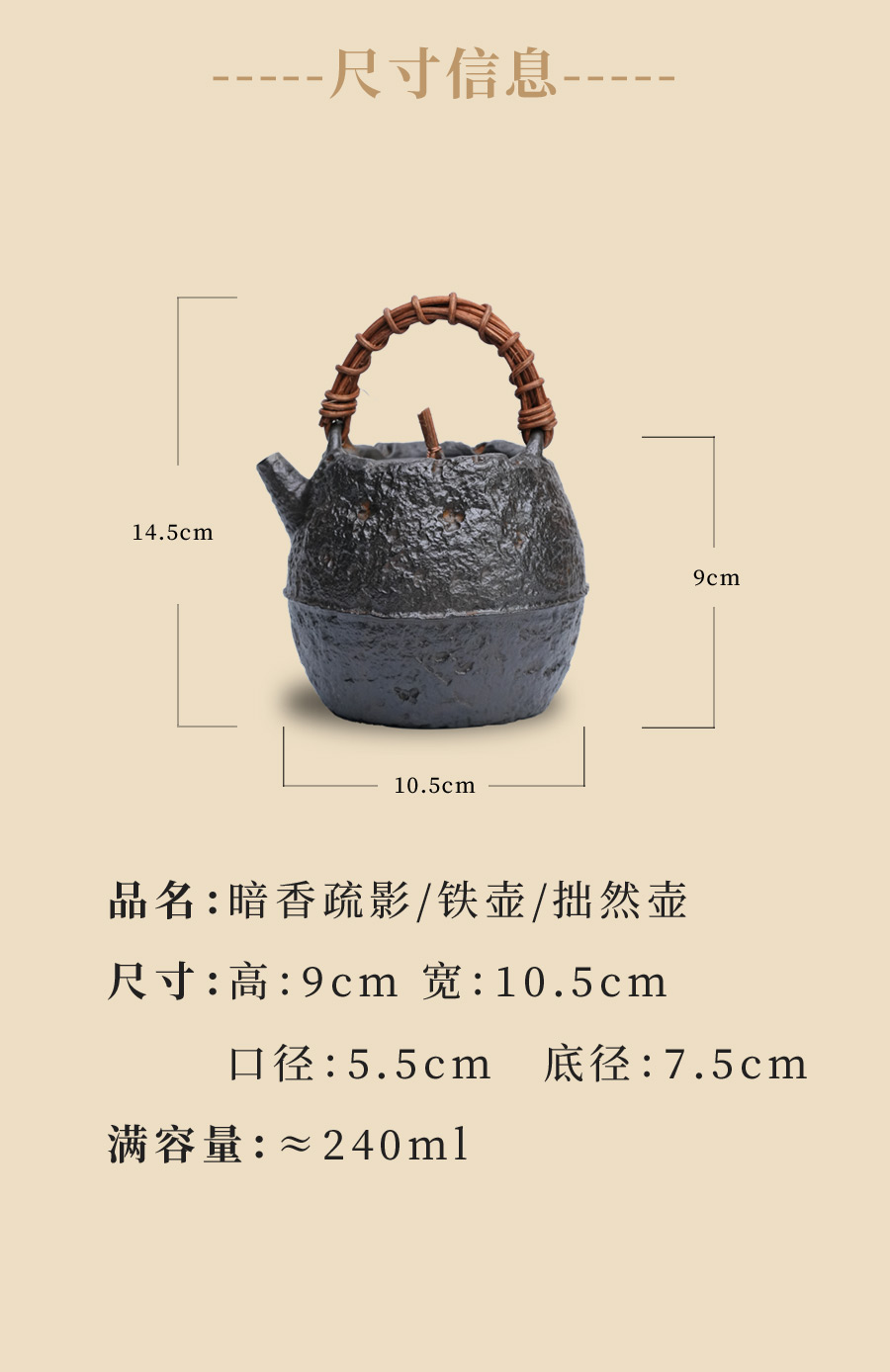 暗香疏影/铁壶/拙然壶/手工无涂层铸铁壶烧水壶老铁壶茶壶