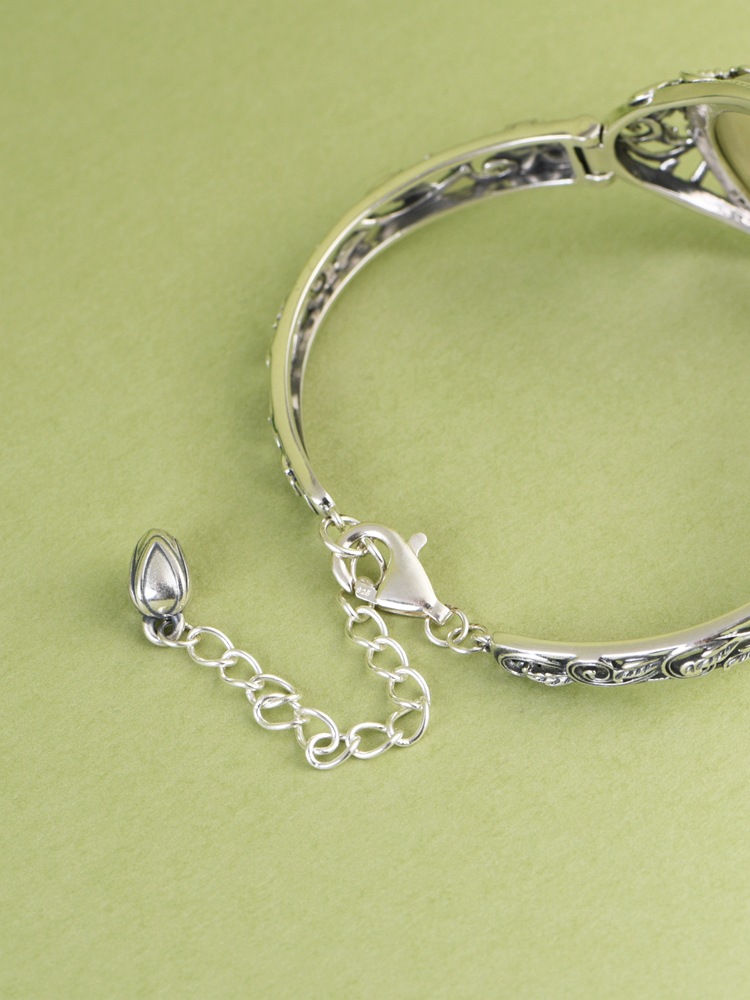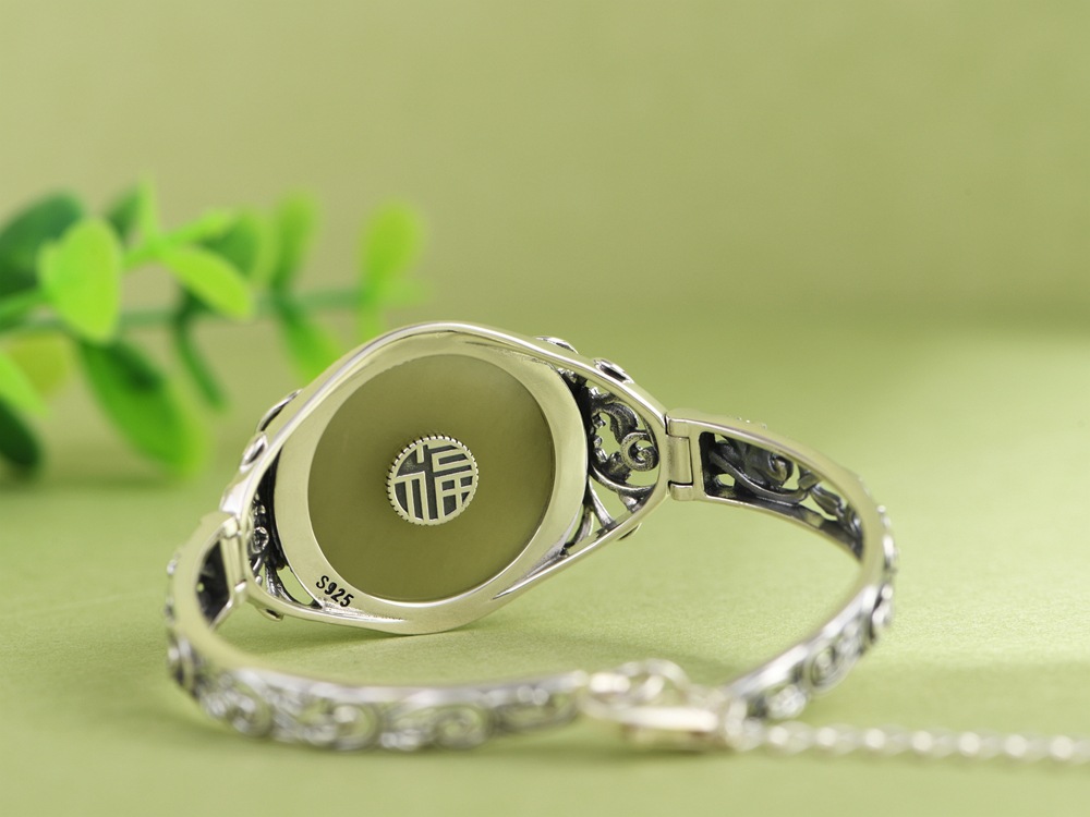 【优雅牡丹】S925银镂空牡丹福字和田玉青玉平安扣手链【SCH-TRS51012】