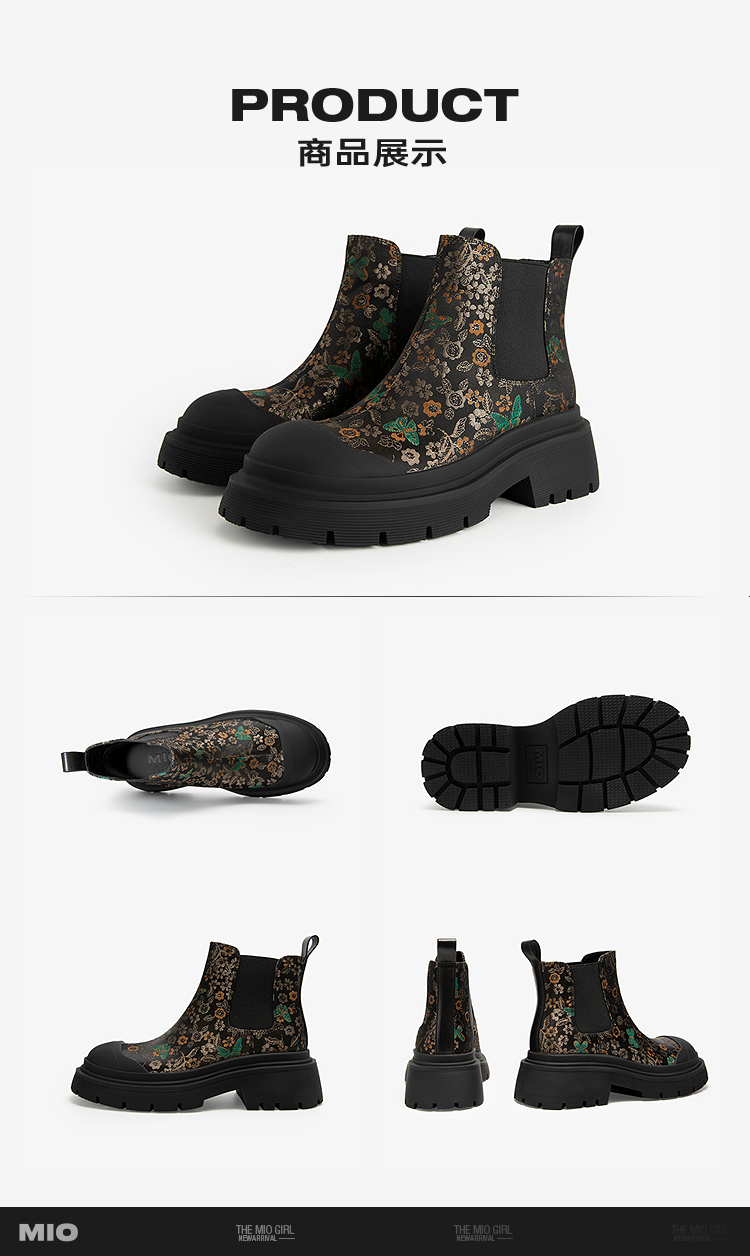 MIO米奥冬季酷感圆头中筒靴潮流厚底运动靴酷飒袜靴弹力靴M245662528