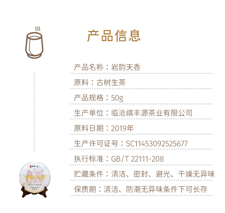 【5G茶道&祺丰源 首款联名定制】普洱生茶 2020年 岩韵天香 50g