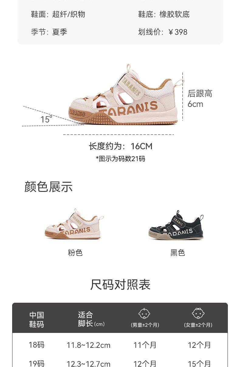 泰兰尼斯212面包鞋2026夏季新款童鞋男女童透气凉鞋学步鞋机能鞋T07T6B8812