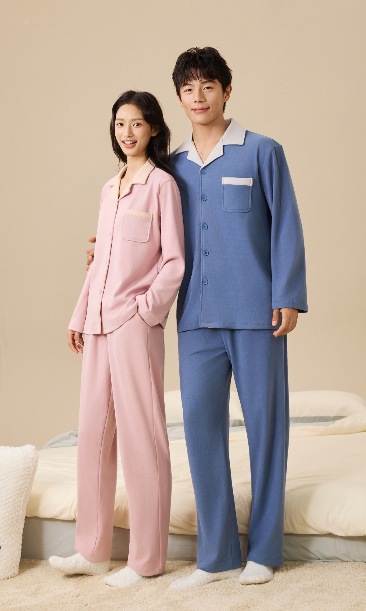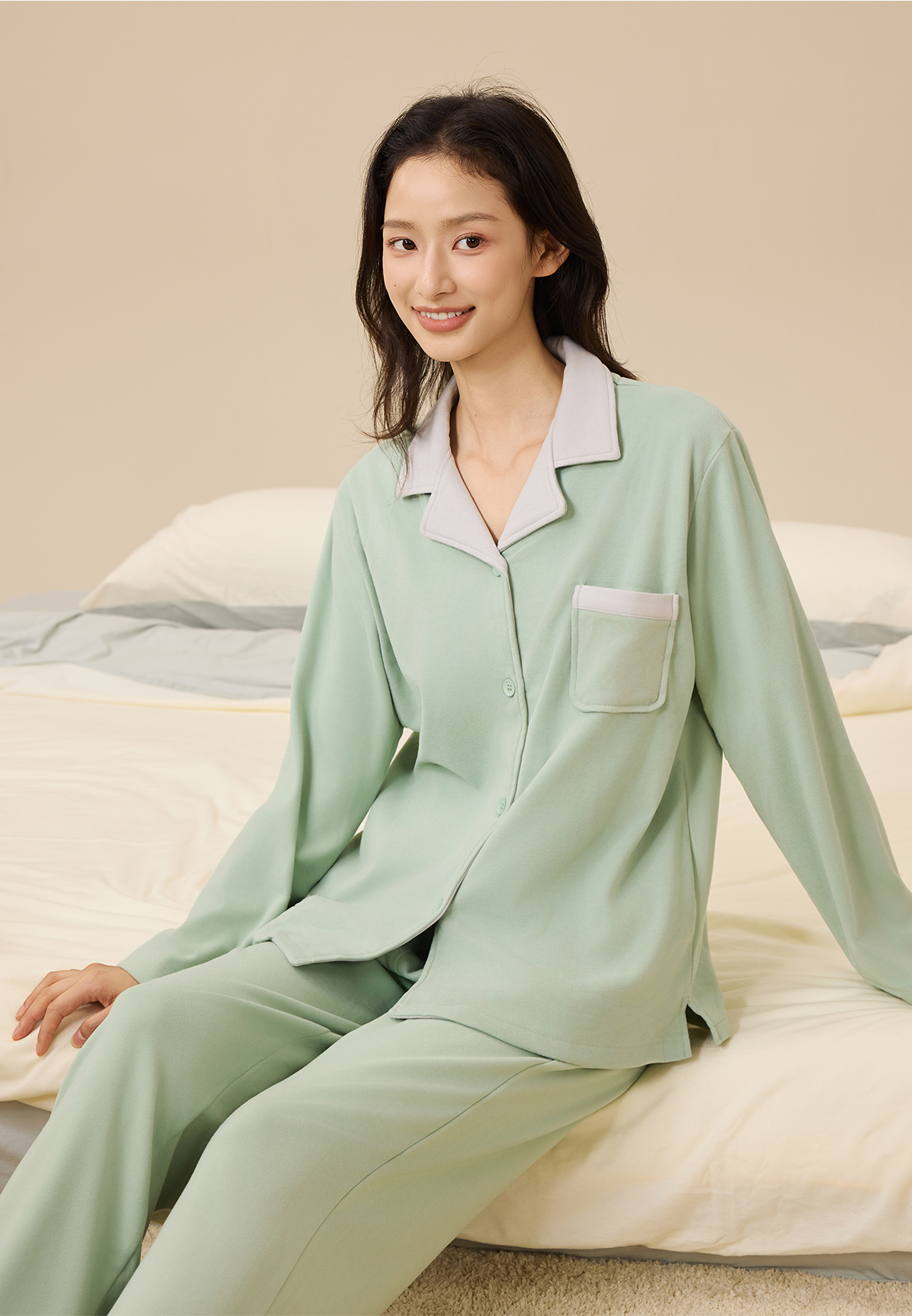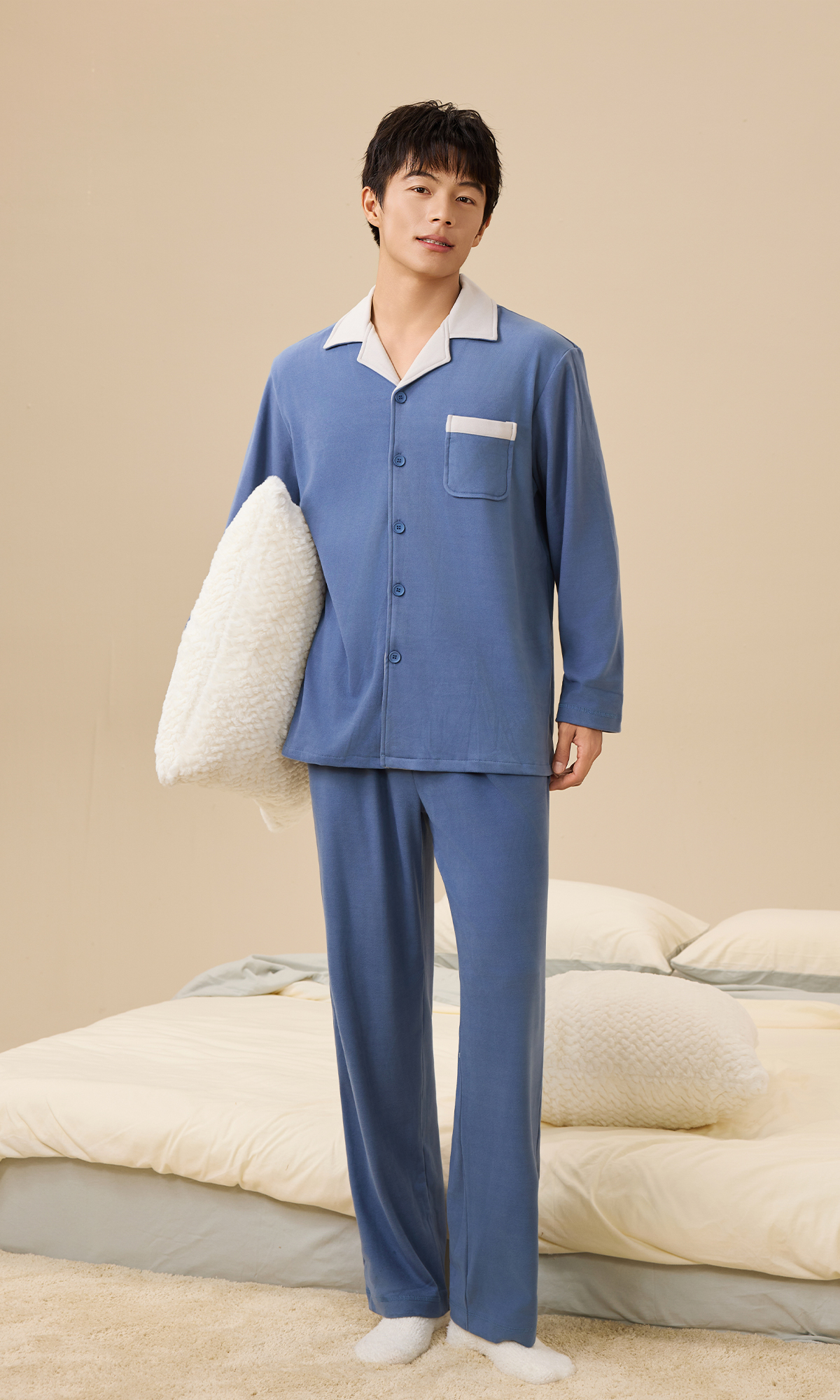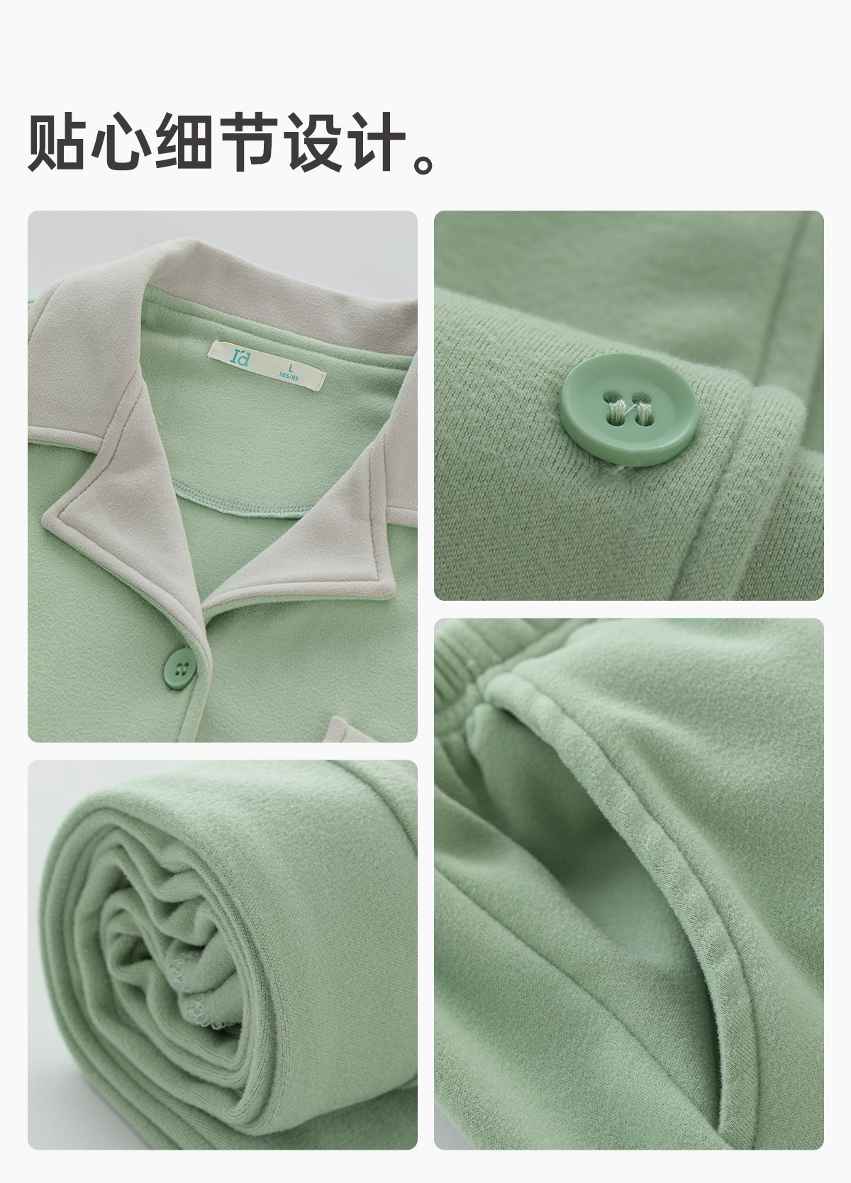 I'd爱帝舒暖绒秋季厚款经典翻领长袖家居套装