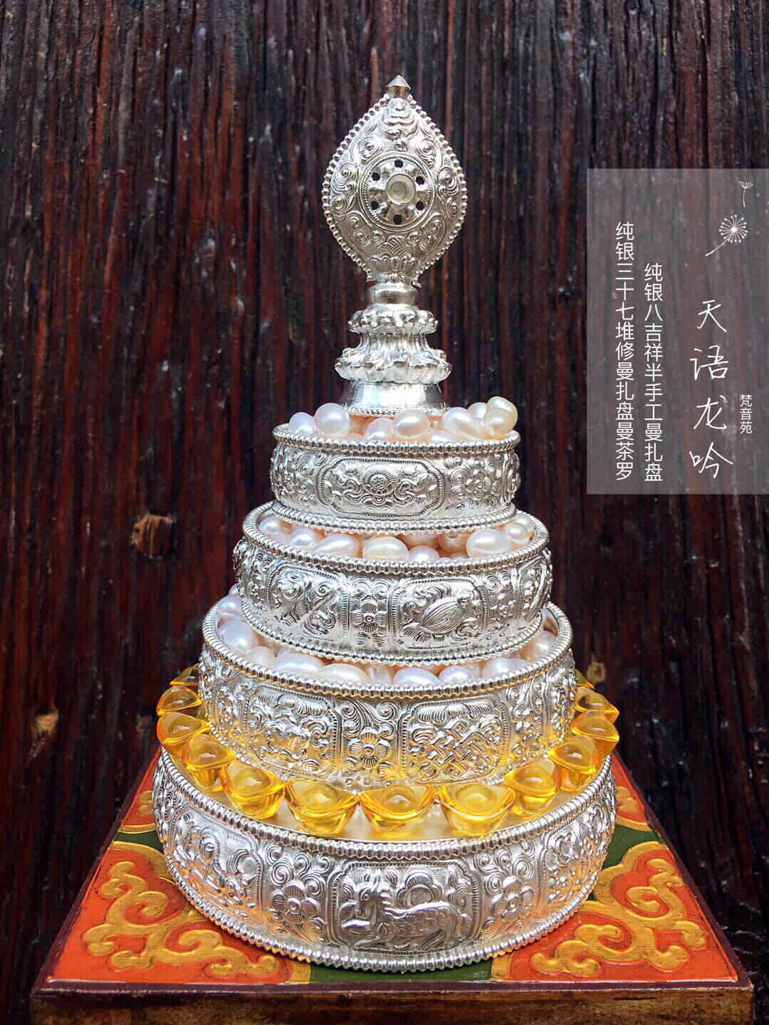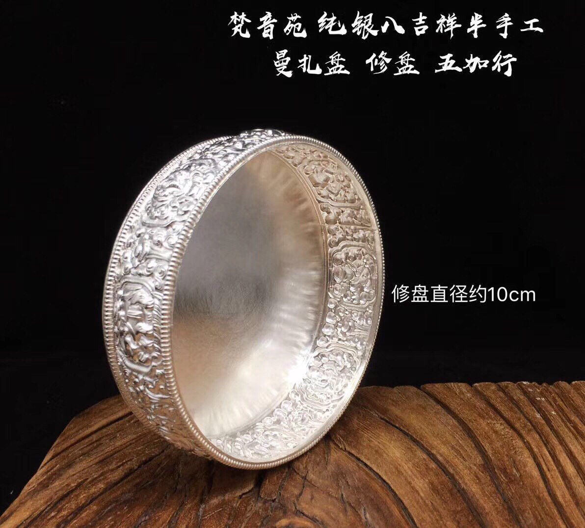 天语龙吟&梵音苑 新品精工999足银手工曼扎系列 足银八吉祥八宝足银曼扎盘 修盘直径10cm❣️顺丰包邮 此款曼扎盘材质是999足银💯 八吉祥图案🔱 八宝花纹图案手工雕刻〽 做工精美