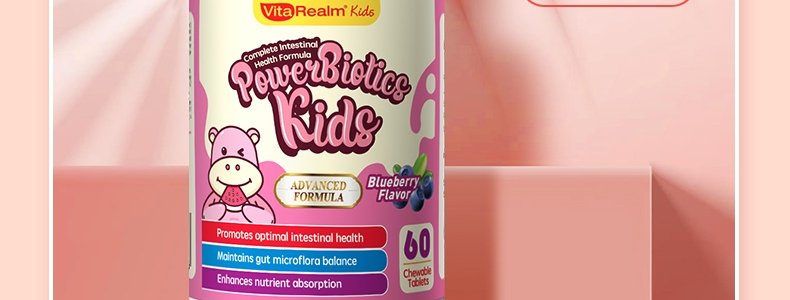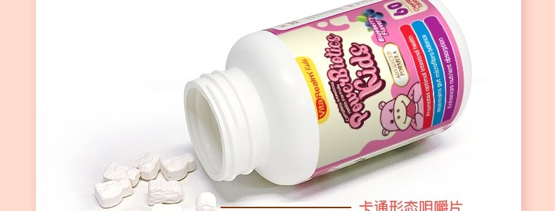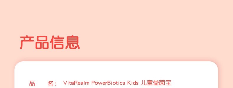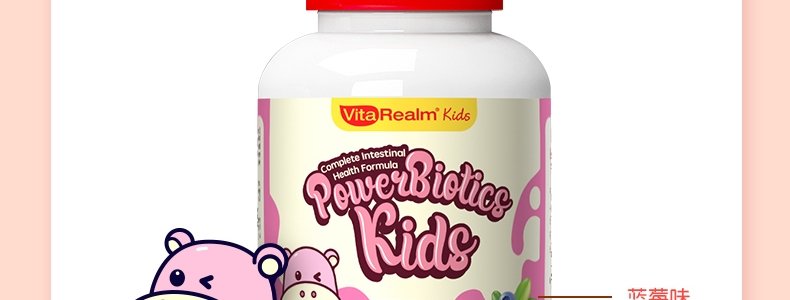 新加坡 维乐原VitaRealm儿童肠胃益生菌咀嚼片60粒/盒,适合1岁以上儿童