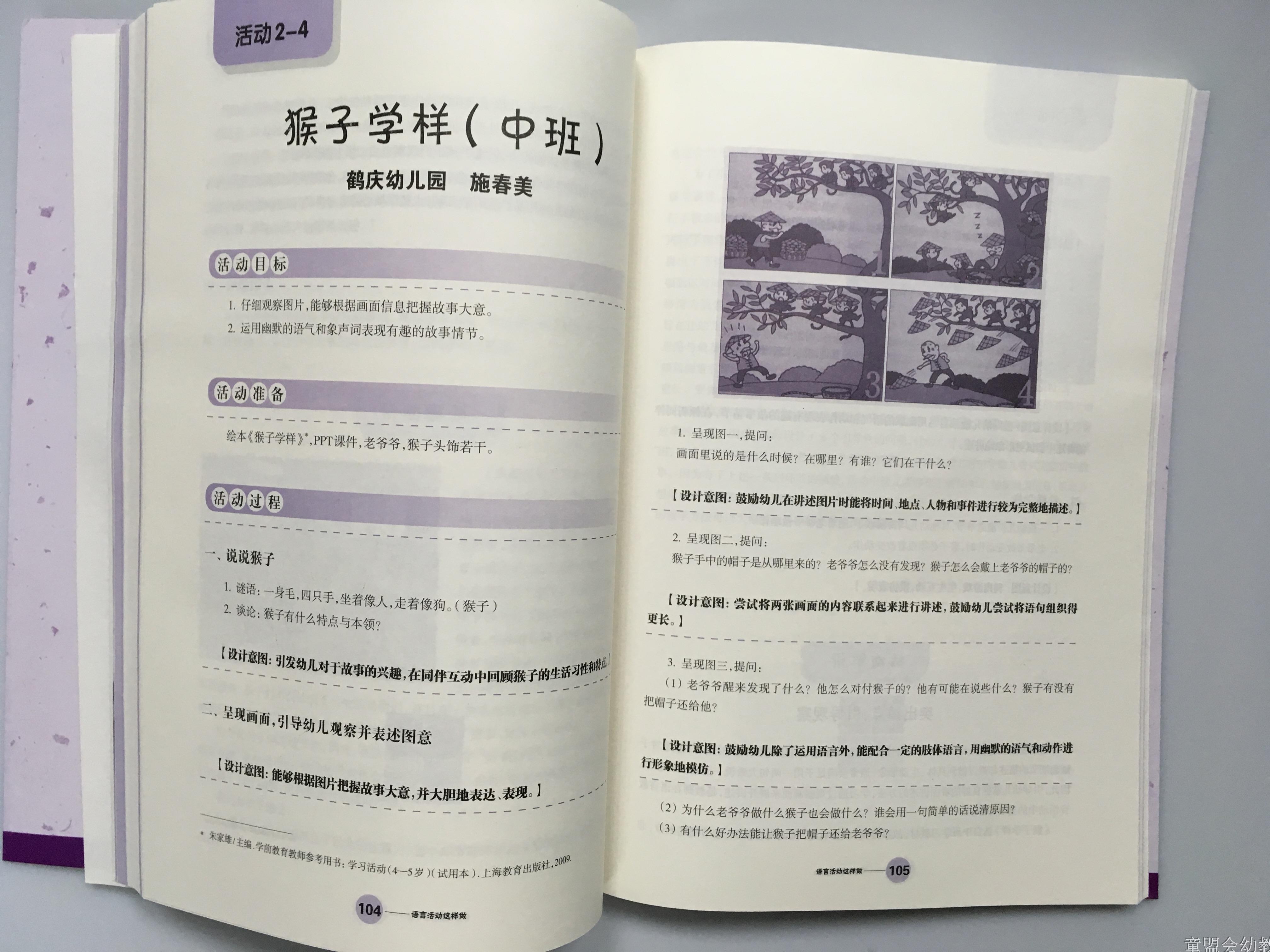 全书收录的活动案例,大都是以文学作品(绘本)作为主要素材展开的。由于活动内容的不同,老师们在活动中的价值定位、方法运用等亦会有所不同,由此,我们将内容设计为“侧重于倾听表达的活动”、