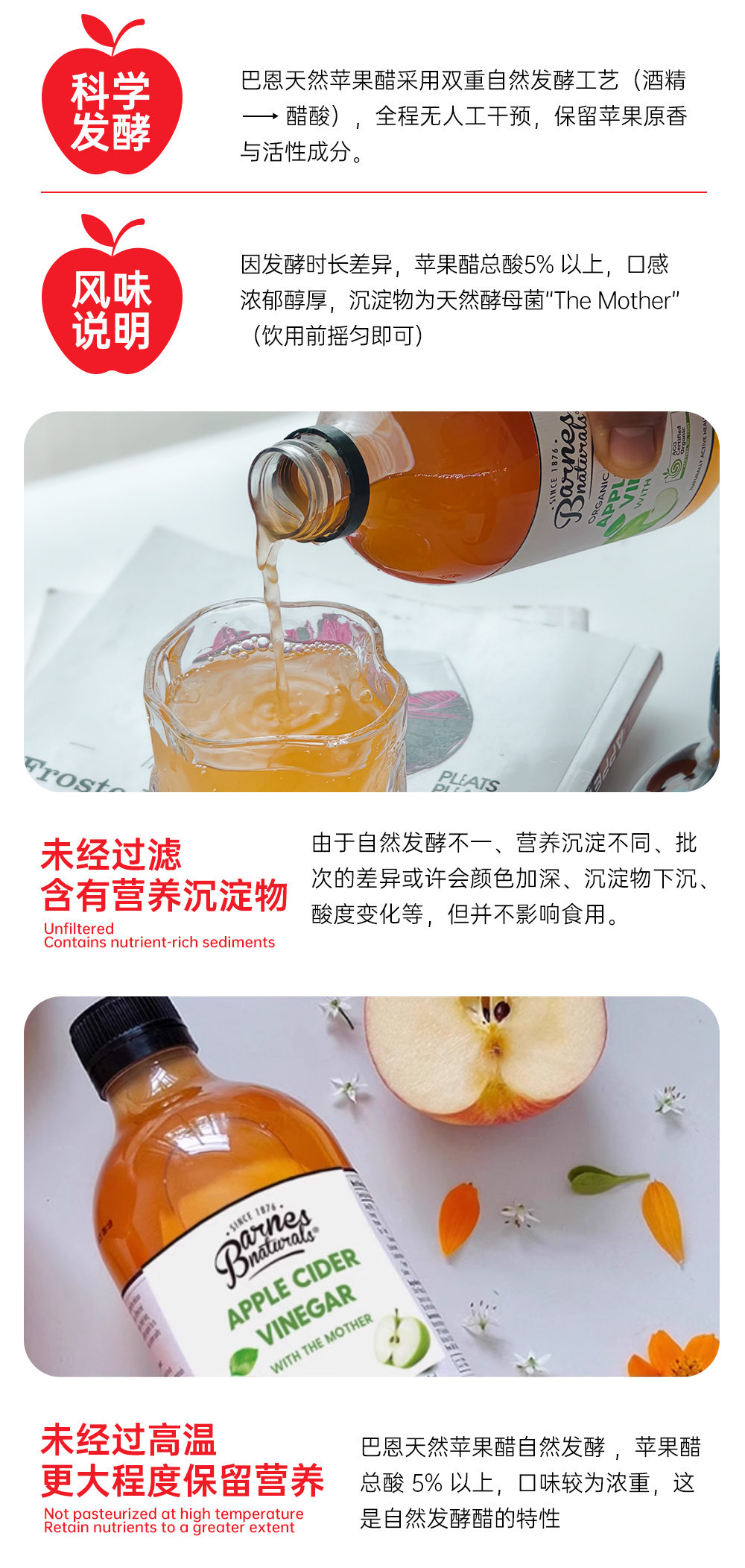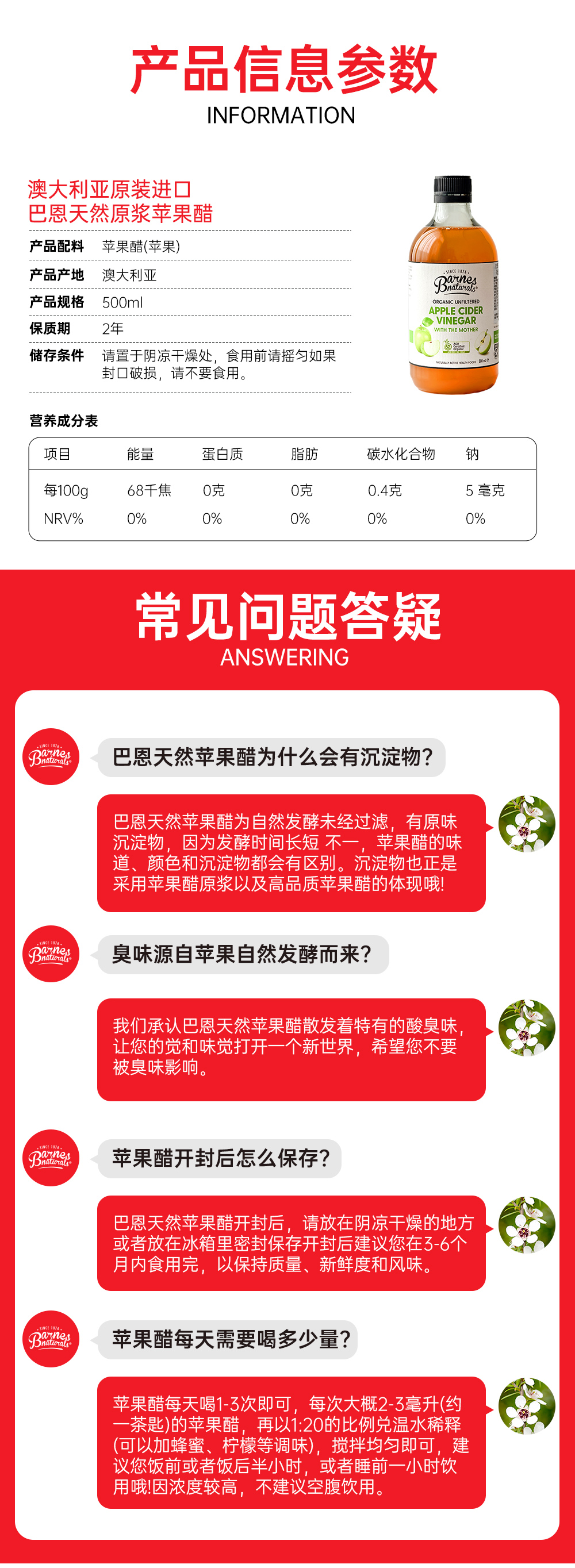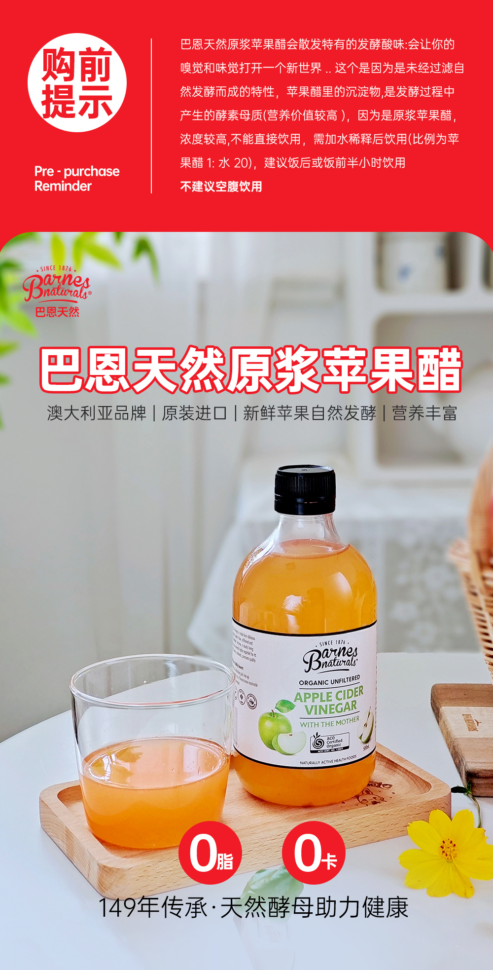 澳大利亚巴恩天然 原浆浓缩苹果醋 500ml