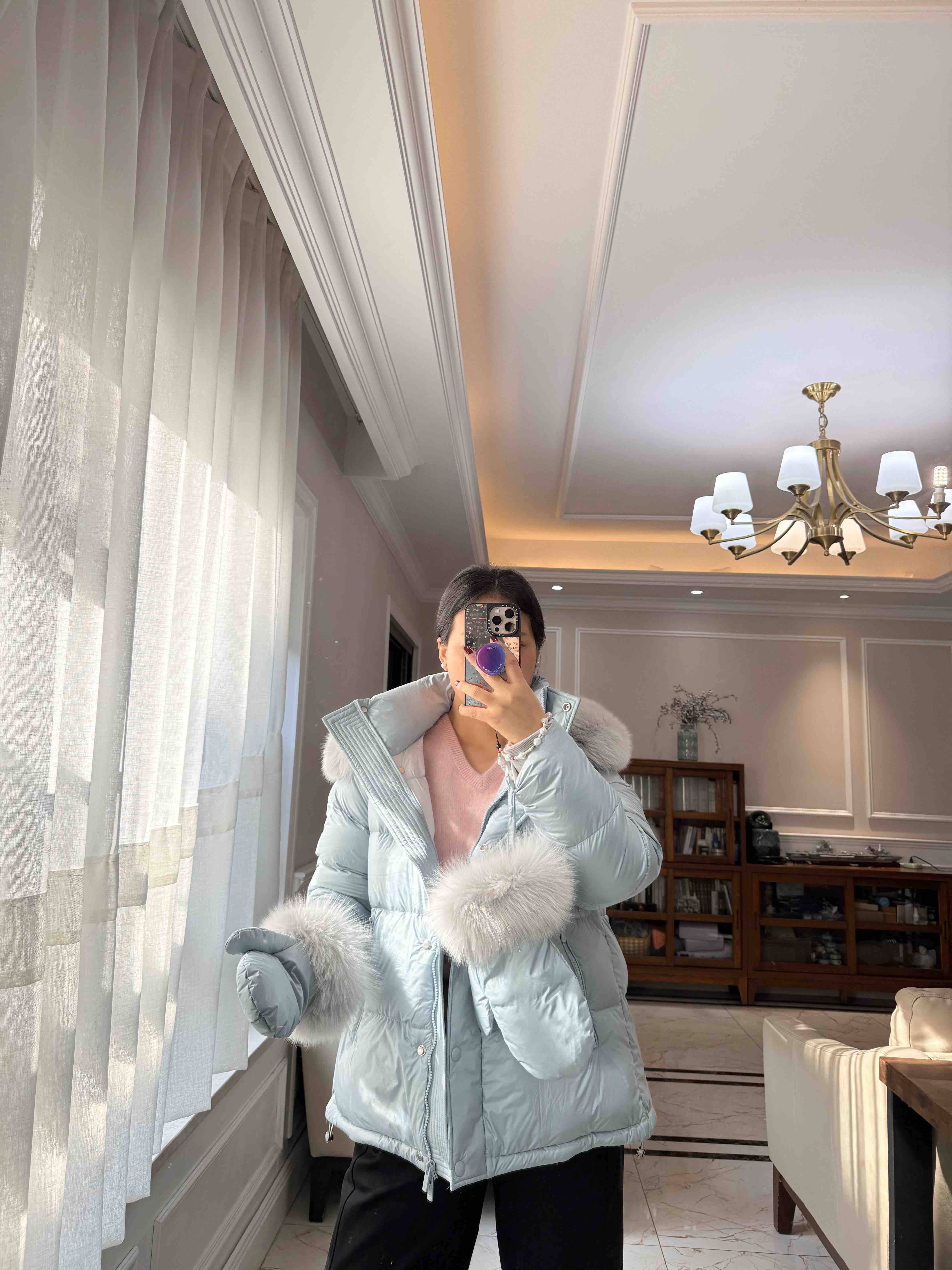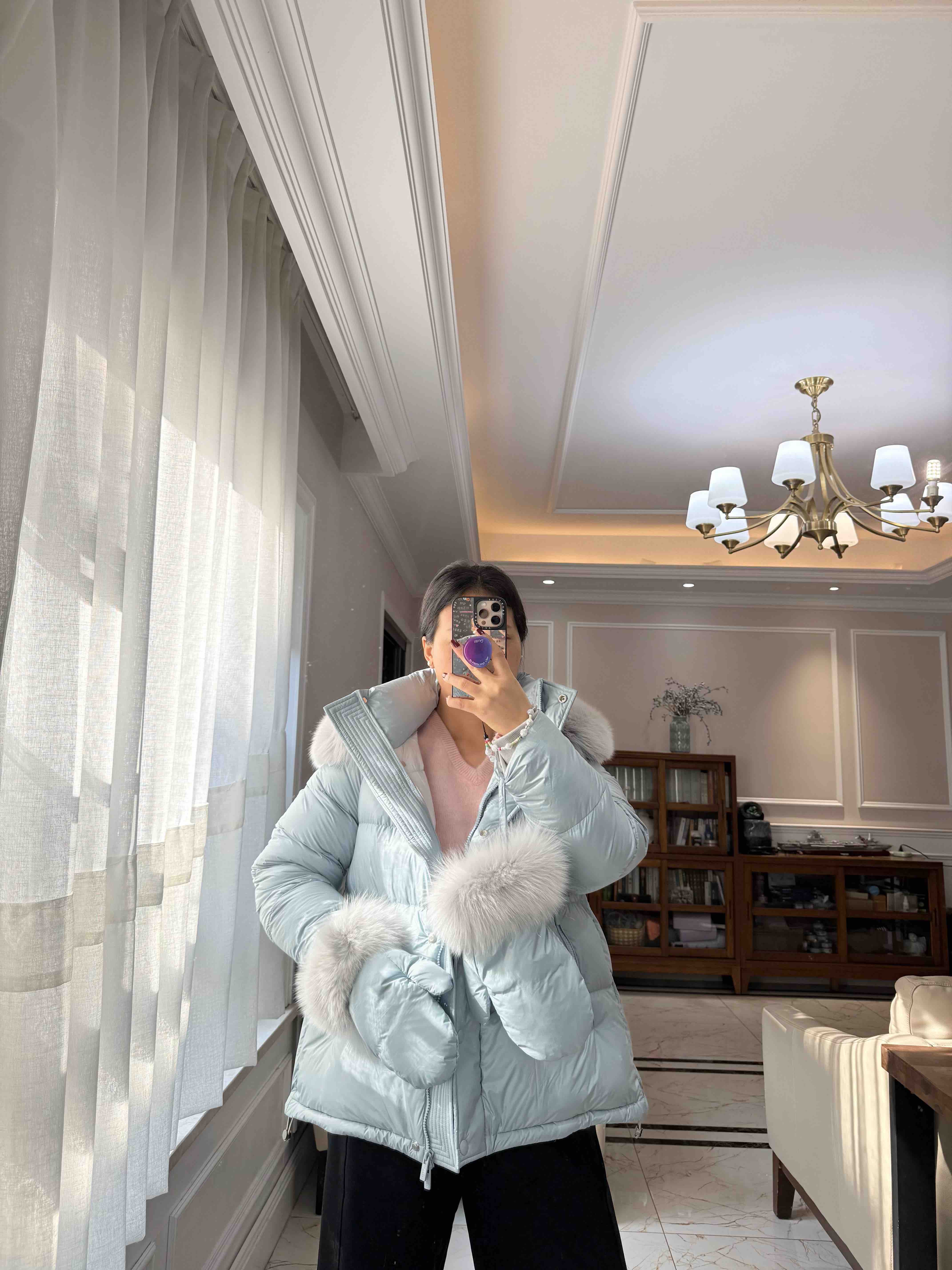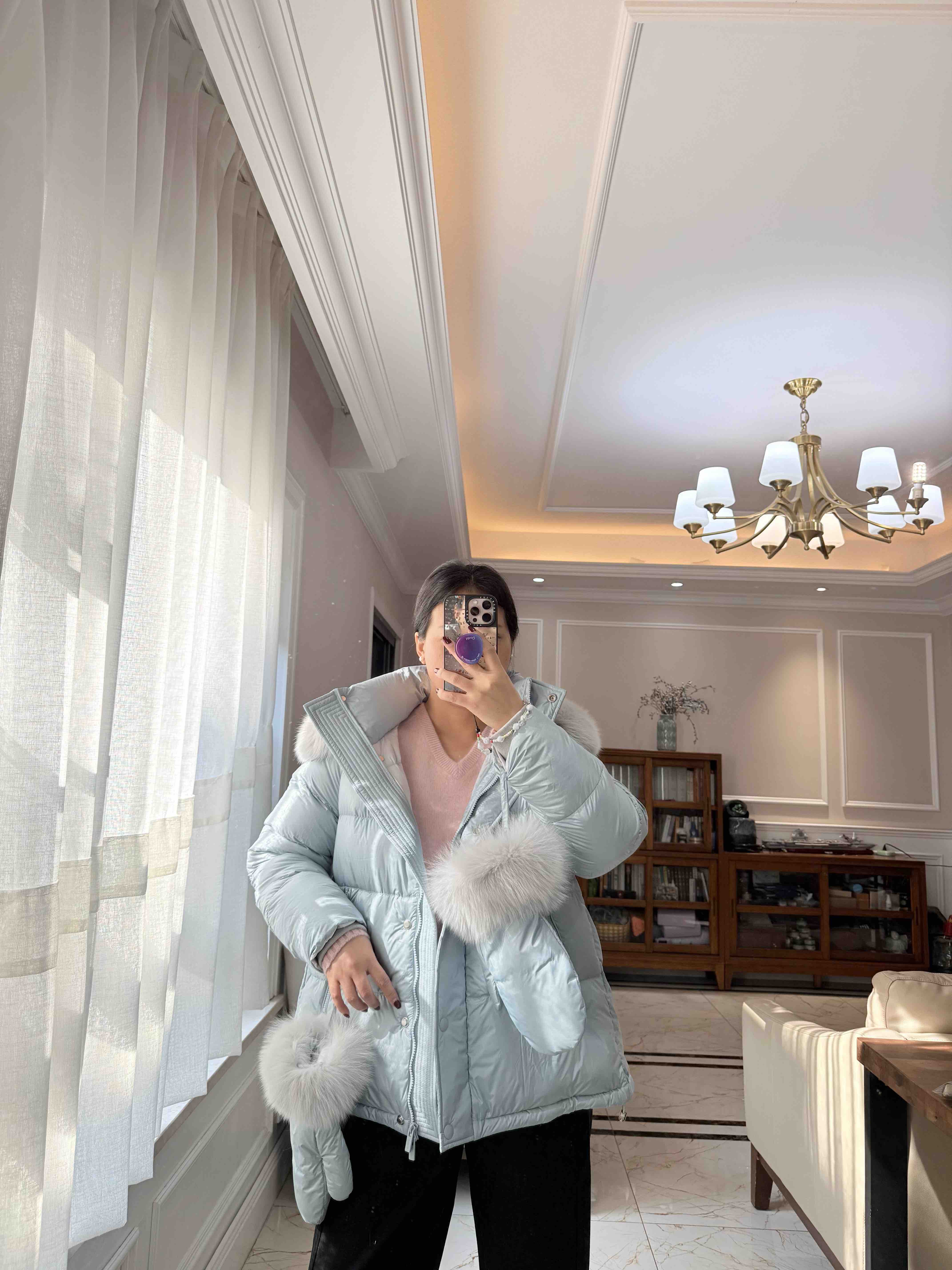 还有这个baby蓝色显太白了,配搭狐狸毛领妥妥的皮草羽服绒,属实忙比可还重要磅[合十]