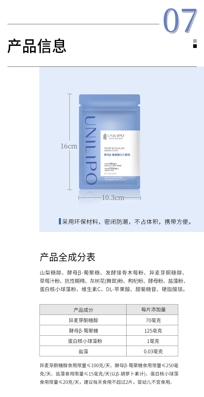 「经典版酵母β葡聚糖」 适合多种人群!丨UNILIPO研知有理 酵母β-葡聚糖咀嚼片