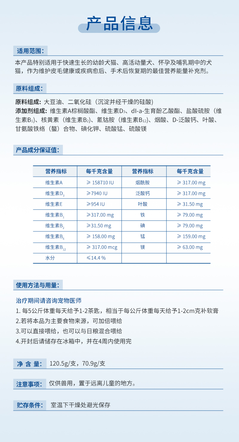 【法国维克】营养膏 克补软膏 猫咪营养膏 狗狗维生素 幼犬幼猫补钙维生素