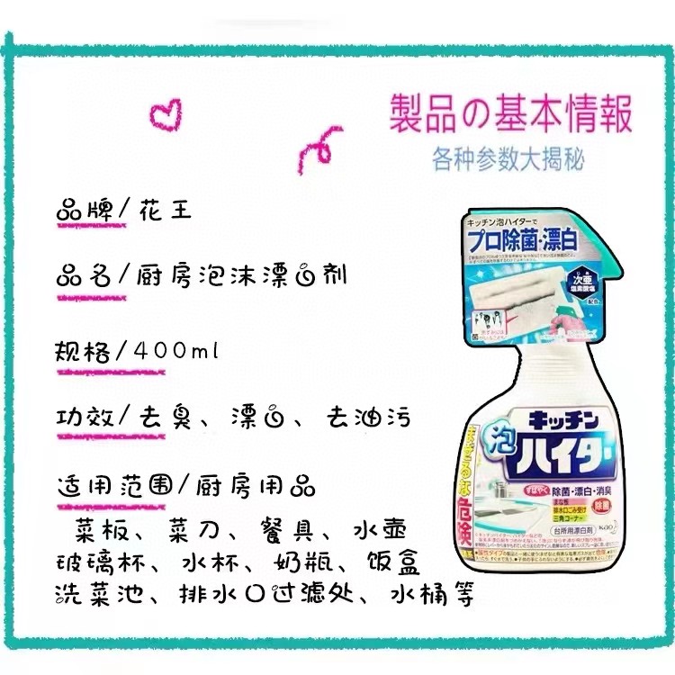 花王厨房餐具厨具台面清洁剂强力泡沫除菌漂白喷雾400ml
