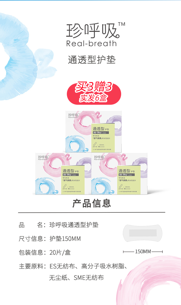 珍呼吸通透型护垫组合超薄隐形透气敏感肌孕妇专用隐型迷你卫生巾