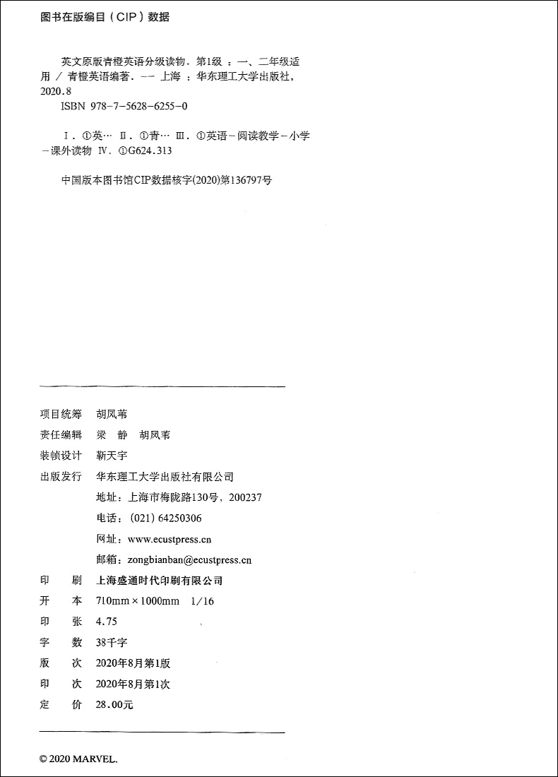 英文原版 青橙英语分级读物 第一级/第1级 漫威英语分级读物 小学一二年级适用英语读物 小学英语课外阅读训练 华东理工大学出版社
