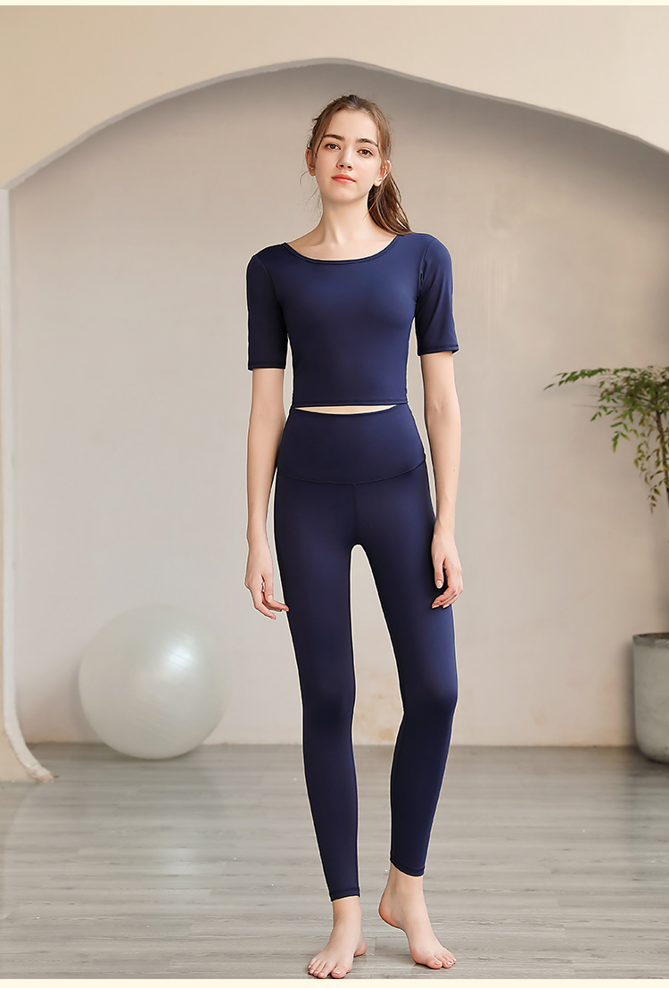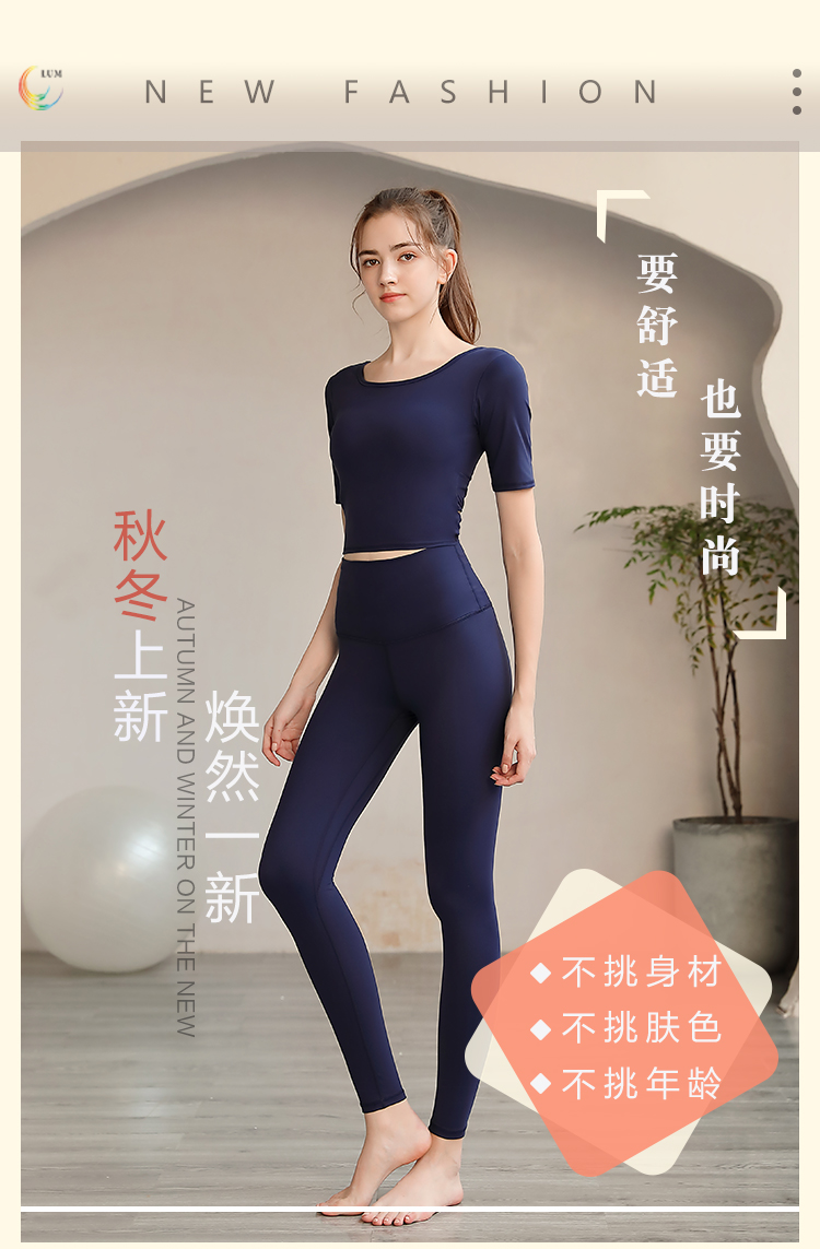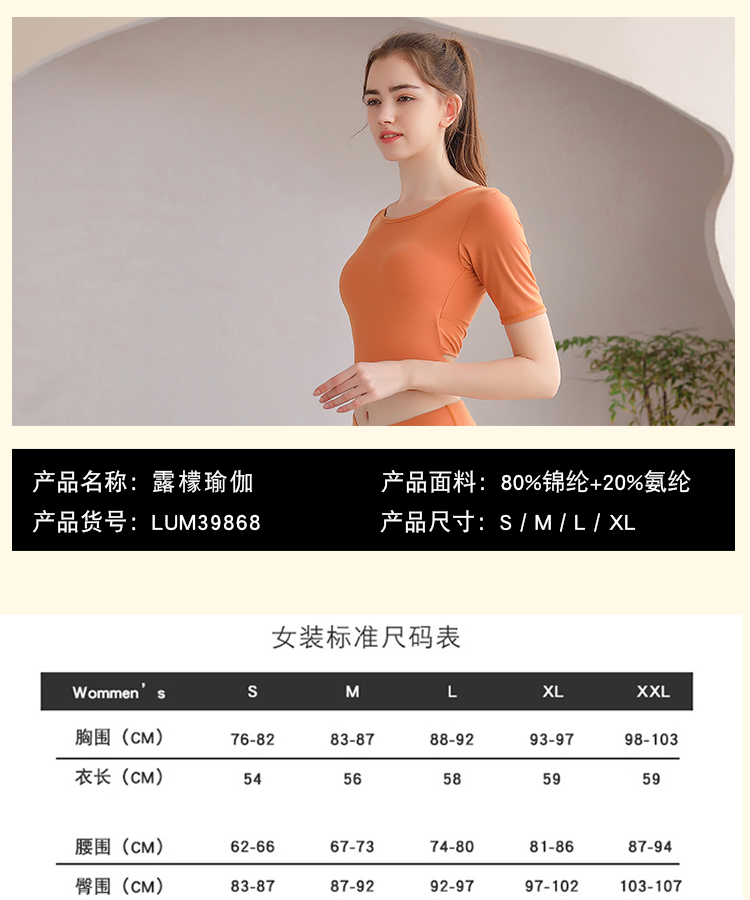 LUM39868露檬新款瑜伽服短袖双面磨毛面料(含胸垫)
