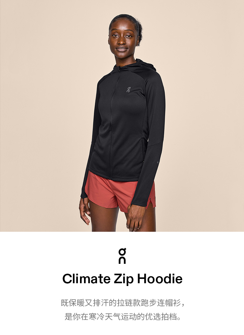 On 昂跑 Climate Zip Hoodie女款卫衣户外运动防风保暖连帽外套