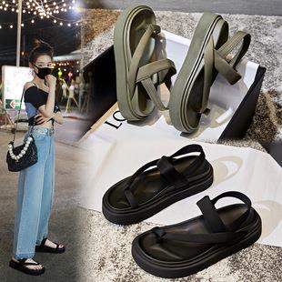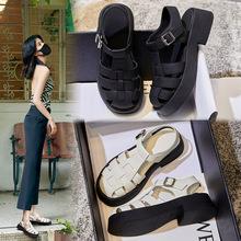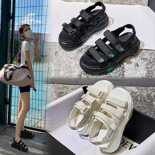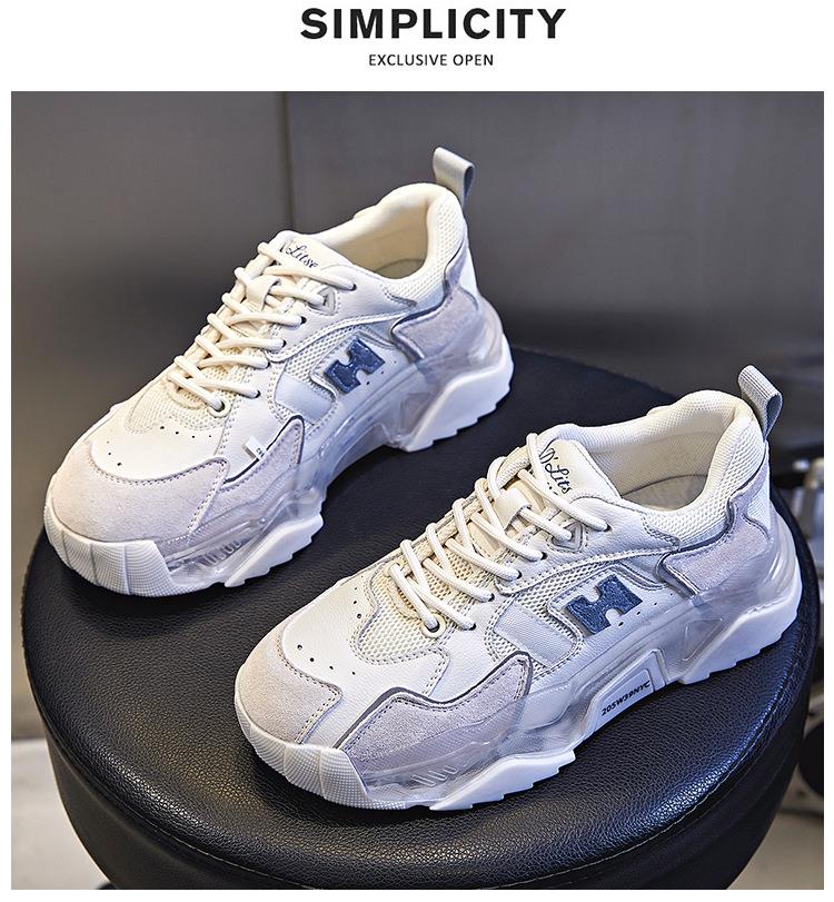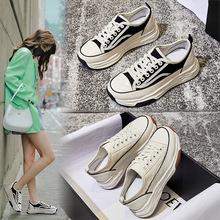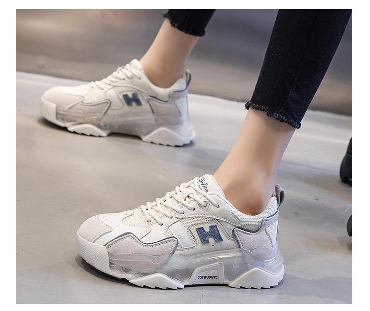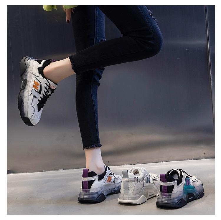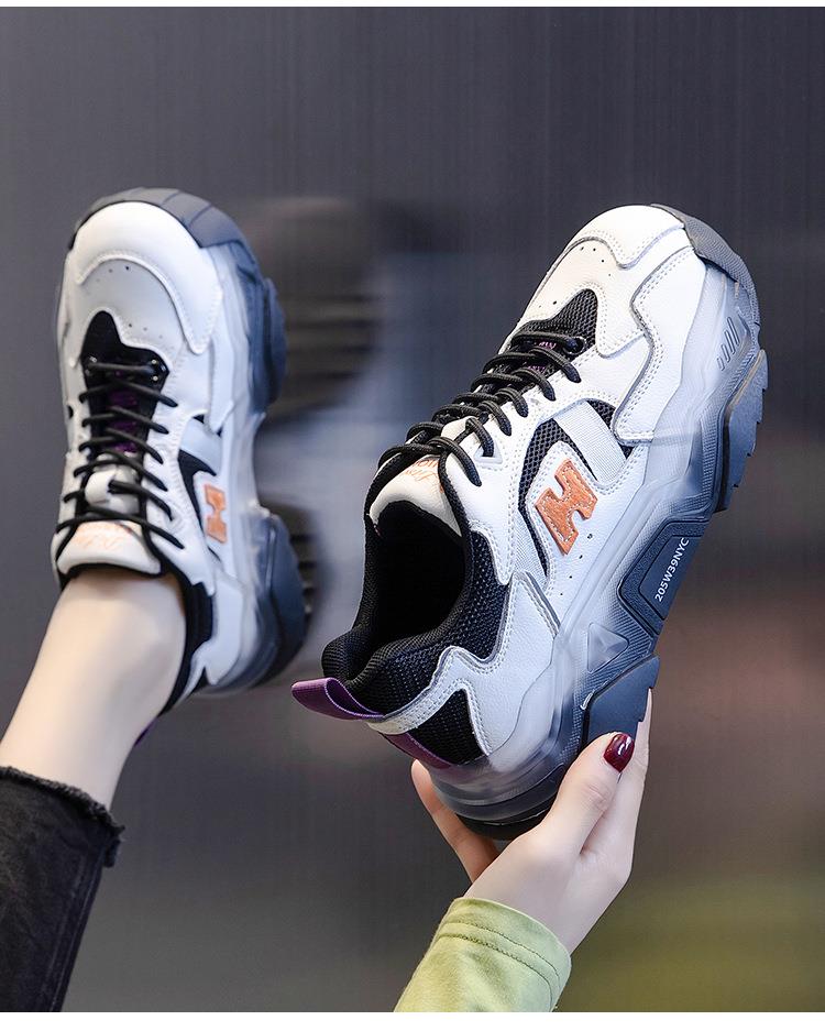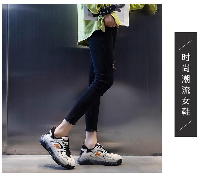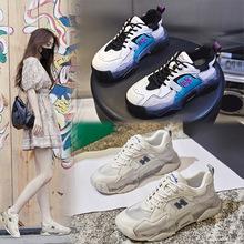 鞋子女春夏2024新款运动跑步鞋厚底休闲真皮女鞋增高平底老爹鞋女