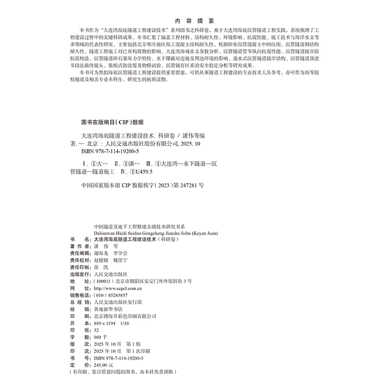 书名:大连湾海底沉管隧道修建技术(科研卷)