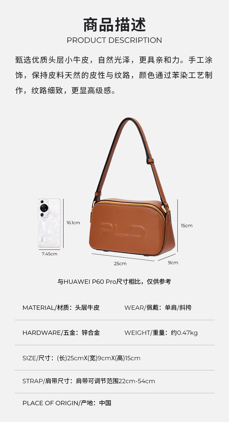 保兰德PLD蝴蝶结2号头层牛皮女包2023新款爆款包体制内轻便单肩斜挎包