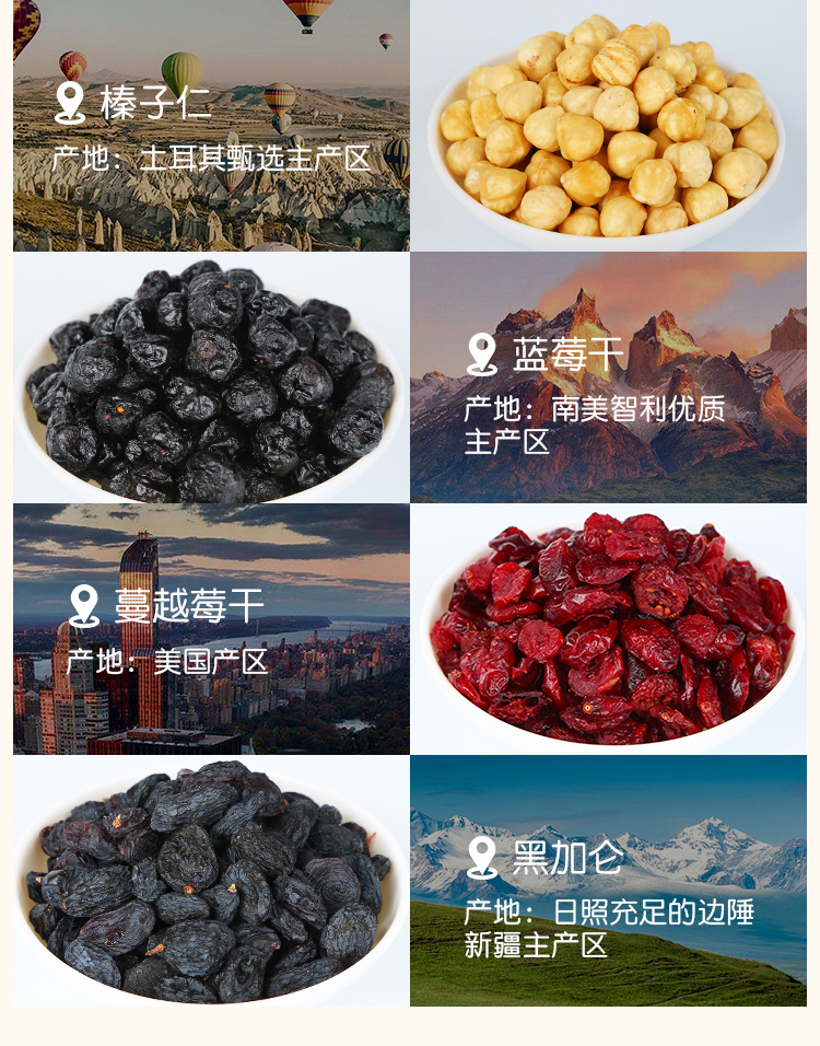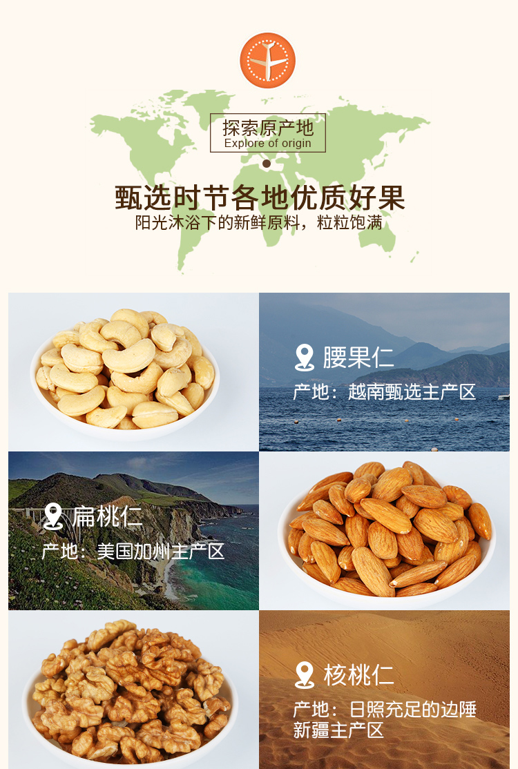 原果全球各地直采,坚持原生态、低温烘焙轻加工、无添加,恪守大自然之味