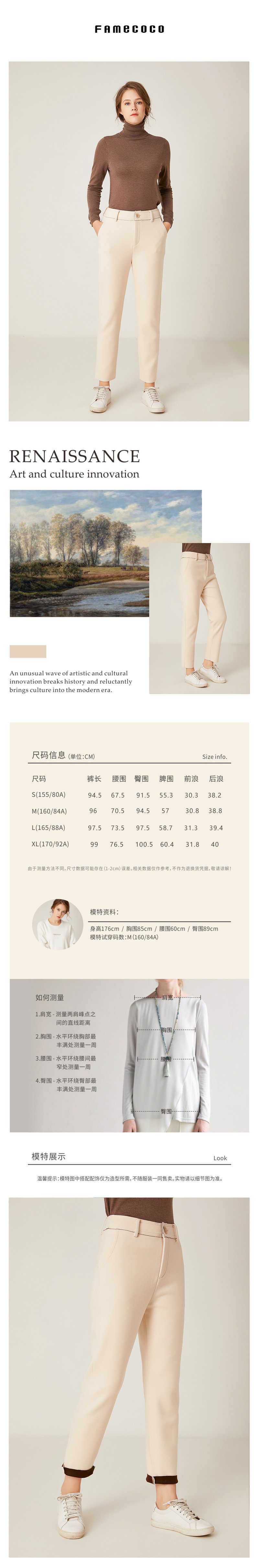 Famecoco范可儿新品百搭小脚铅笔裤修身显瘦休闲长裤女 F198GA014