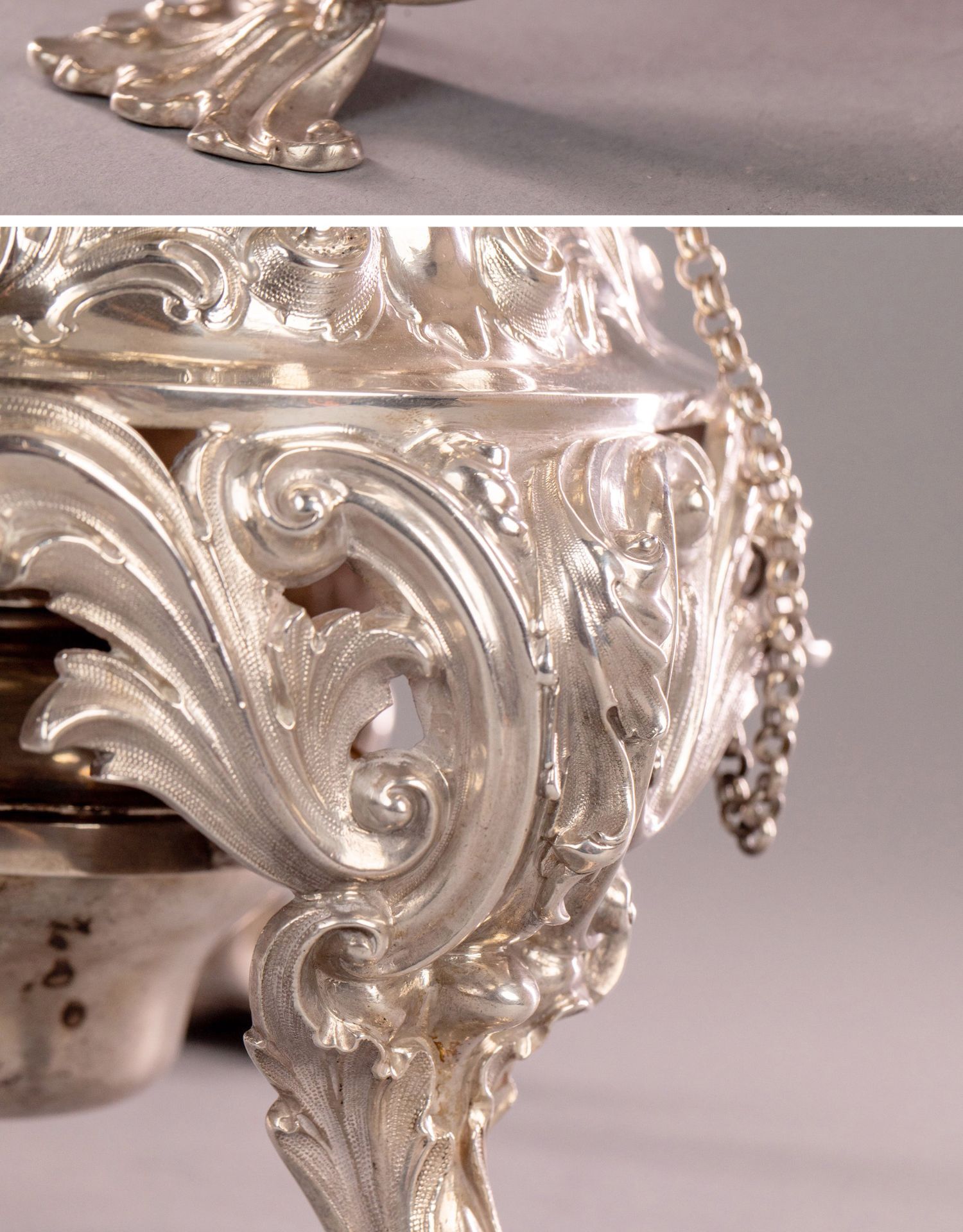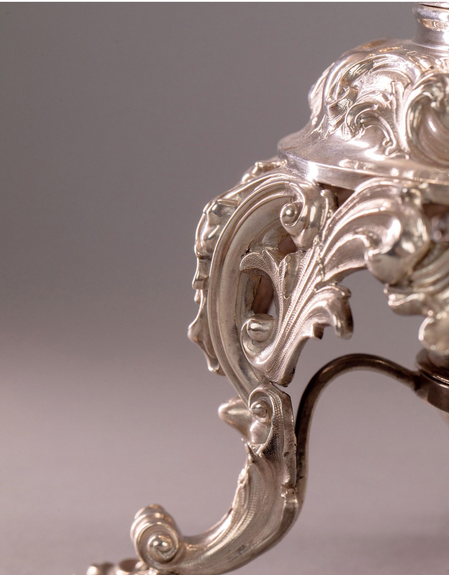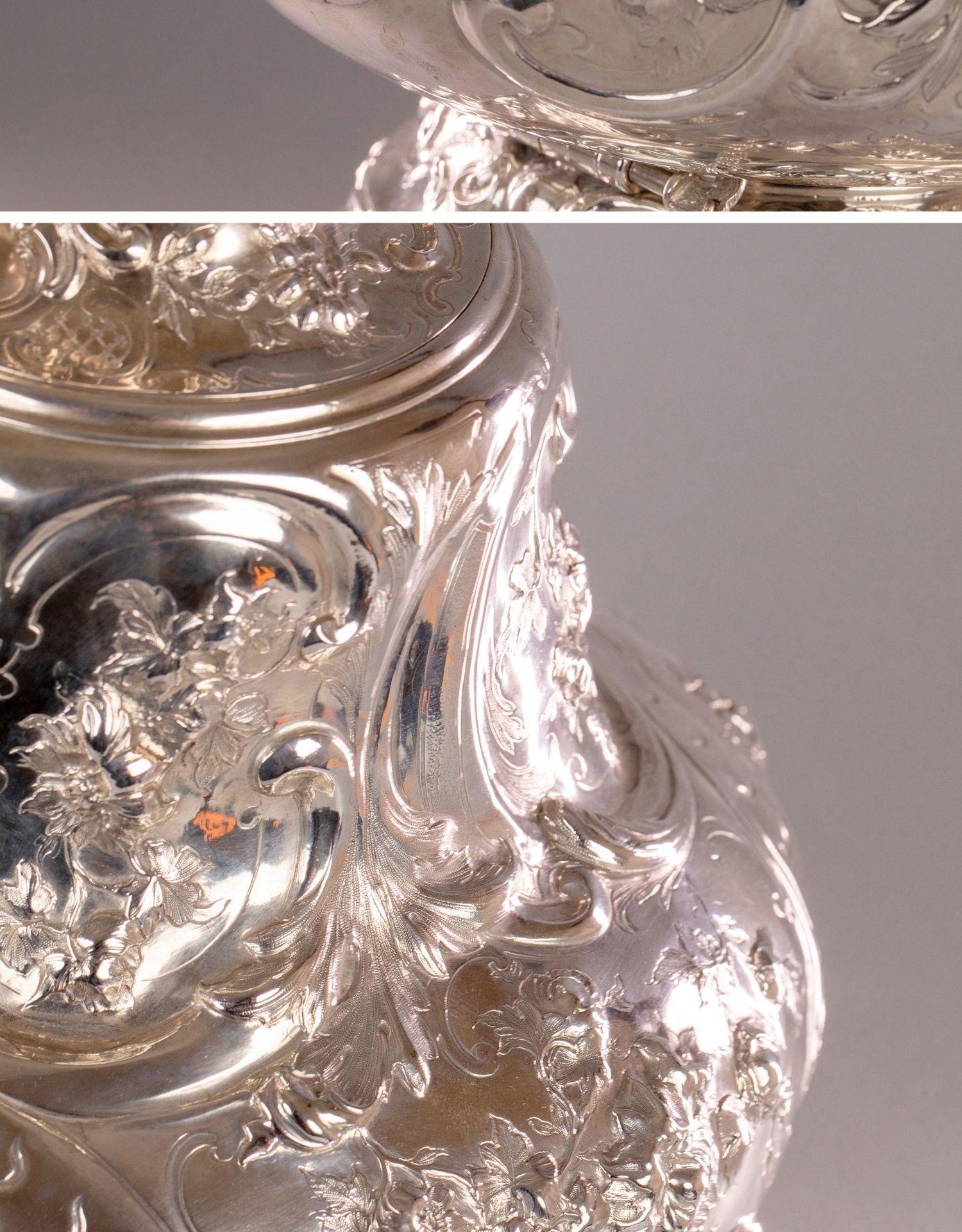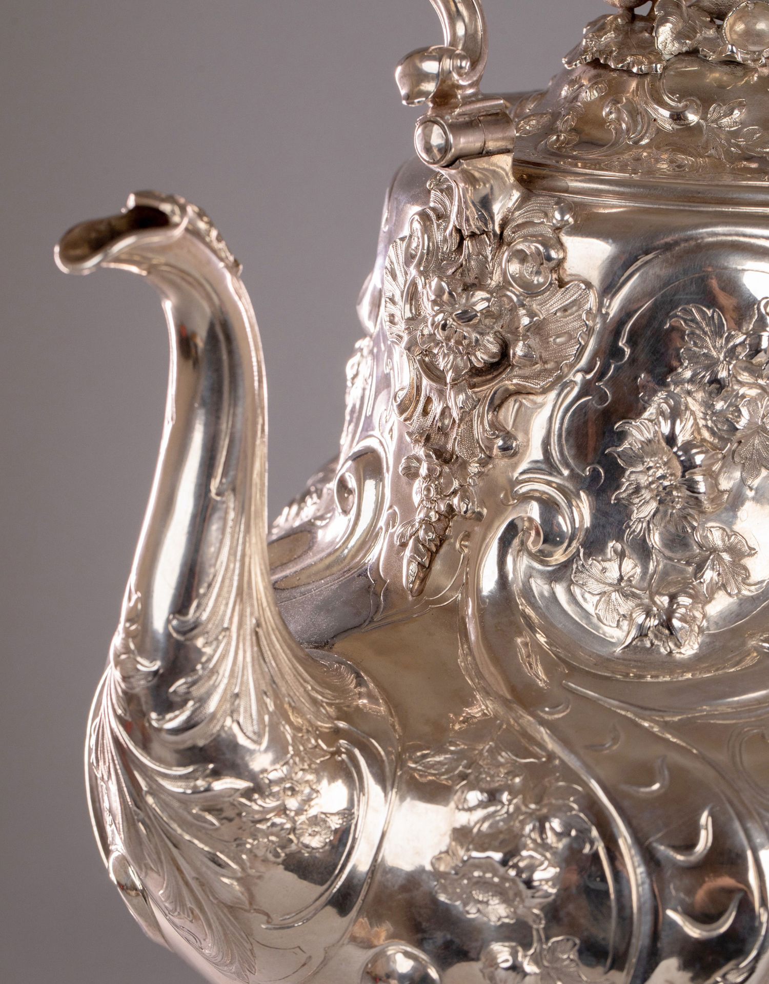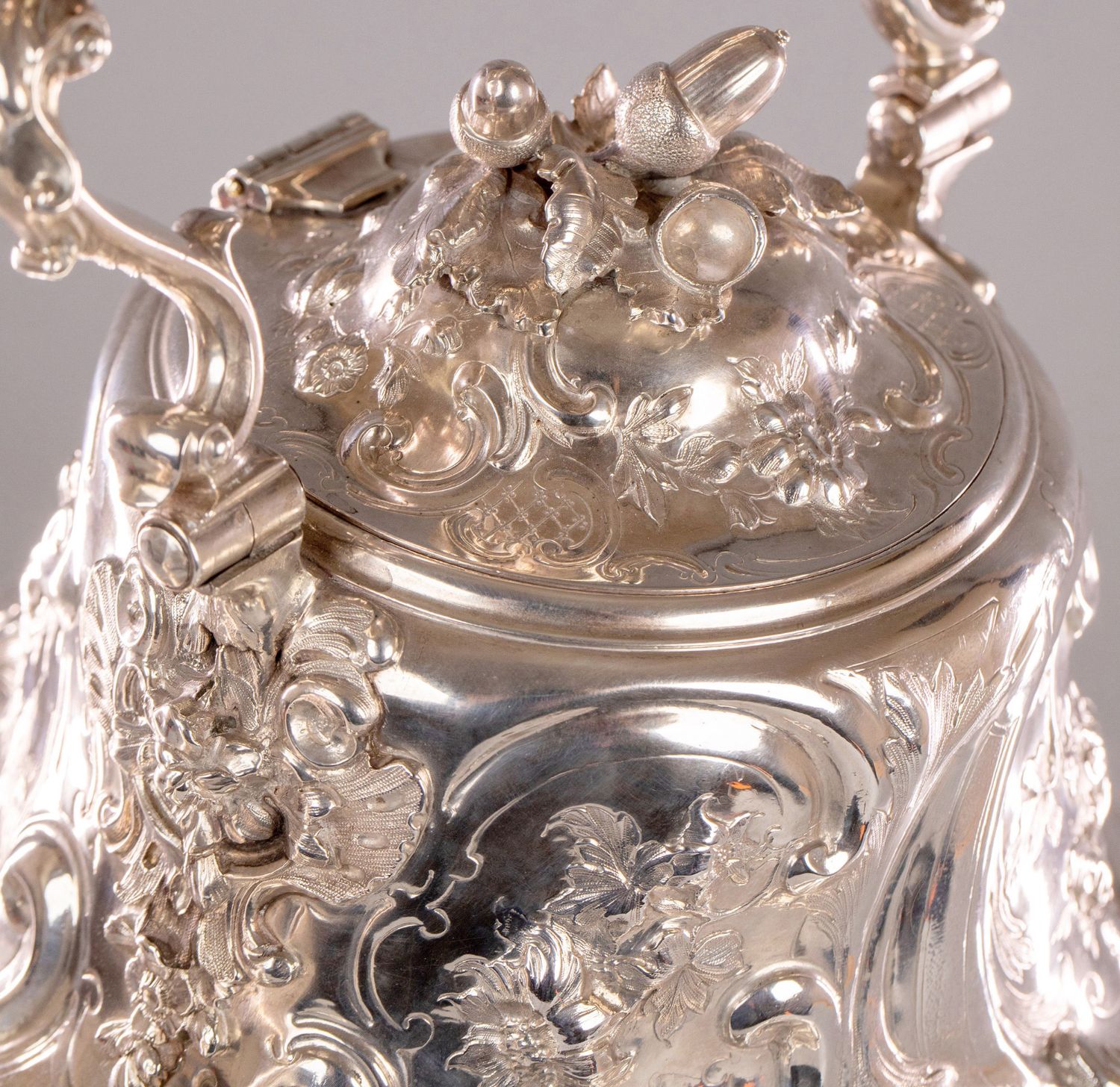 独角鹿西洋古董英国Robert Hennell银器工坊纯银雕花带炉温水壶