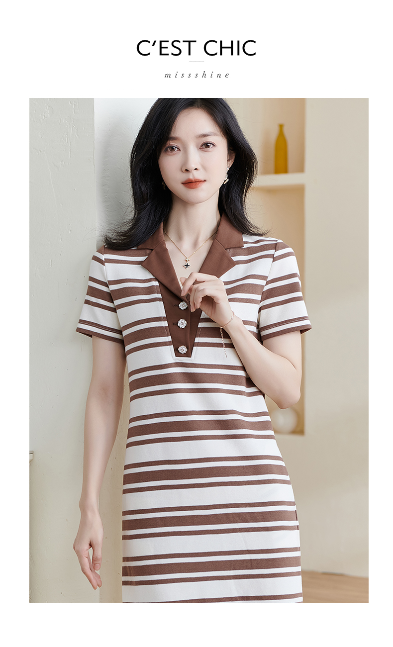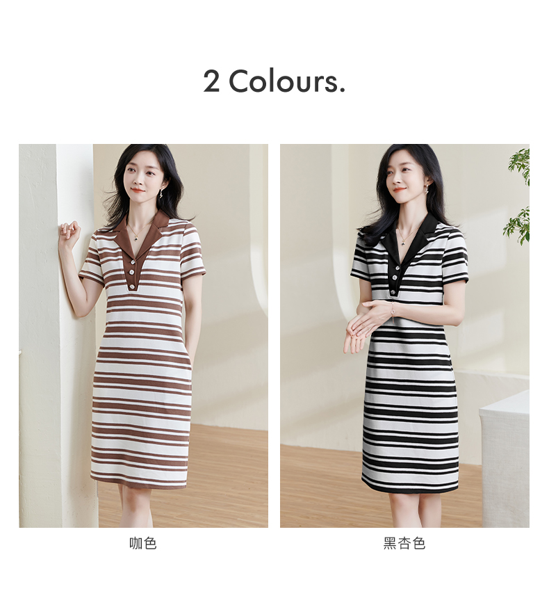 米思阳2025夏季新款通勤休闲淑女西装领连衣裙中长款针织裙子0962
