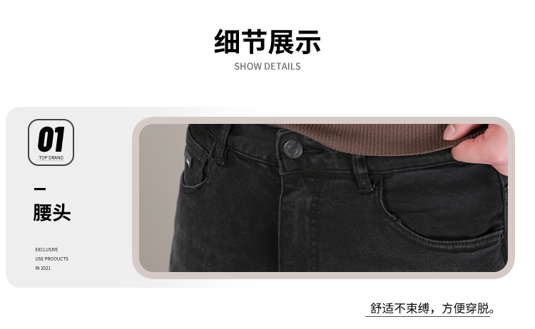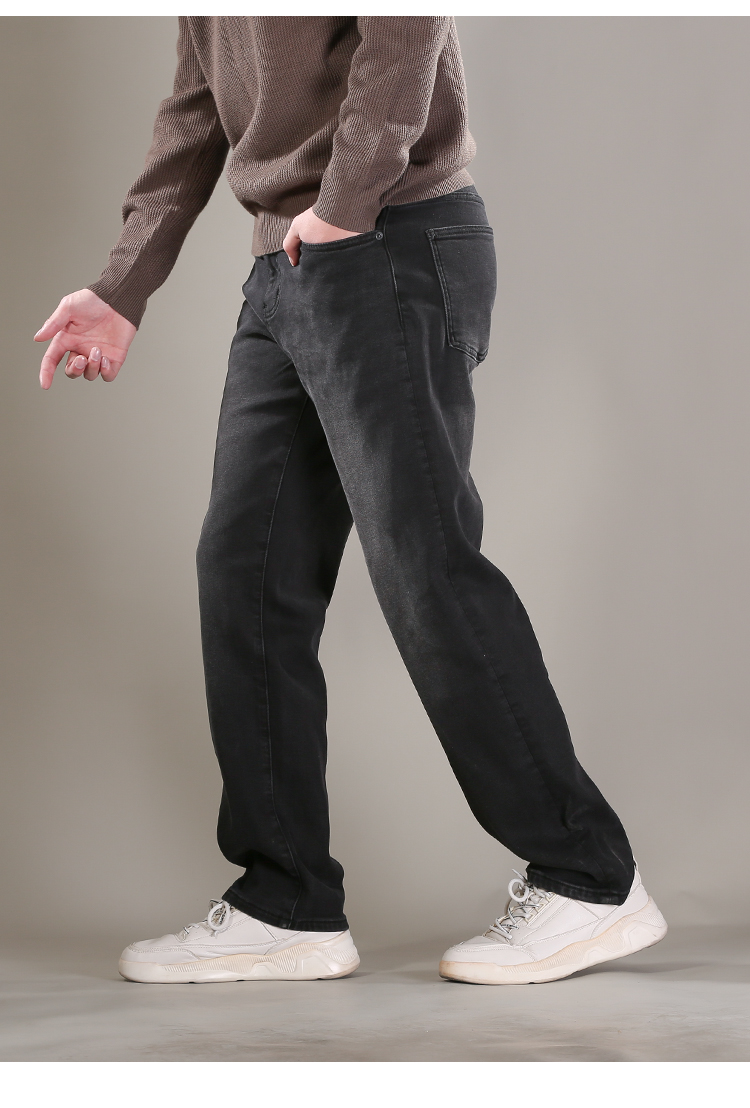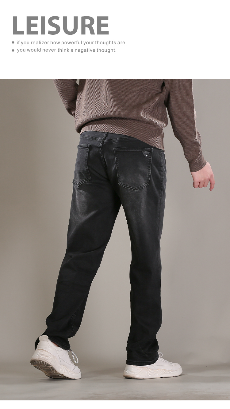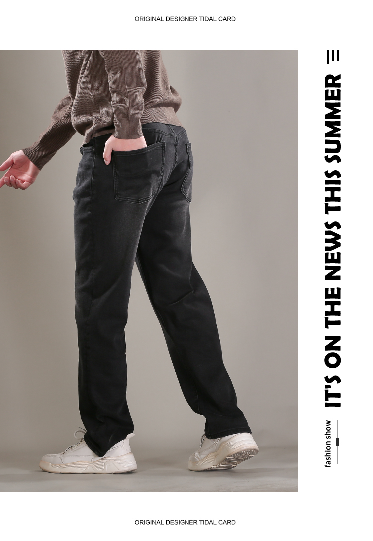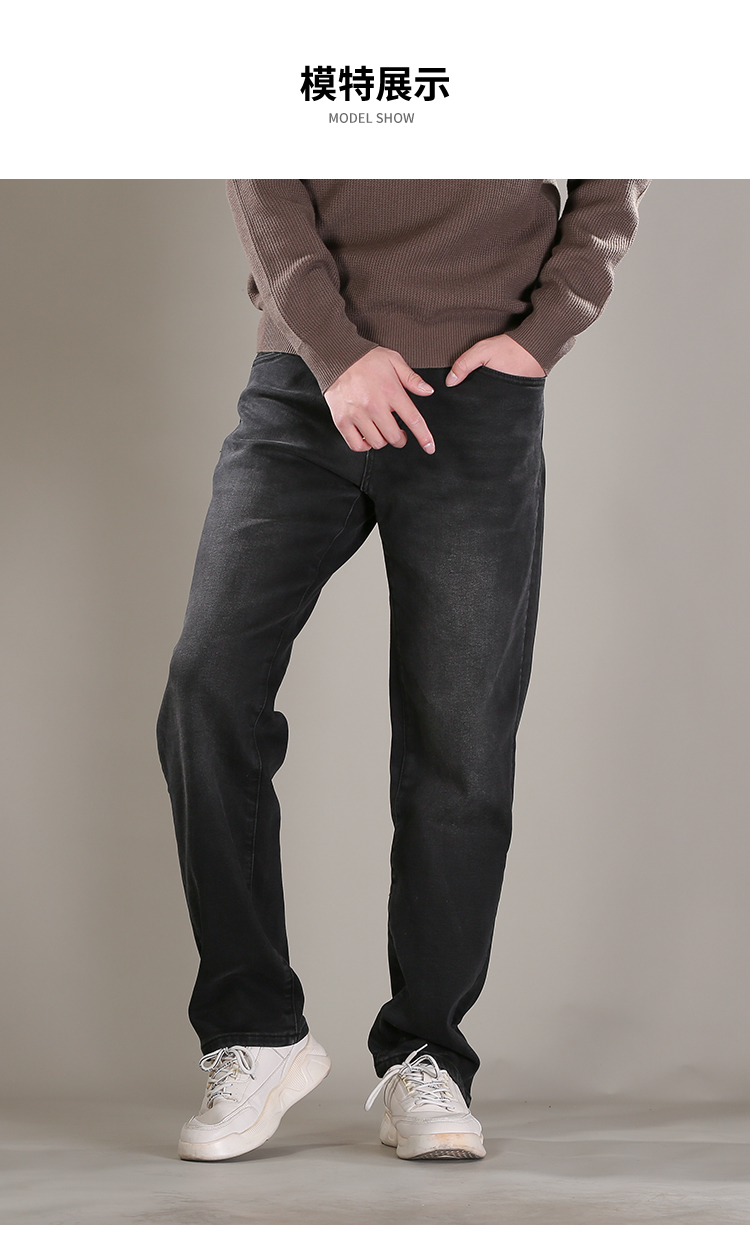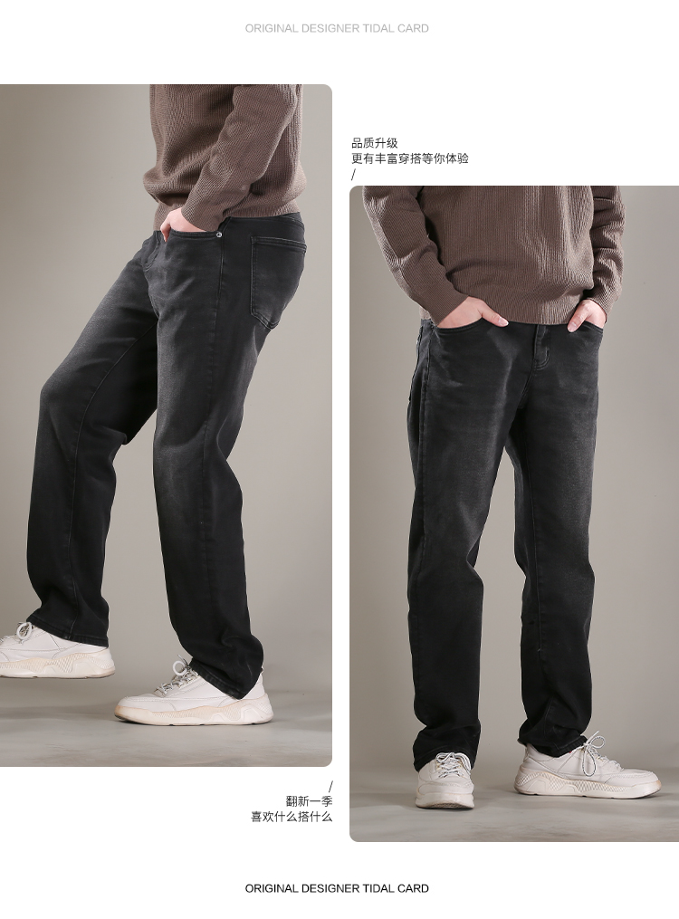 DRONKOO 2025 正常腰表袋黑标绣线海岛一体绒厚牛仔长裤