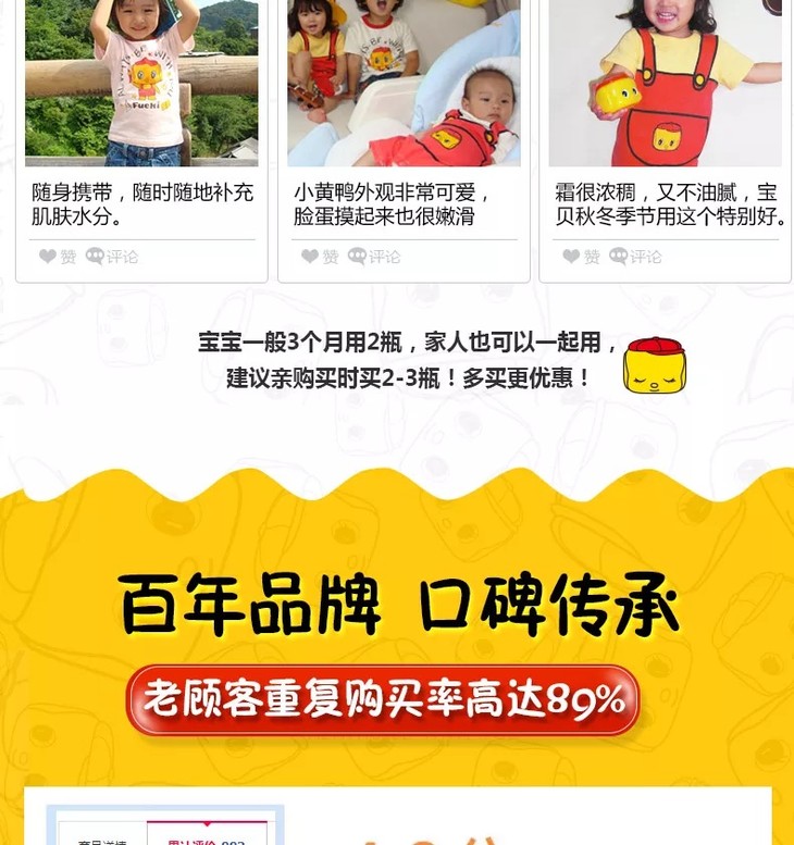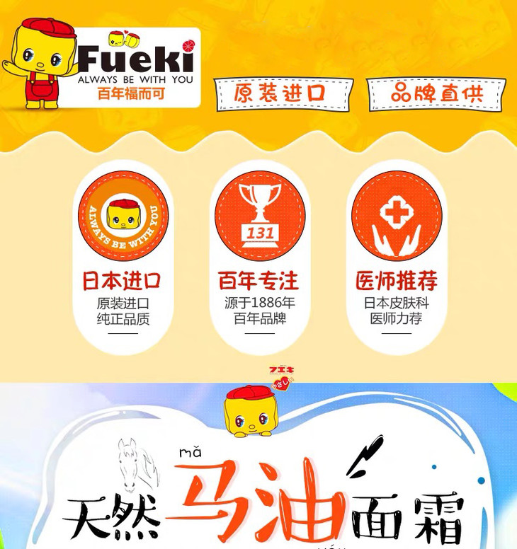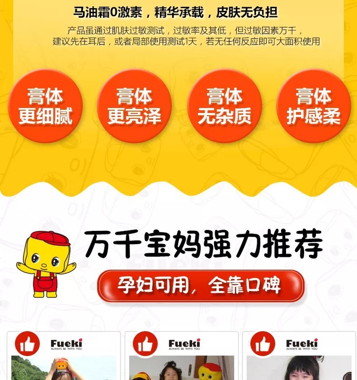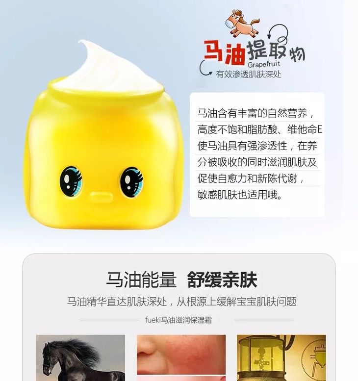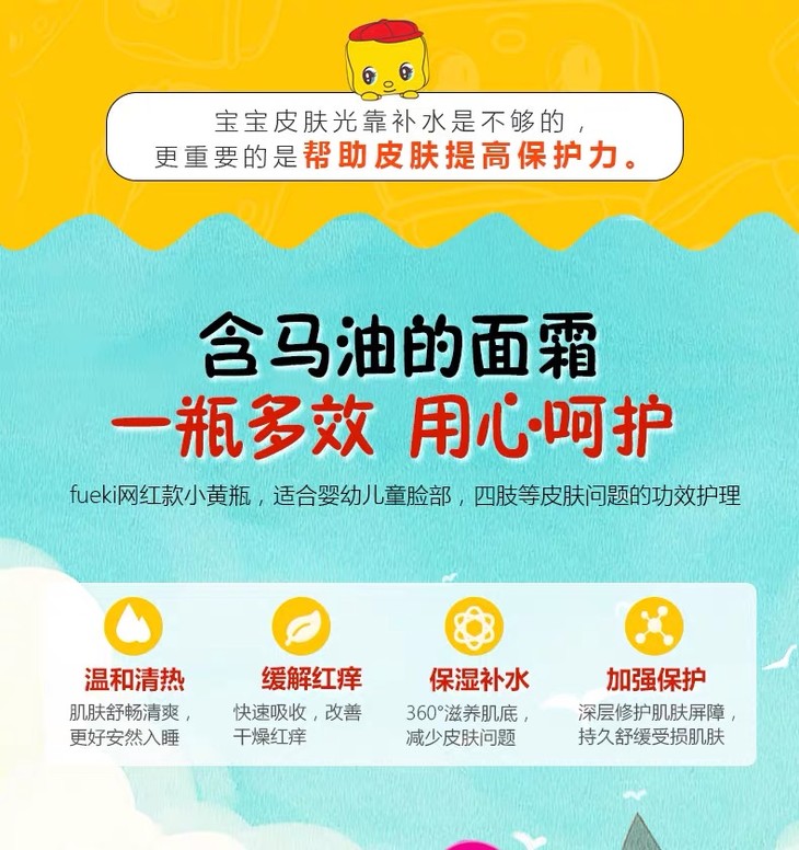 日本Fueki福而可【50g*2】儿童面霜婴儿宝宝小黄鸭俏皮娃娃婴幼儿保湿霜