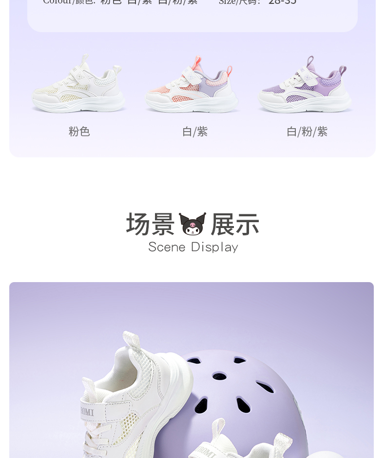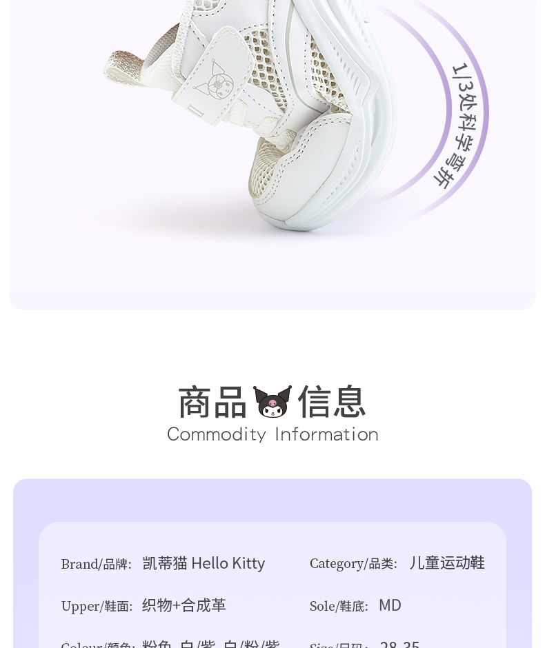 HelloKitty童鞋女童运动鞋春夏儿童小白鞋女孩透气网鞋26-37 KU5526808