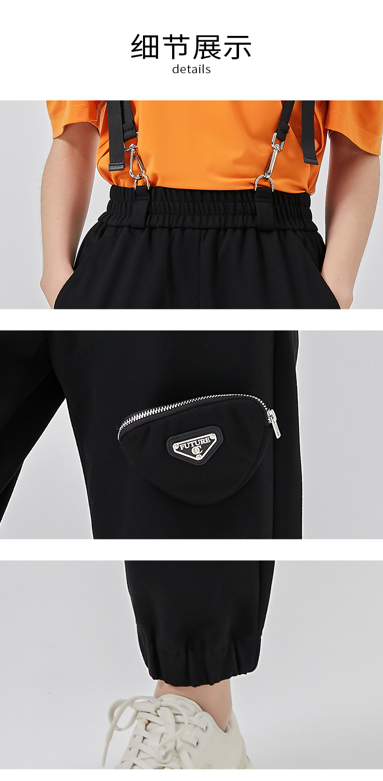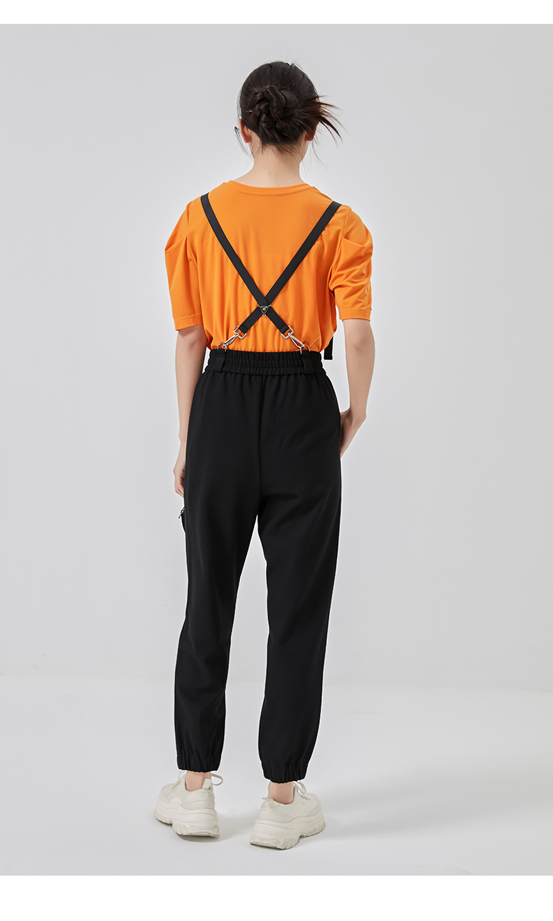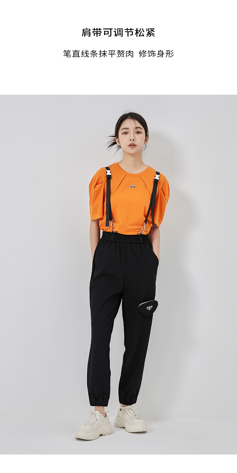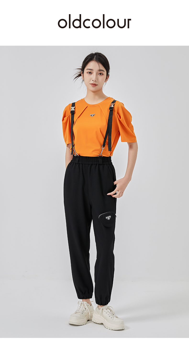 oldcolour2023春季新款黑色高腰直筒运动休闲背带裤女O11079161