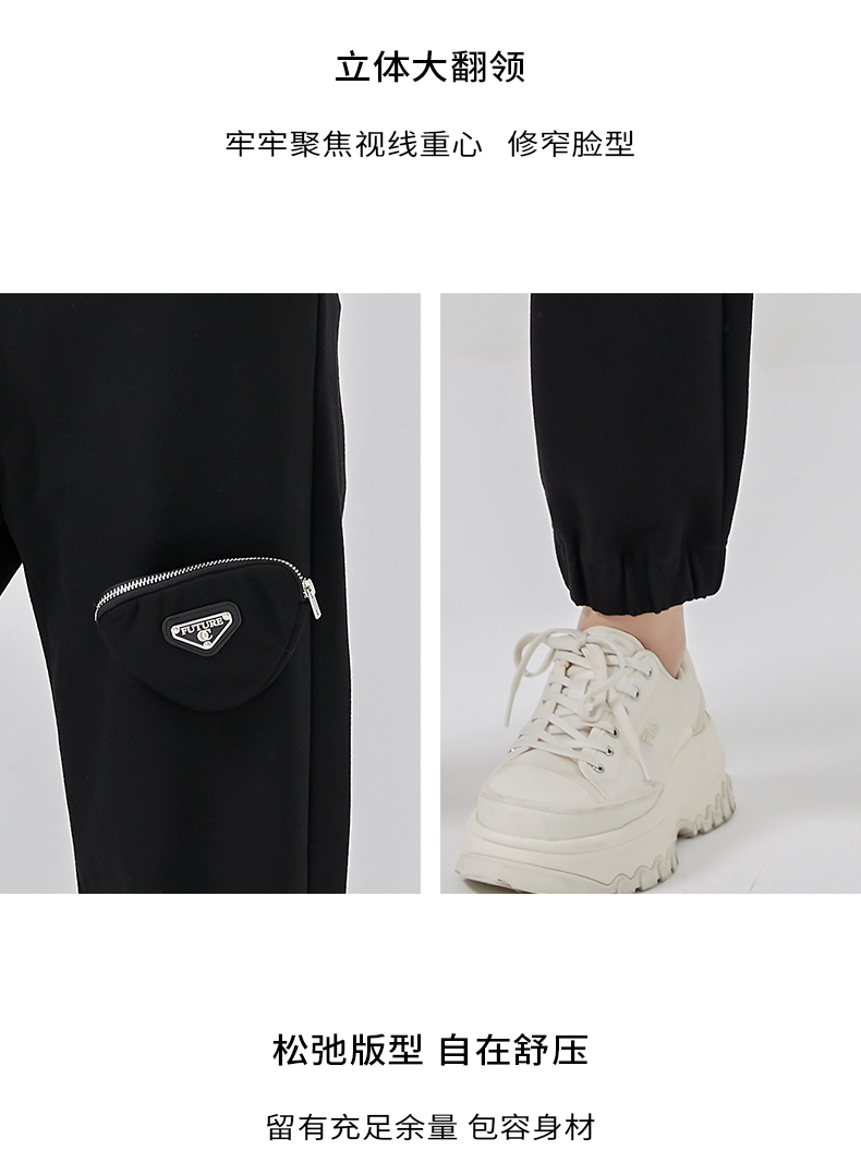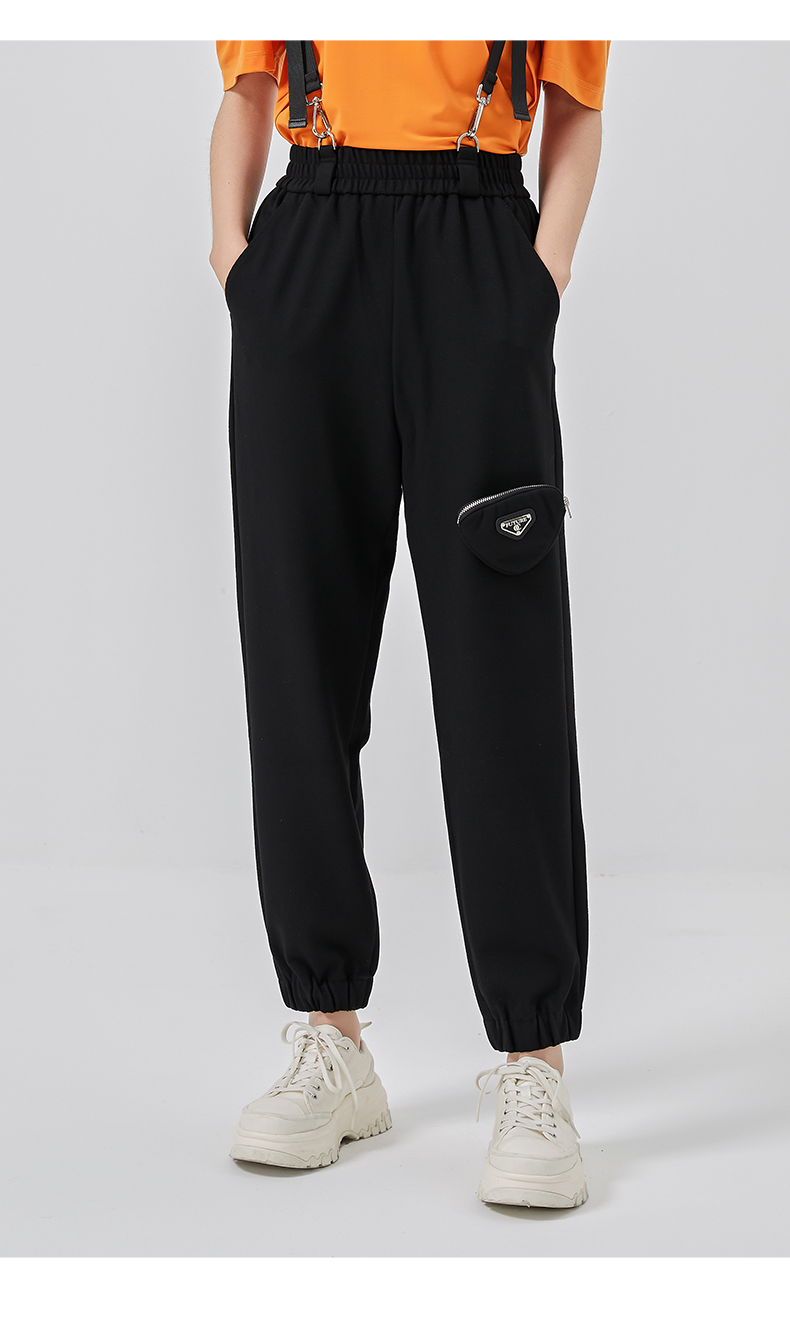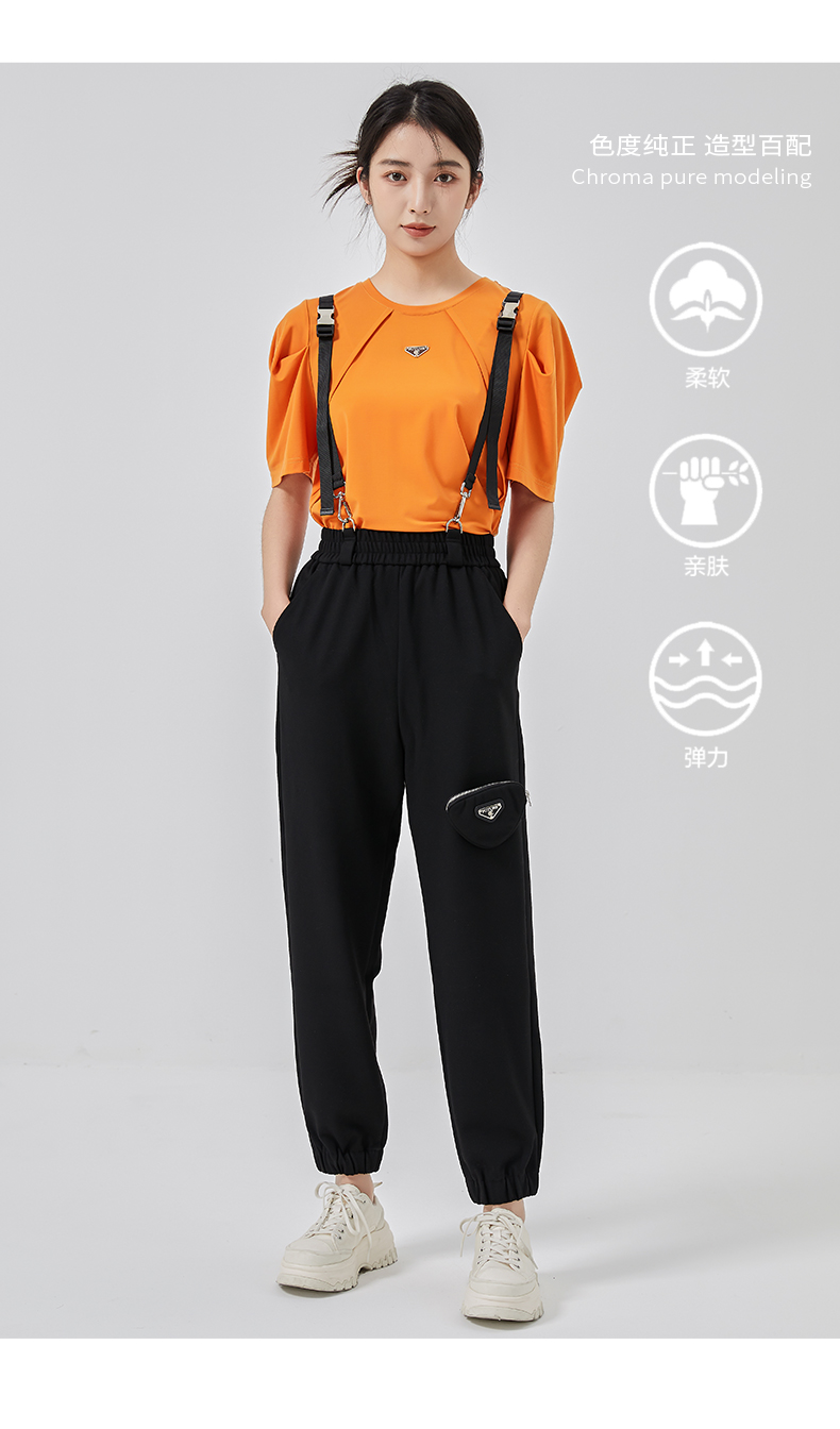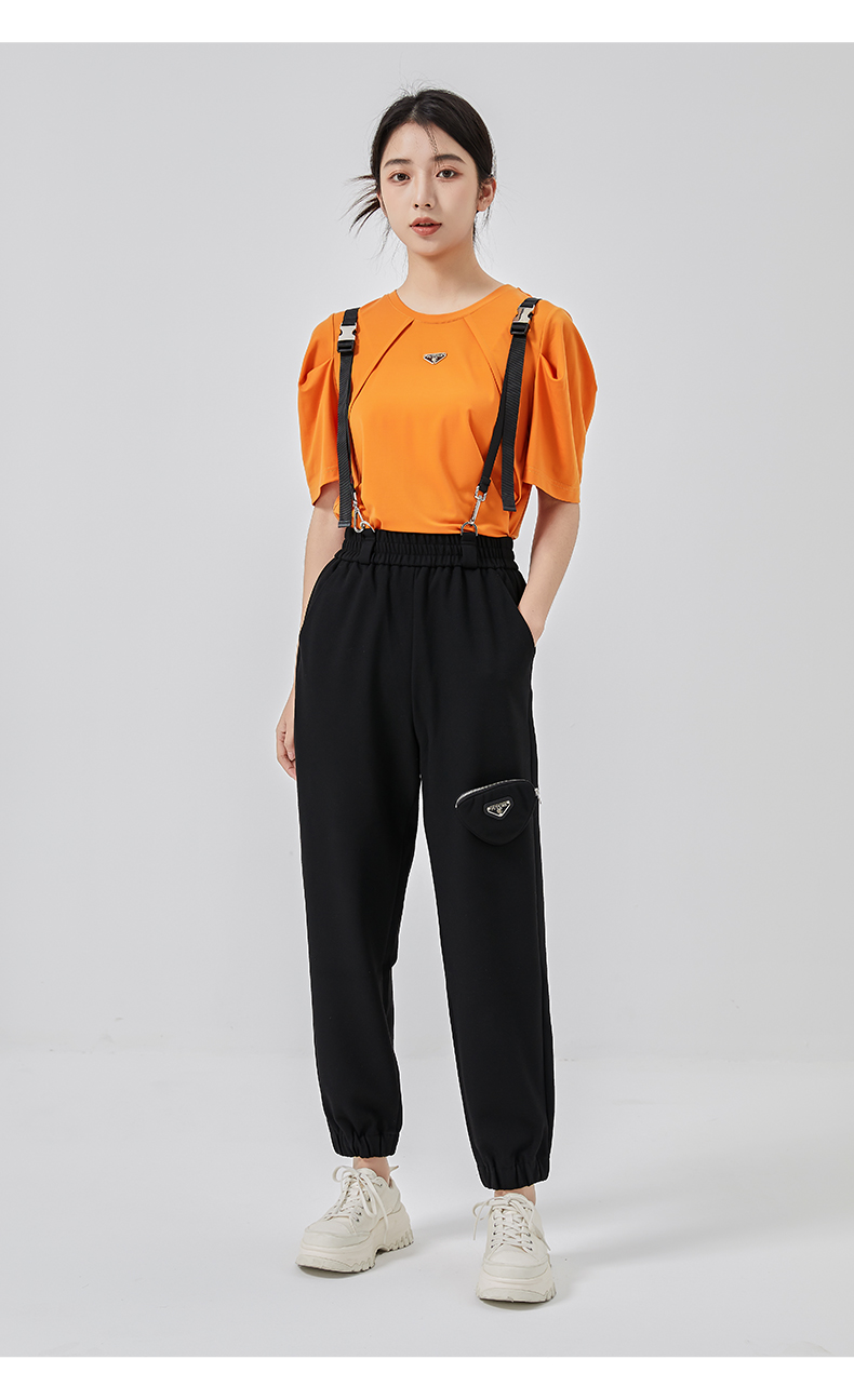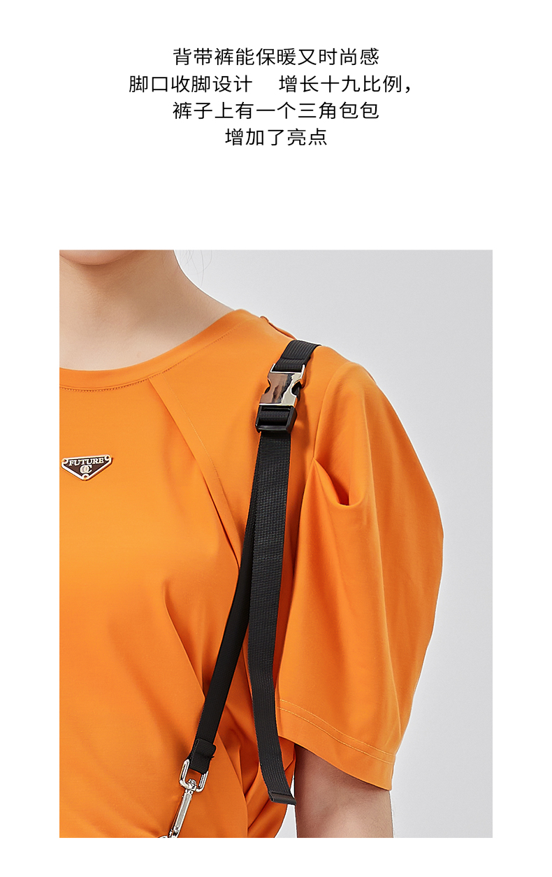 oldcolour2023春季新款黑色高腰直筒运动休闲背带裤女O11079161
