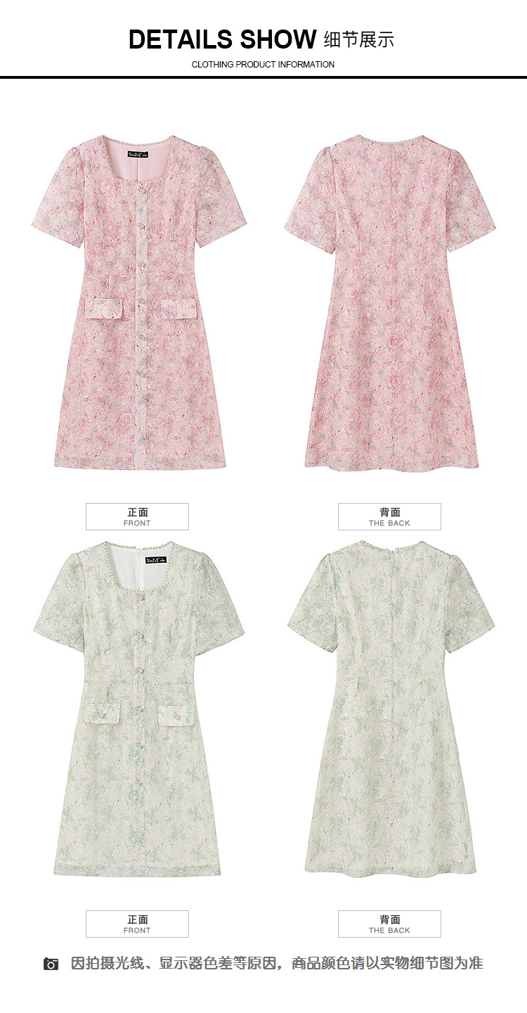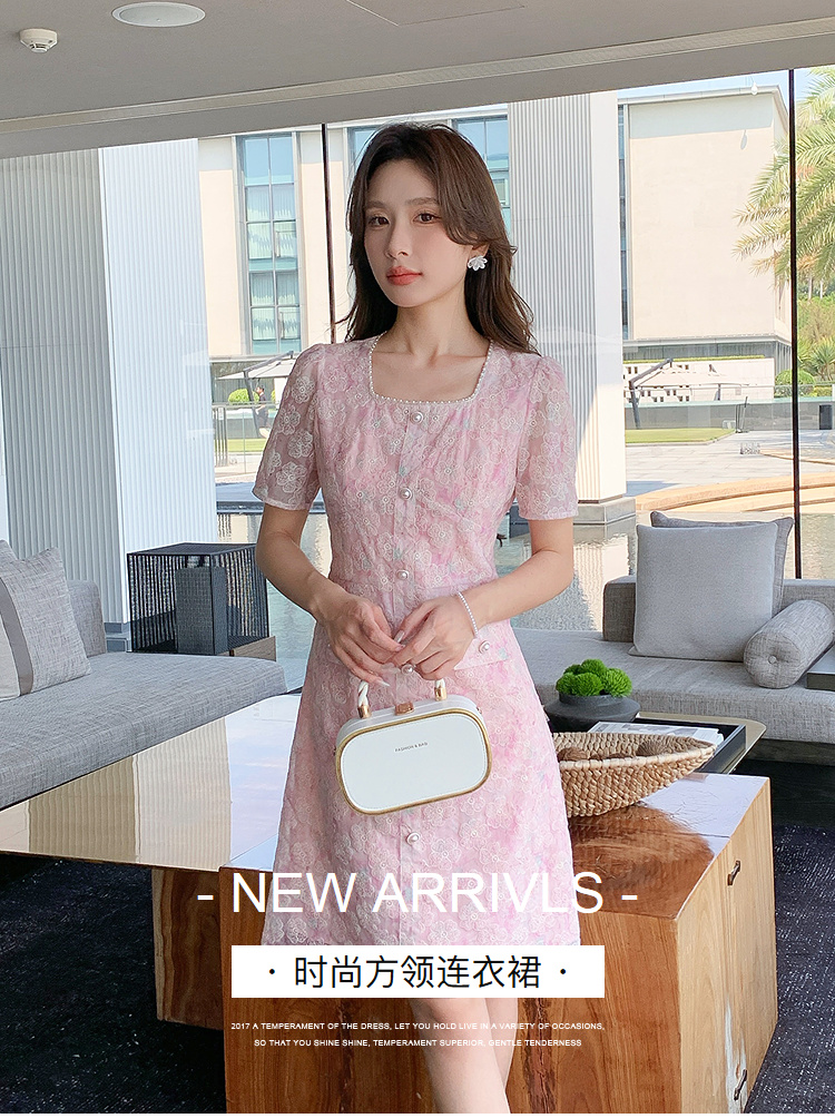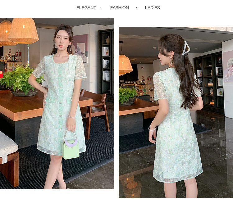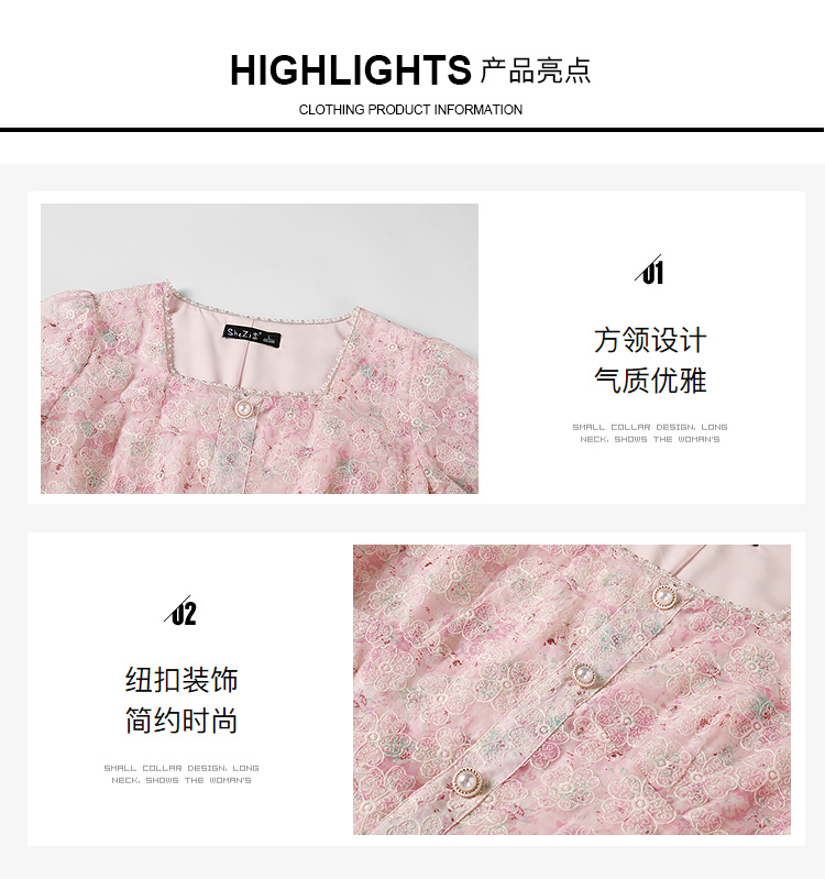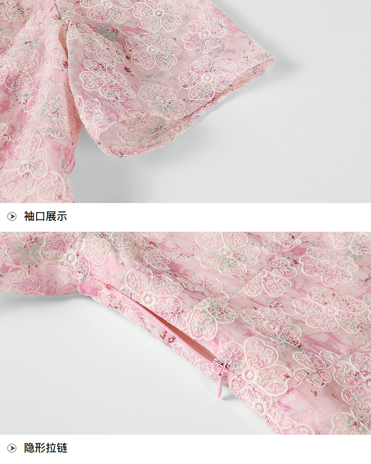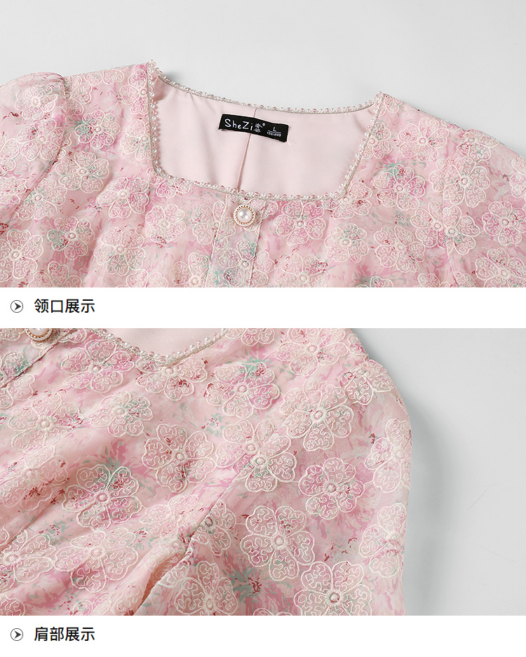 奢姿大码女装2025夏季减龄碎花时尚连衣裙胖妹妹绣花设计方领裙子9952869289