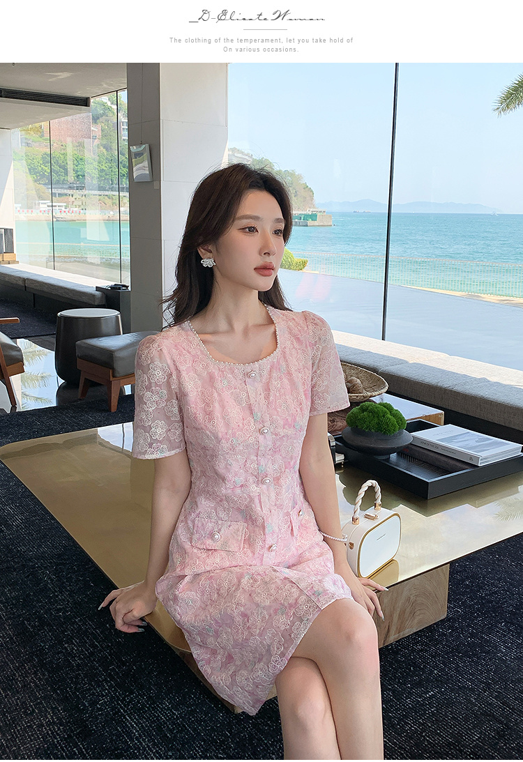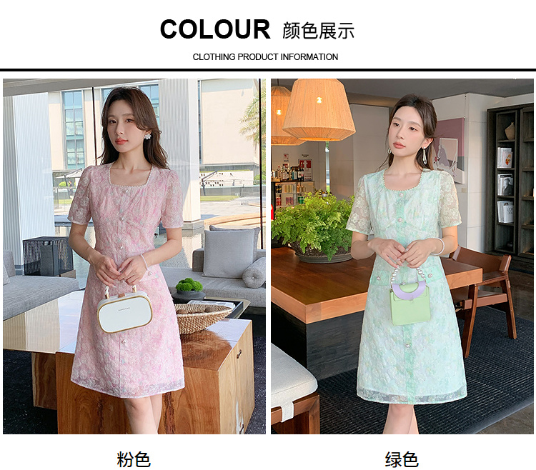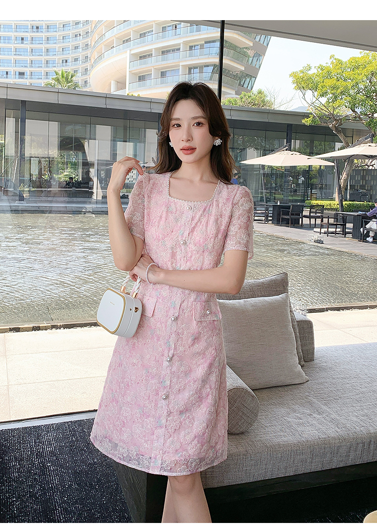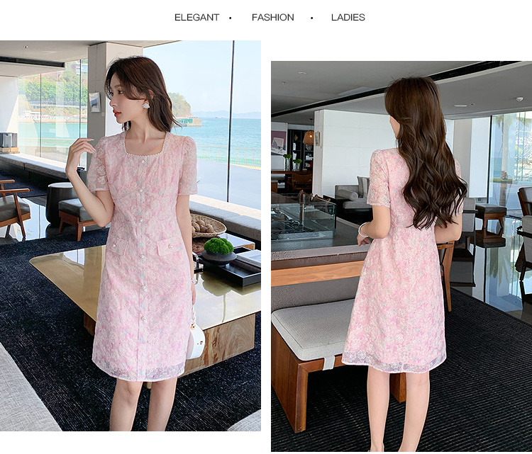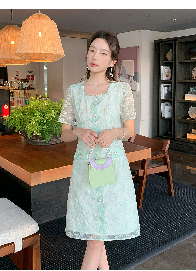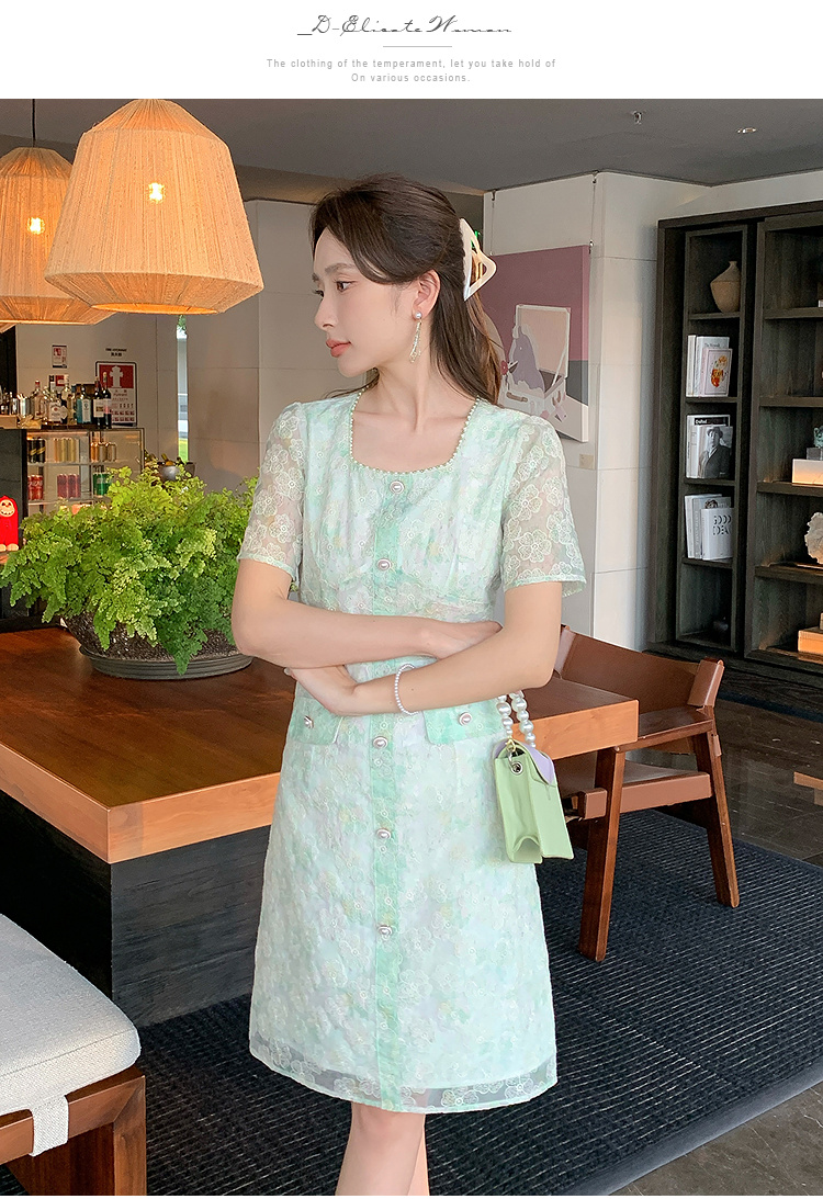 奢姿大码女装2025夏季减龄碎花时尚连衣裙胖妹妹绣花设计方领裙子9952869289