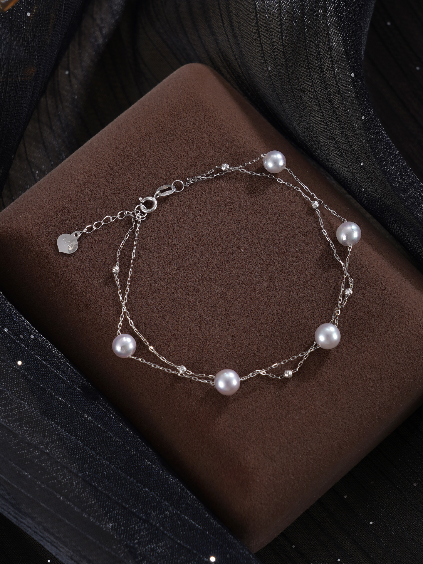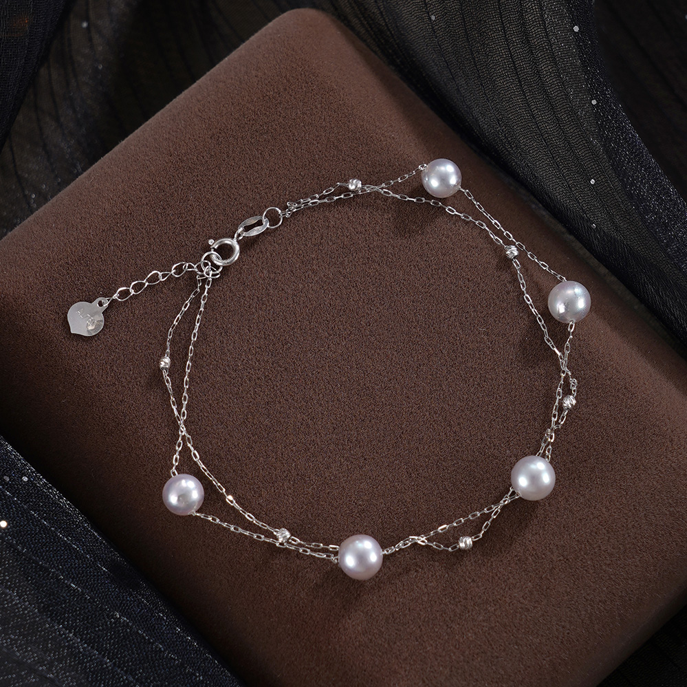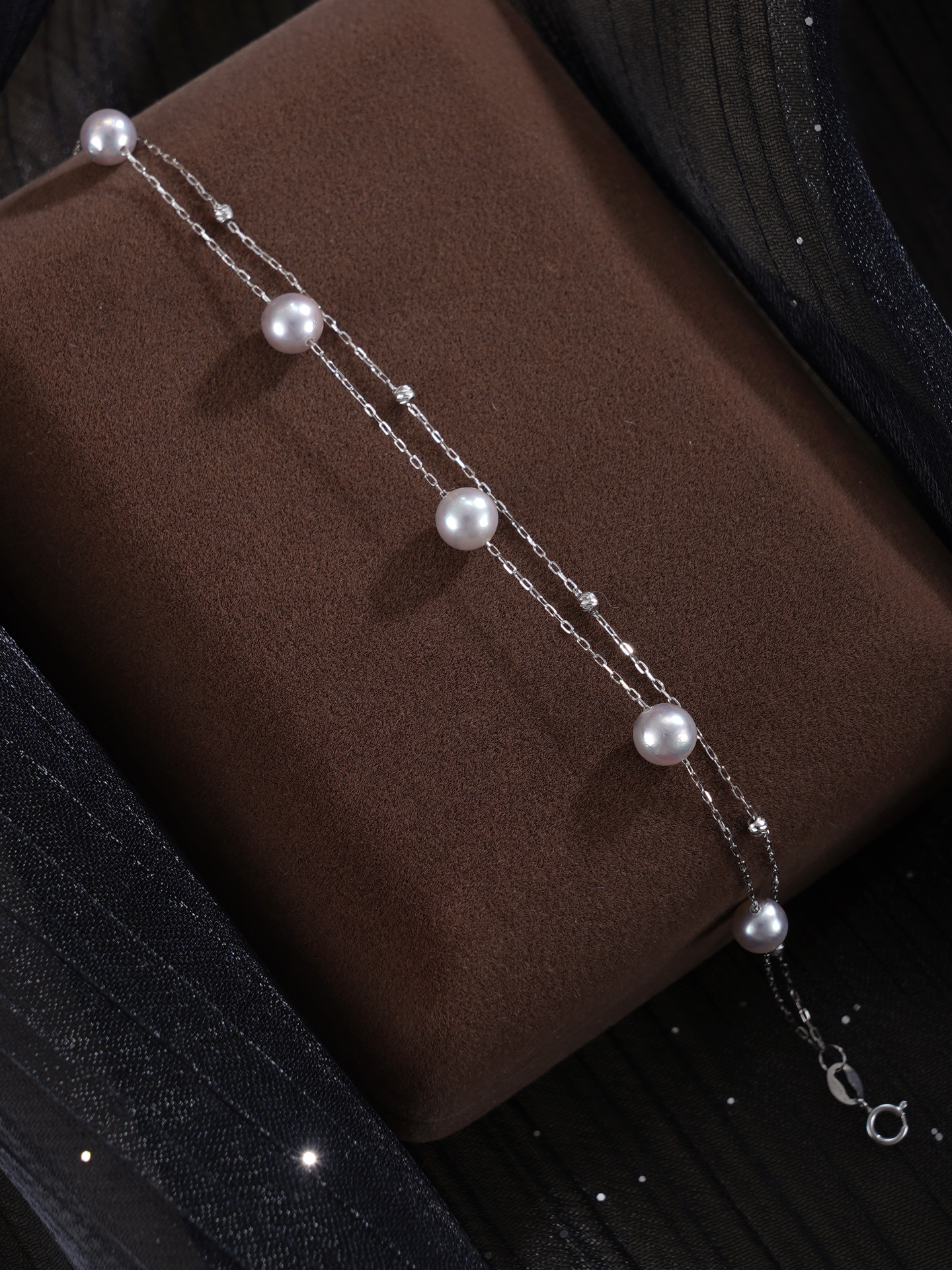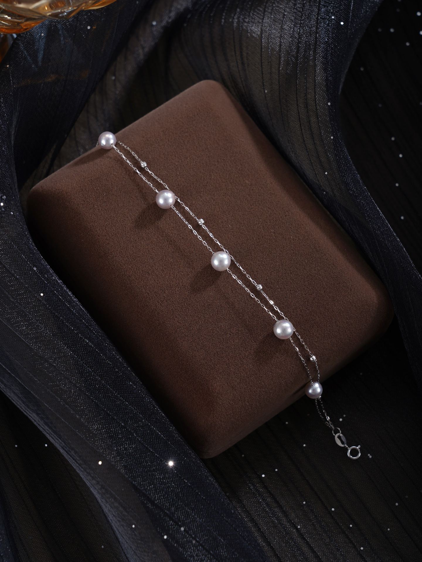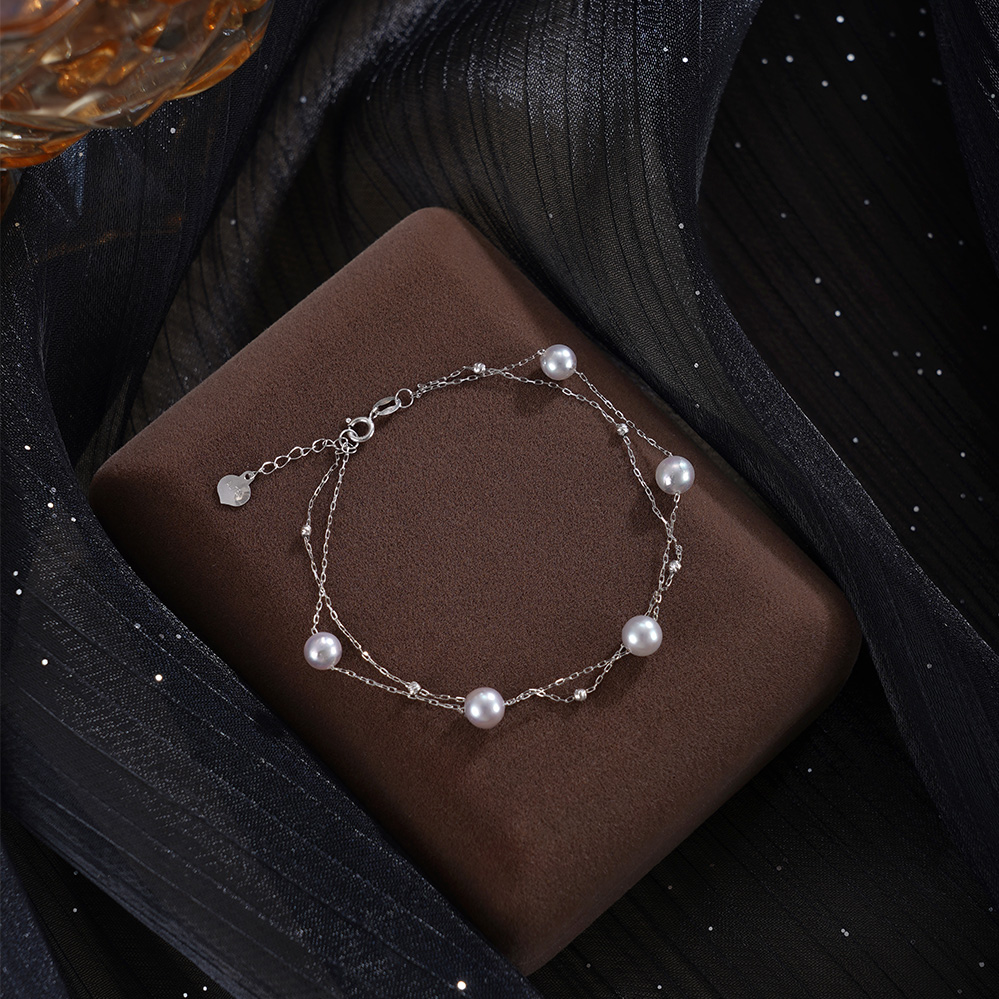 子佩集【星河光芒】G18K珍珠惜王妃手链【MLKJSL002】5mm珠灰珠多珠双层链2601