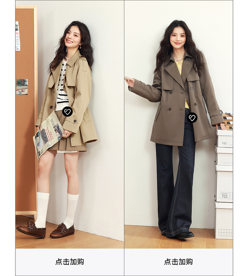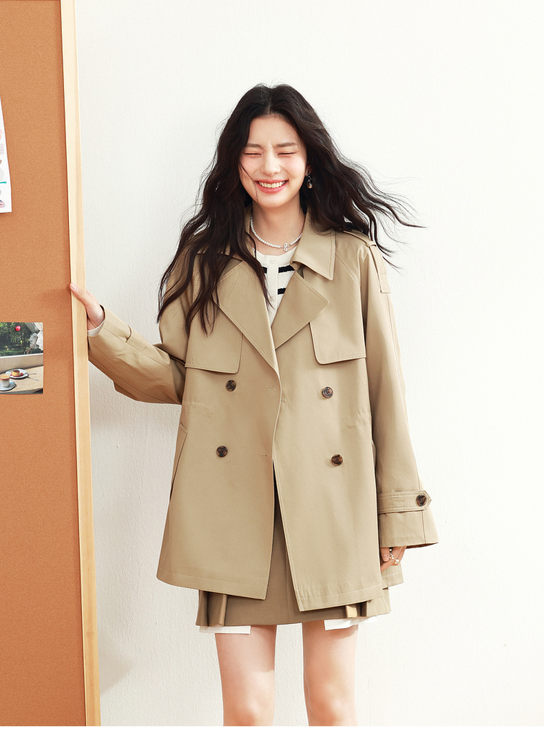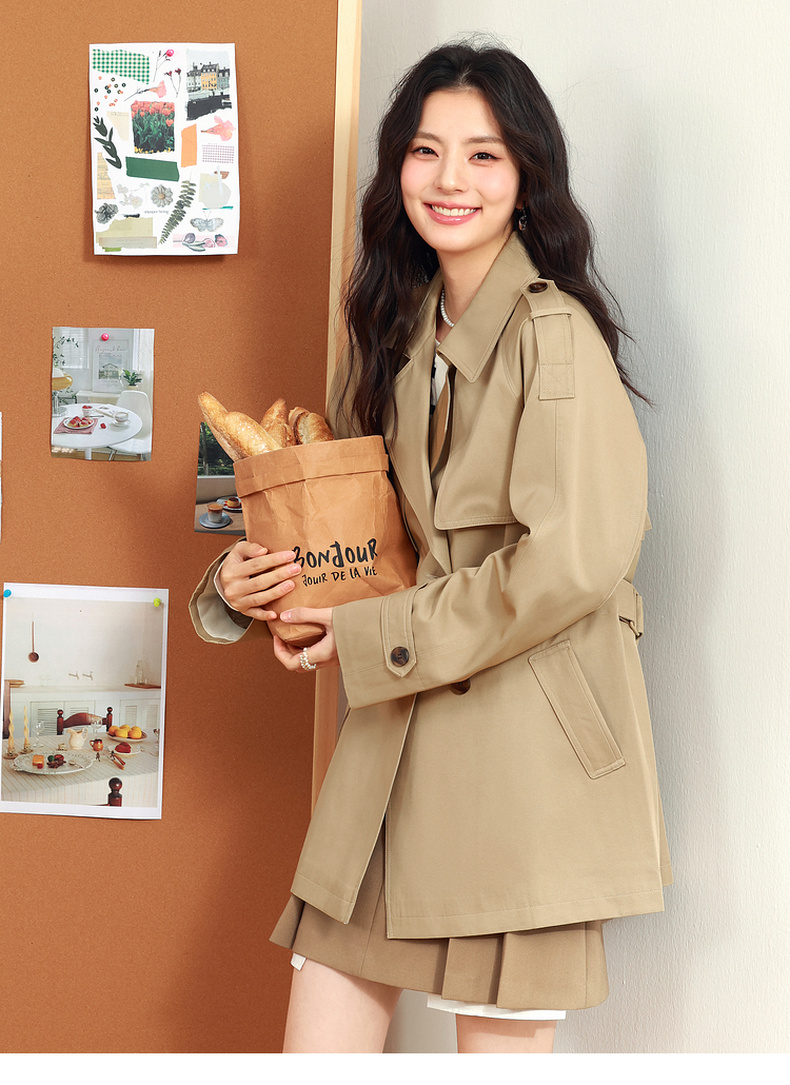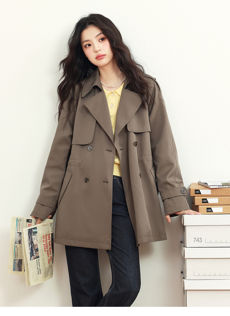 【严选】诗凡黎英伦风高级感中长款风衣2025年春新款显瘦休闲美拉德外套7G1260051-3