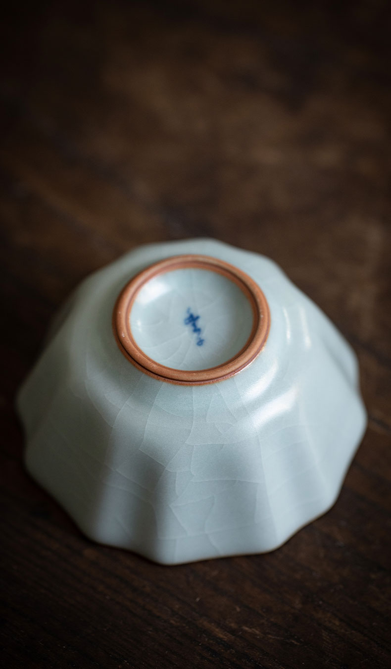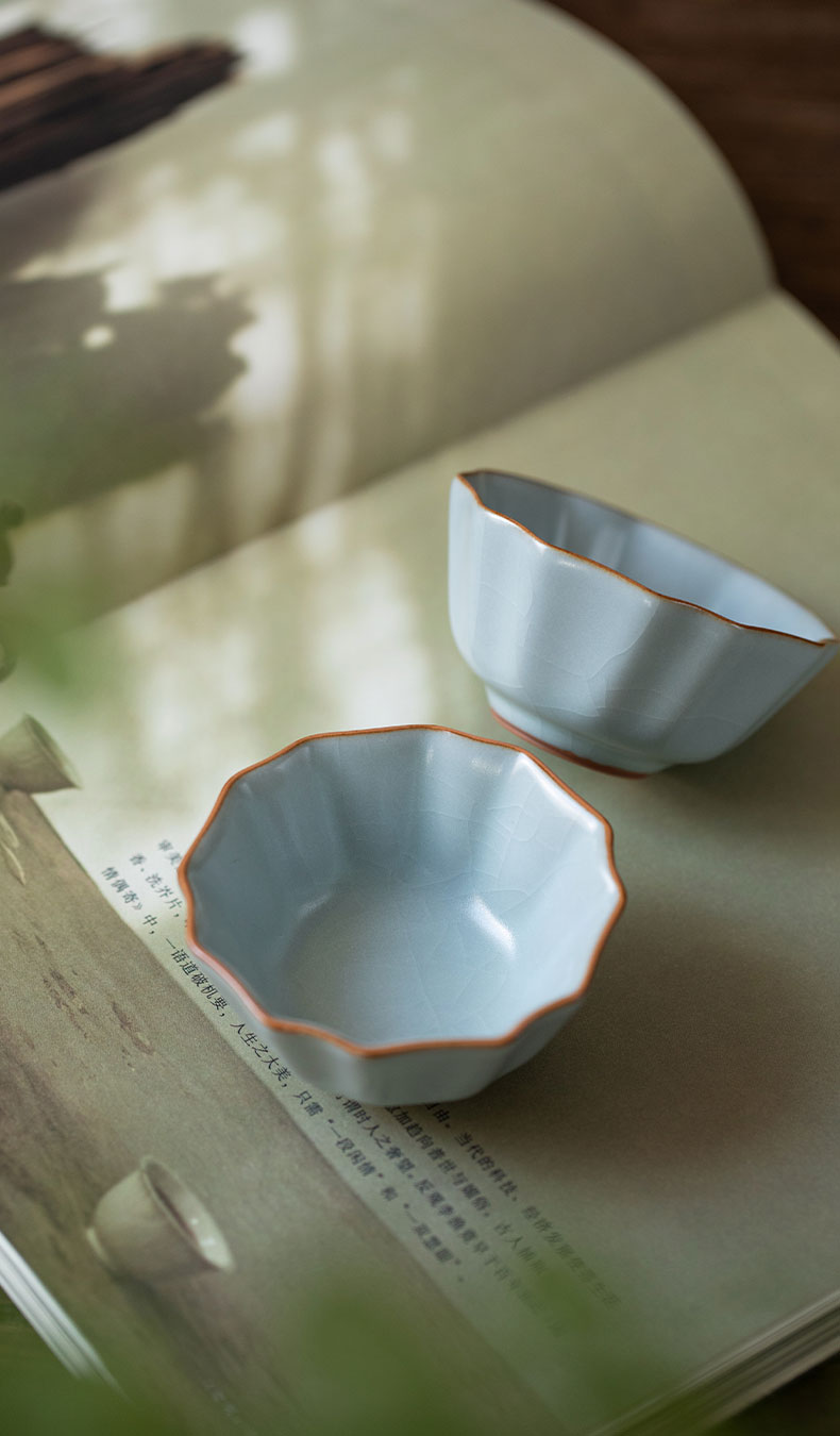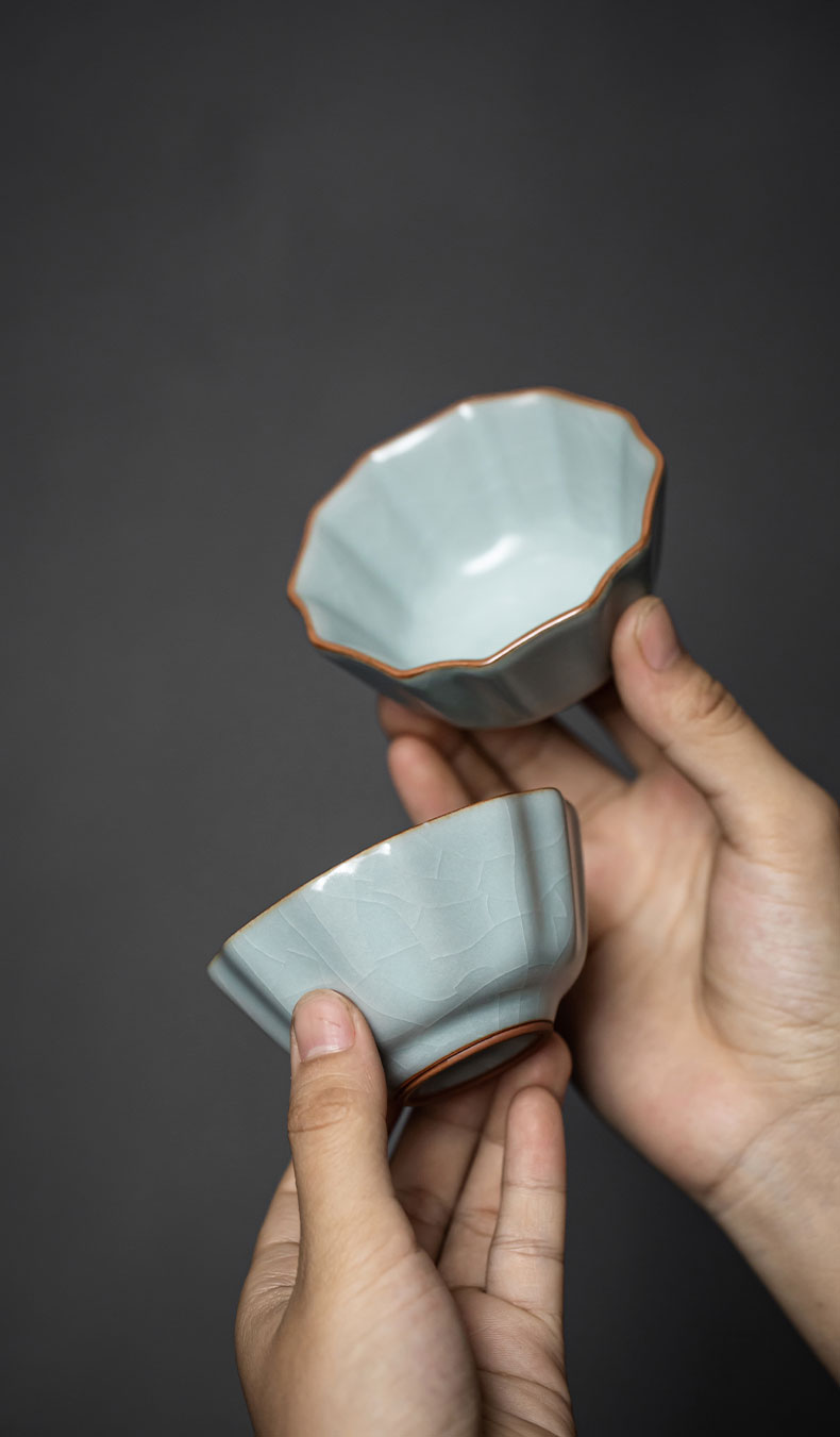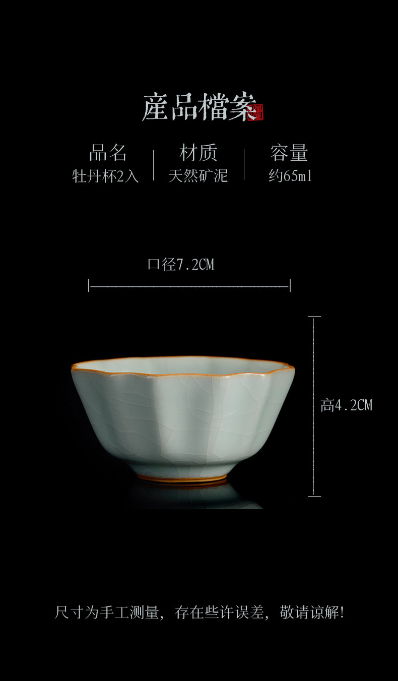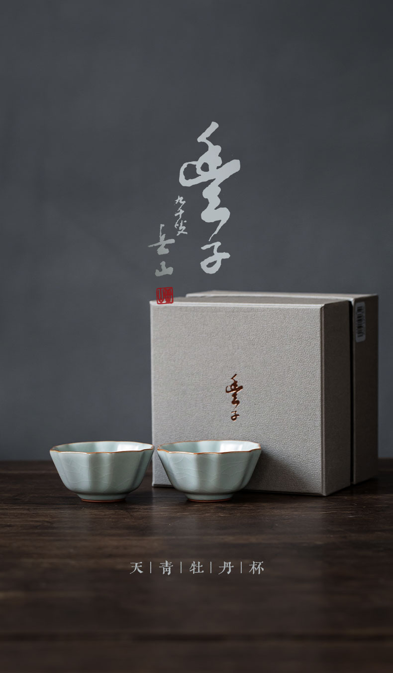 【丰子汝窑】【天青牡丹杯2入茶杯】7.8x4.5cm 50ml 纯手工开片主人杯陶瓷汝瓷单杯子个人品茗杯功夫茶具