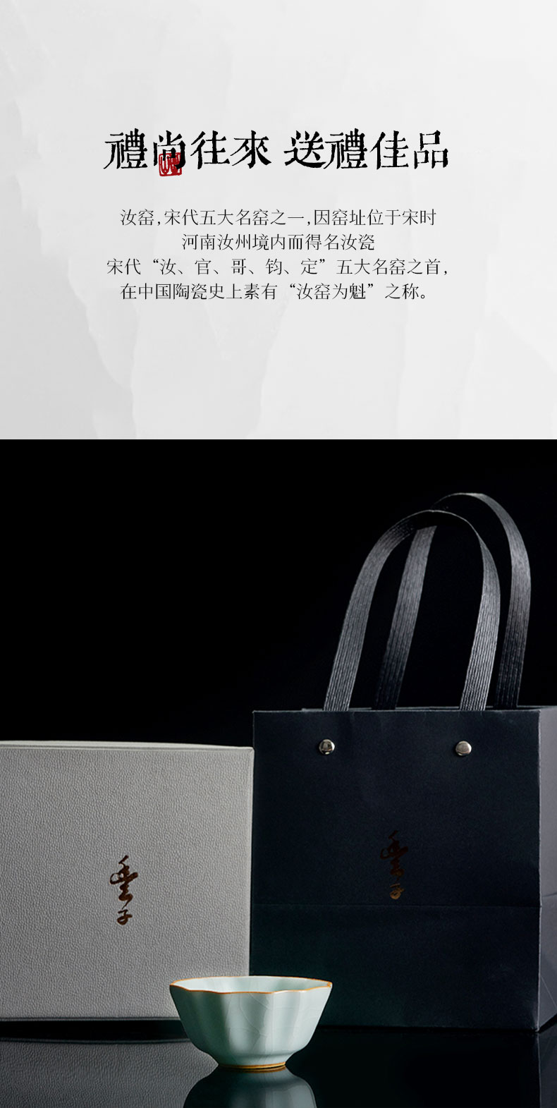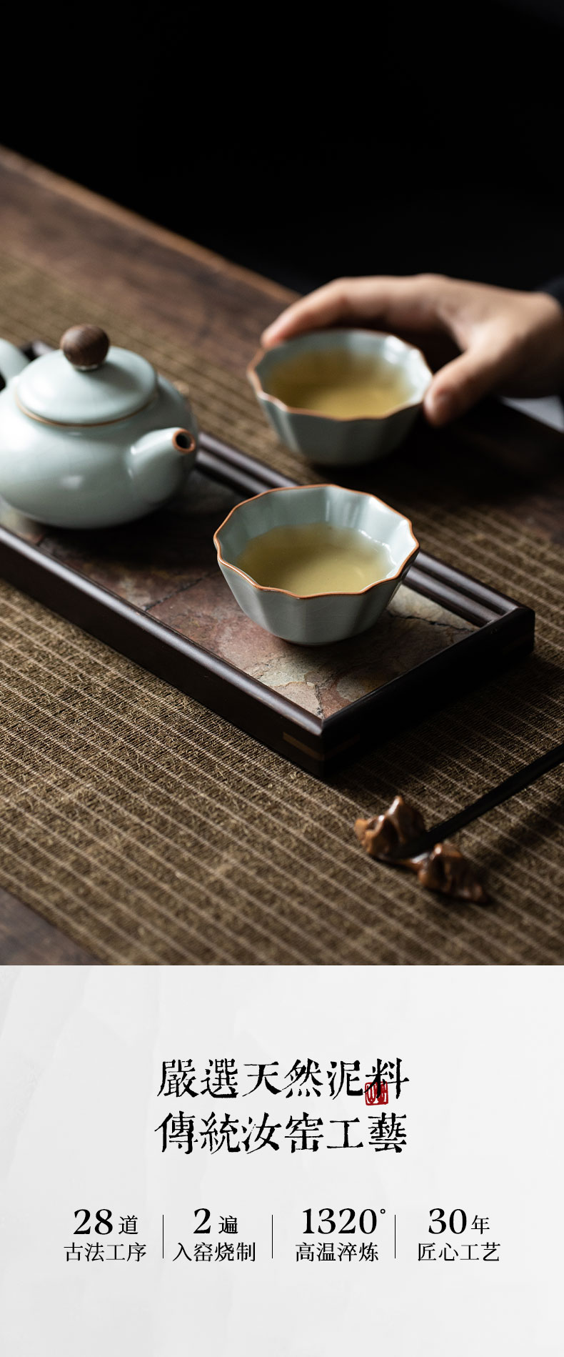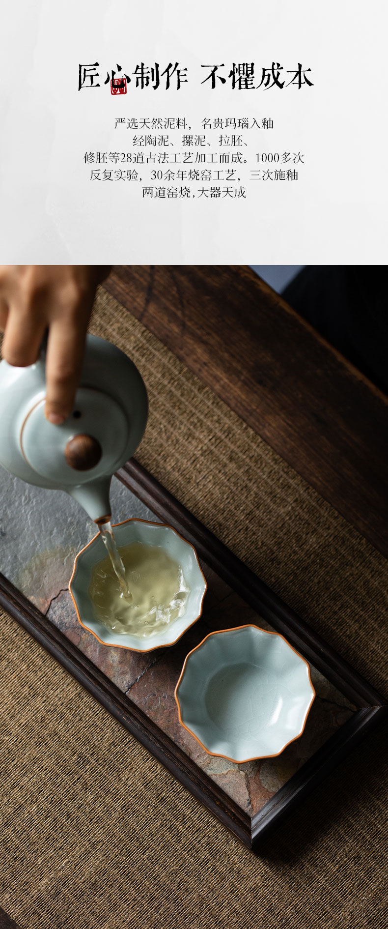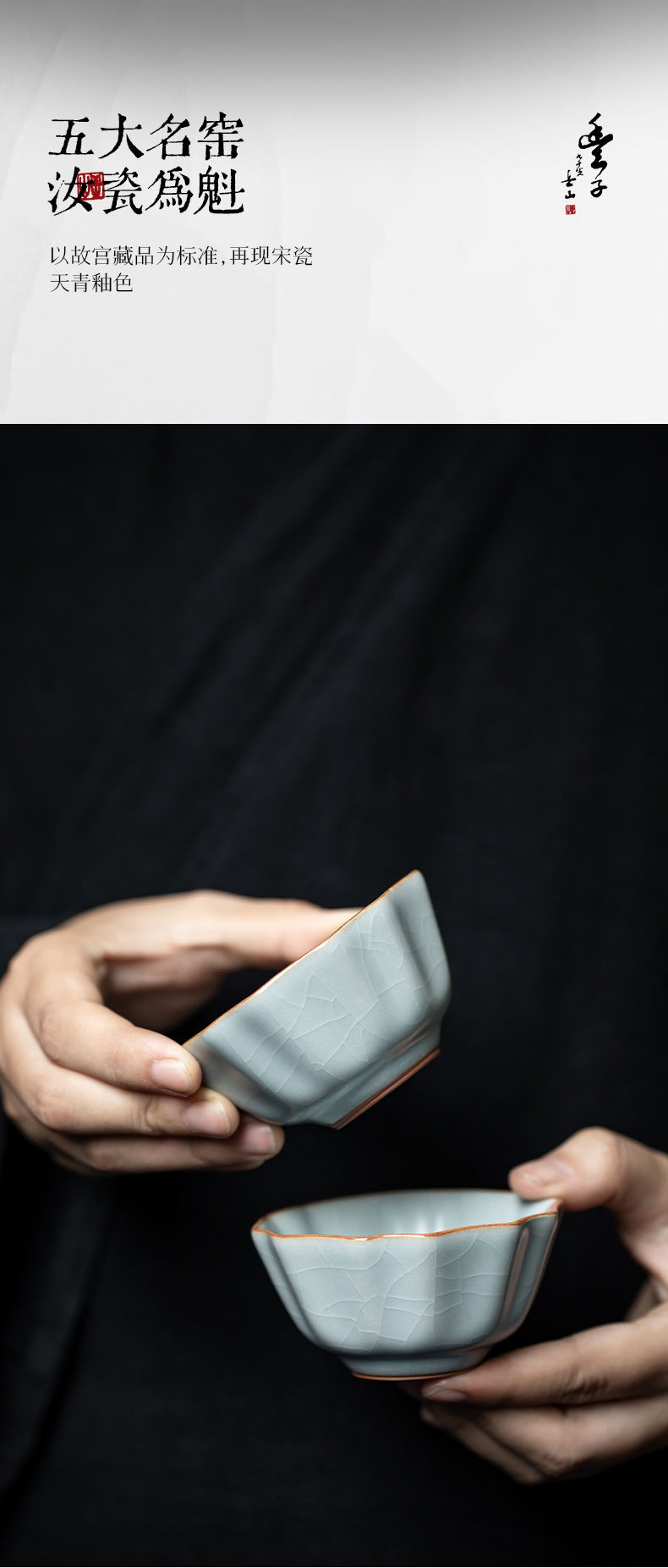 【丰子汝窑】【天青牡丹杯2入茶杯】7.8x4.5cm 50ml 纯手工开片主人杯陶瓷汝瓷单杯子个人品茗杯功夫茶具