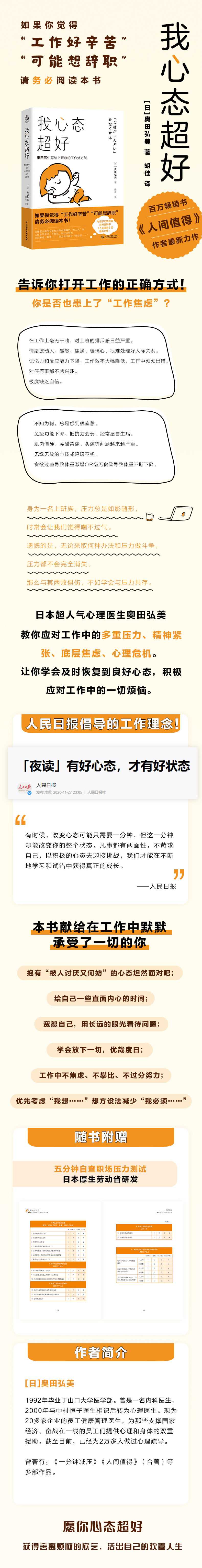 本书中,日本超人气企业心理医生奥田弘美针对工作中的多重压力、精神紧张、底层焦虑、心理危机等问题进行了详细的分析,并教会读者如何进行压力自查,通过了解与压力巧妙共存的“3R”法则,让读者能够及时恢复到良好心态,积极应对工作中的一切烦恼。