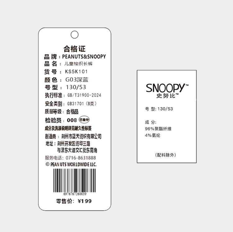 【轻跑裤】【史努比】【130-165】史努比女童裤子