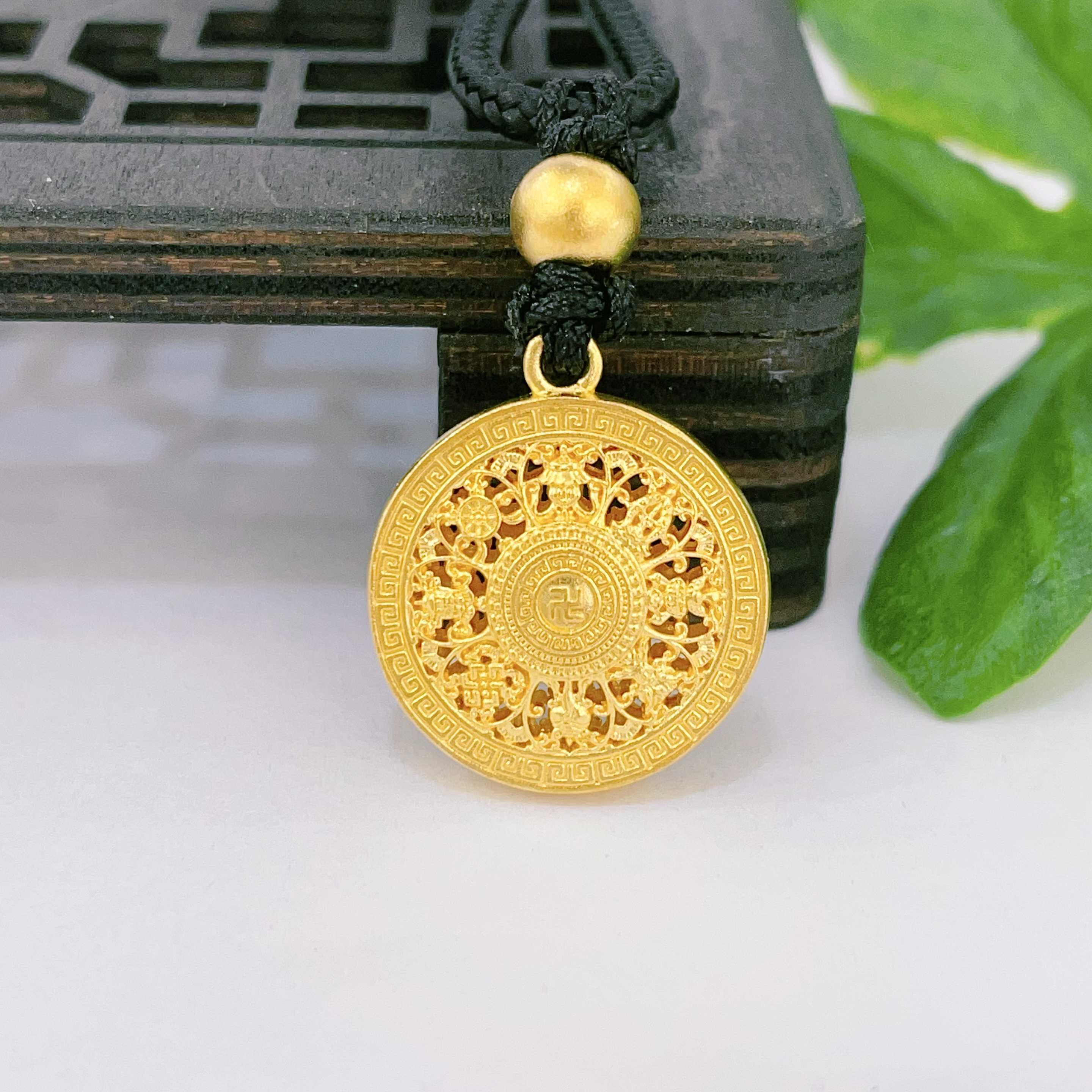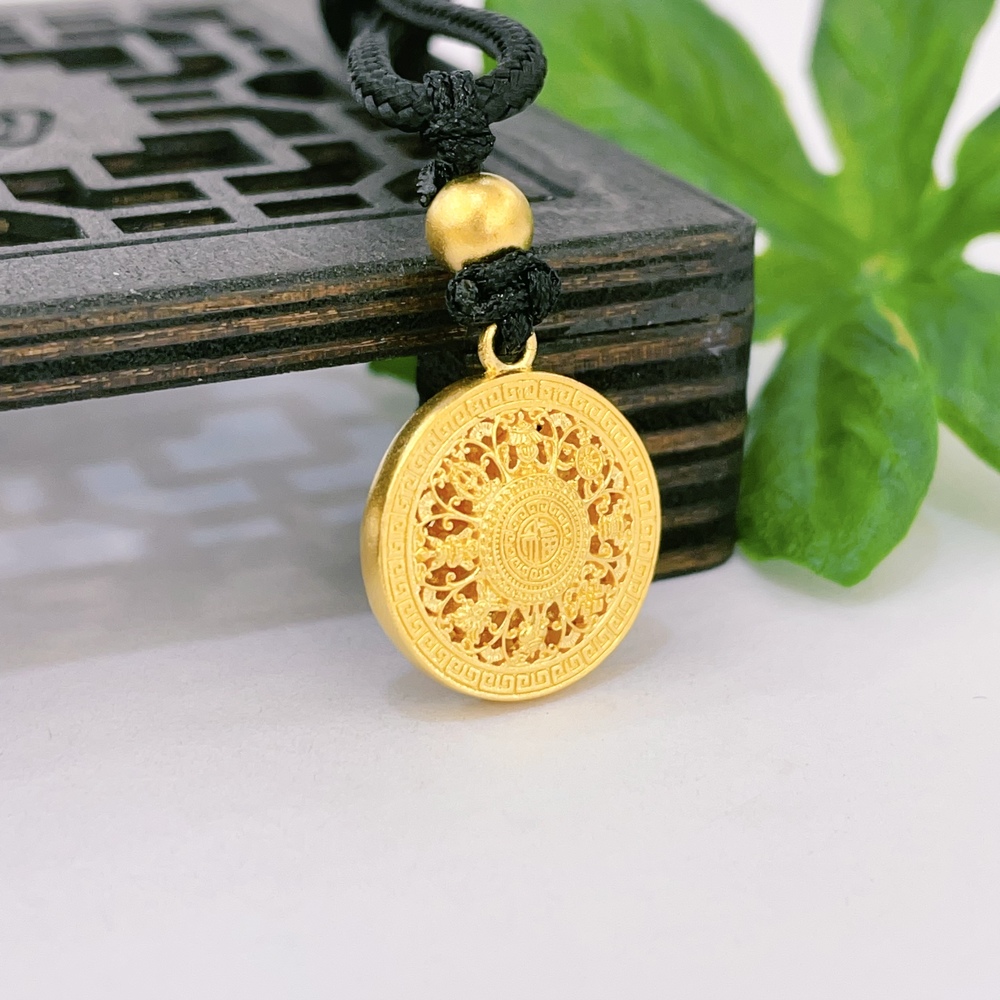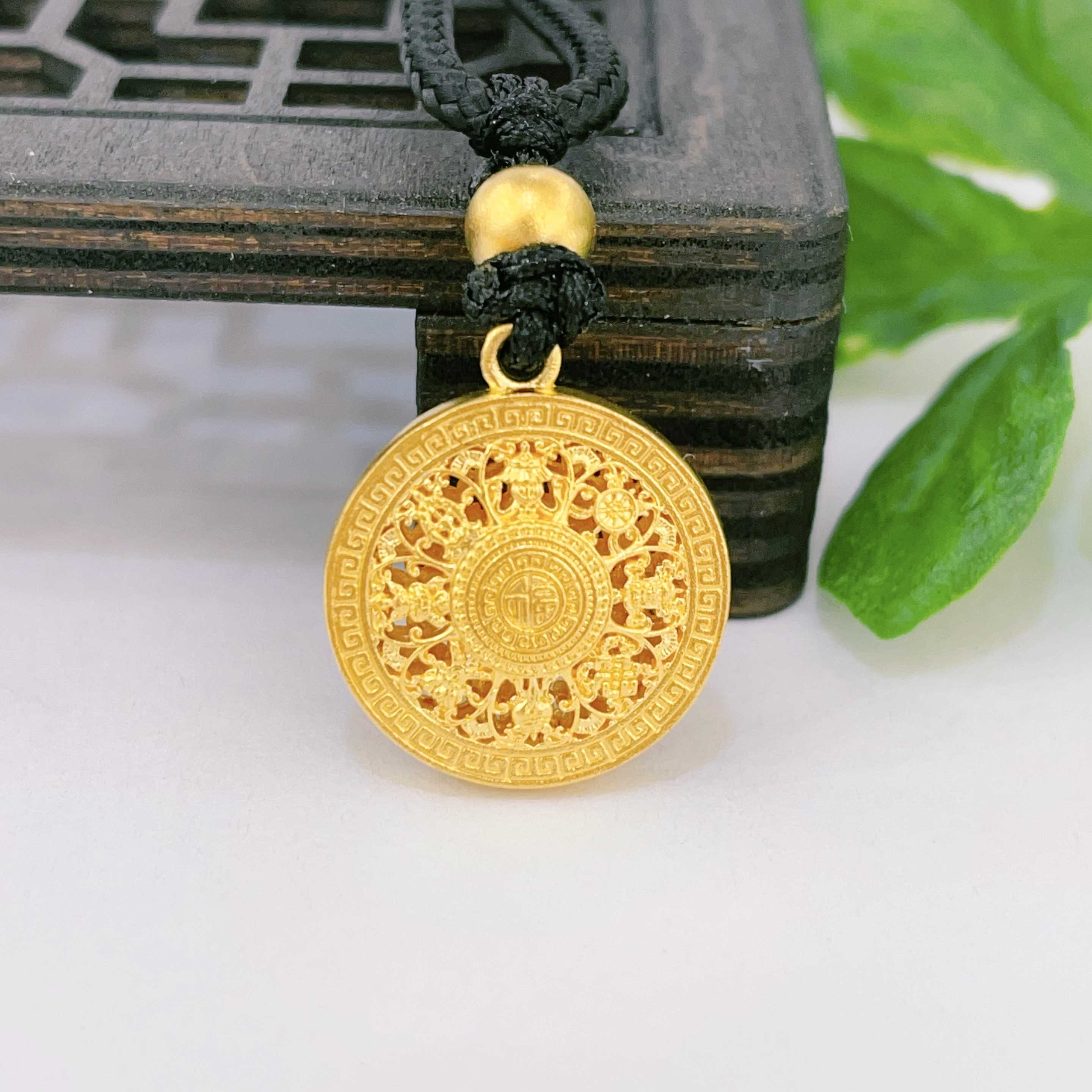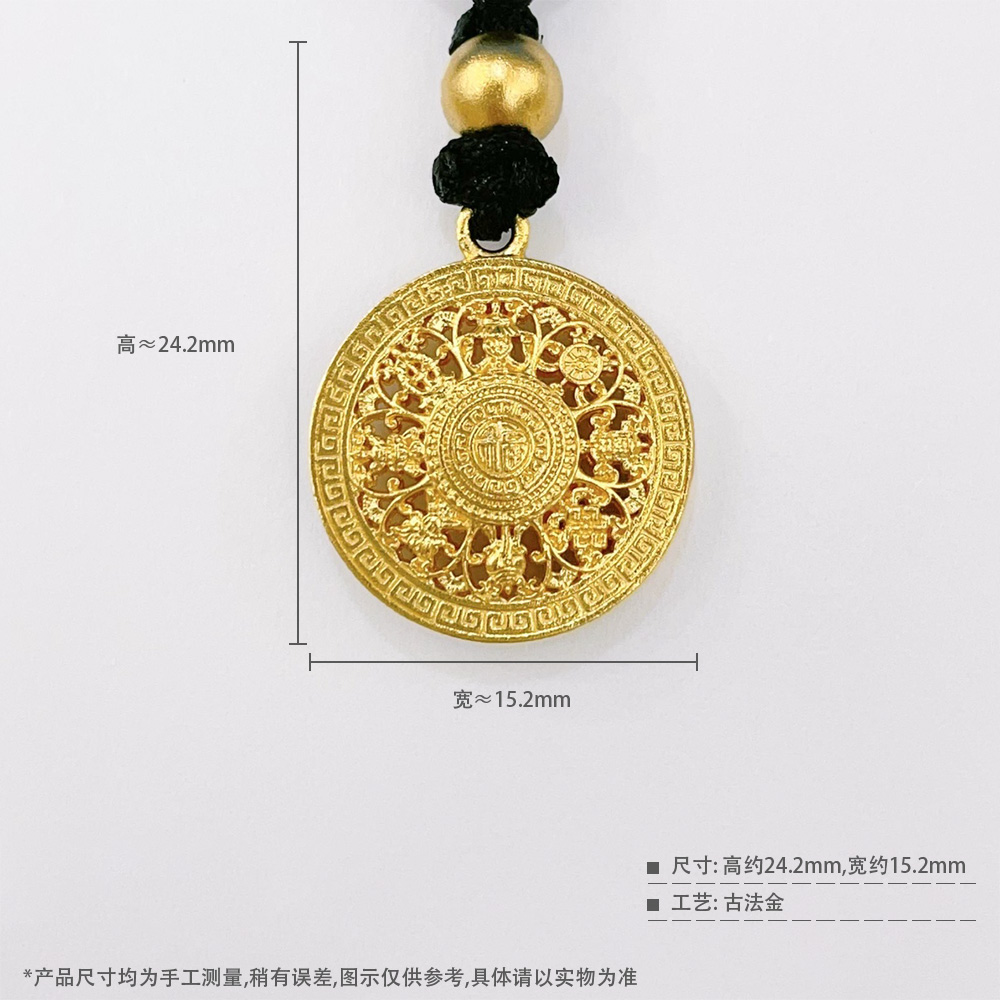 【限时克减150元】足金999.9 #八宝罗盘 # 古法挂绳镂空八方祥瑞福字八宝罗盘吊坠(含珠子,面宽约15.2mm)(AIGFDZ00008-5)(预售产品下单后不退款不退货不换货不补差价)
