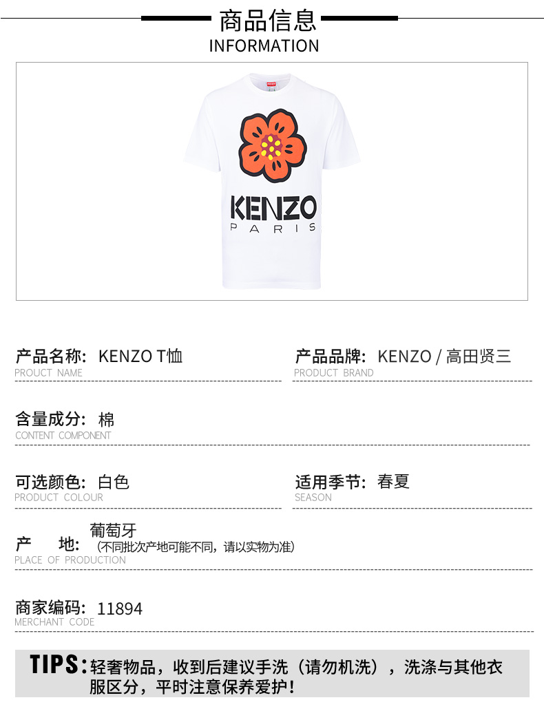【超惠秒】KENZO 高田贤三 男士 全棉海棠花logo质感圆领短袖T恤 11894