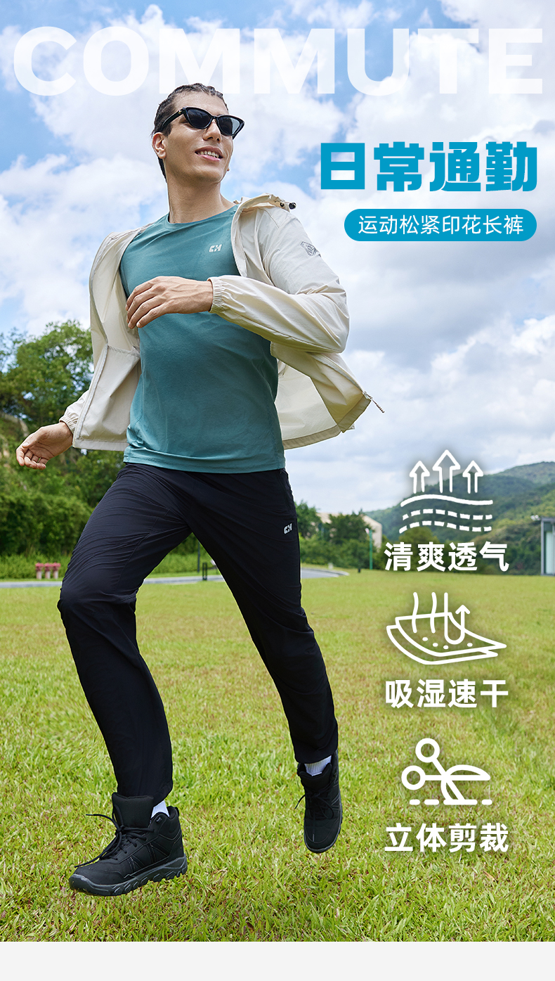 松紧长裤男 舒适透气吸湿速干 户外运动跑步登山徒步 CHF252011