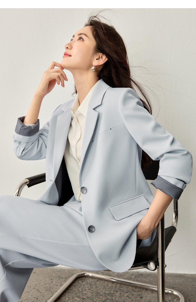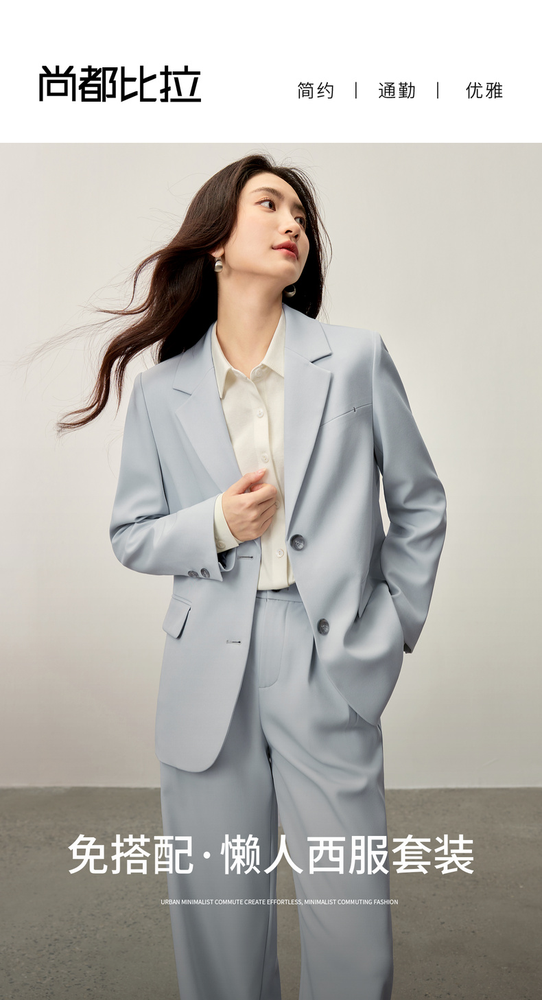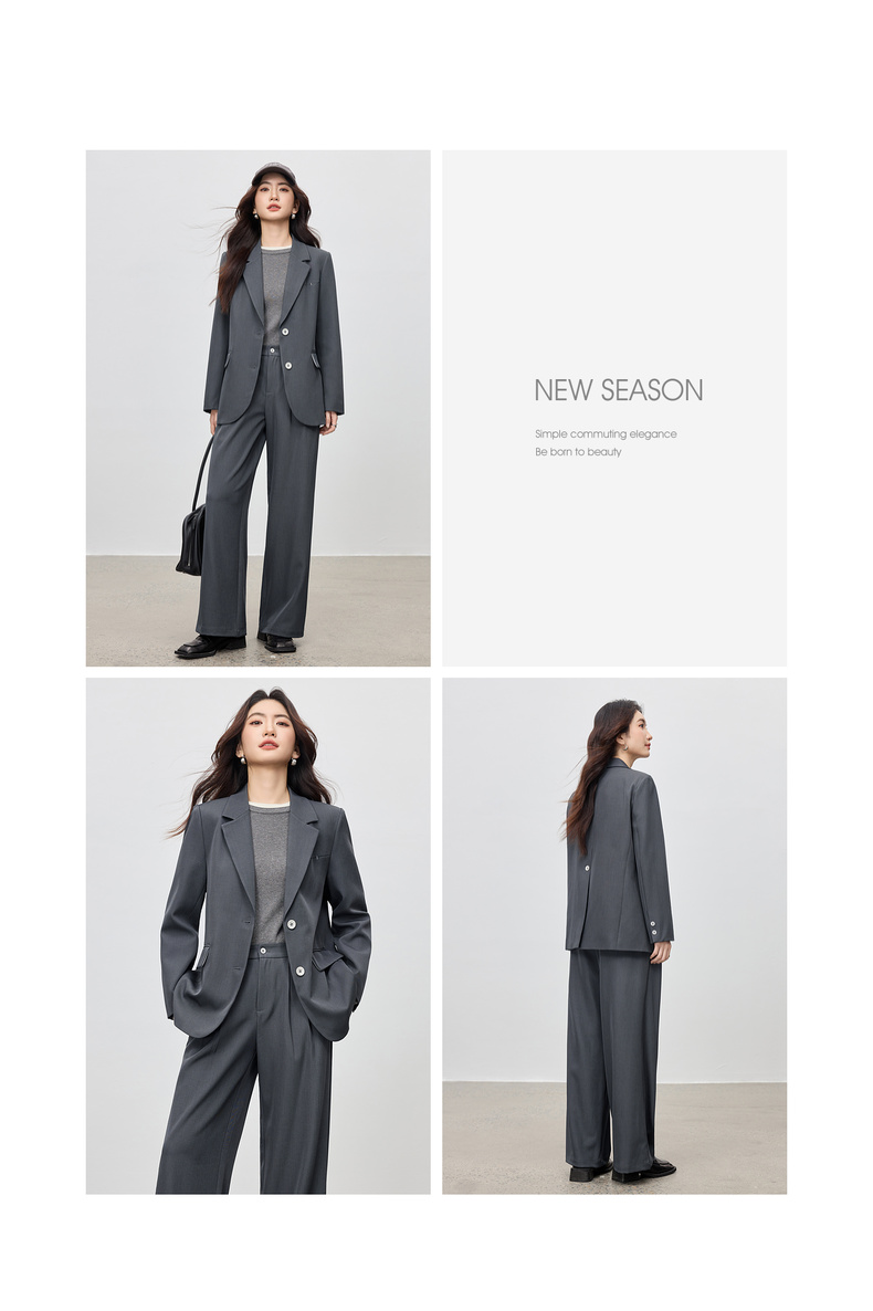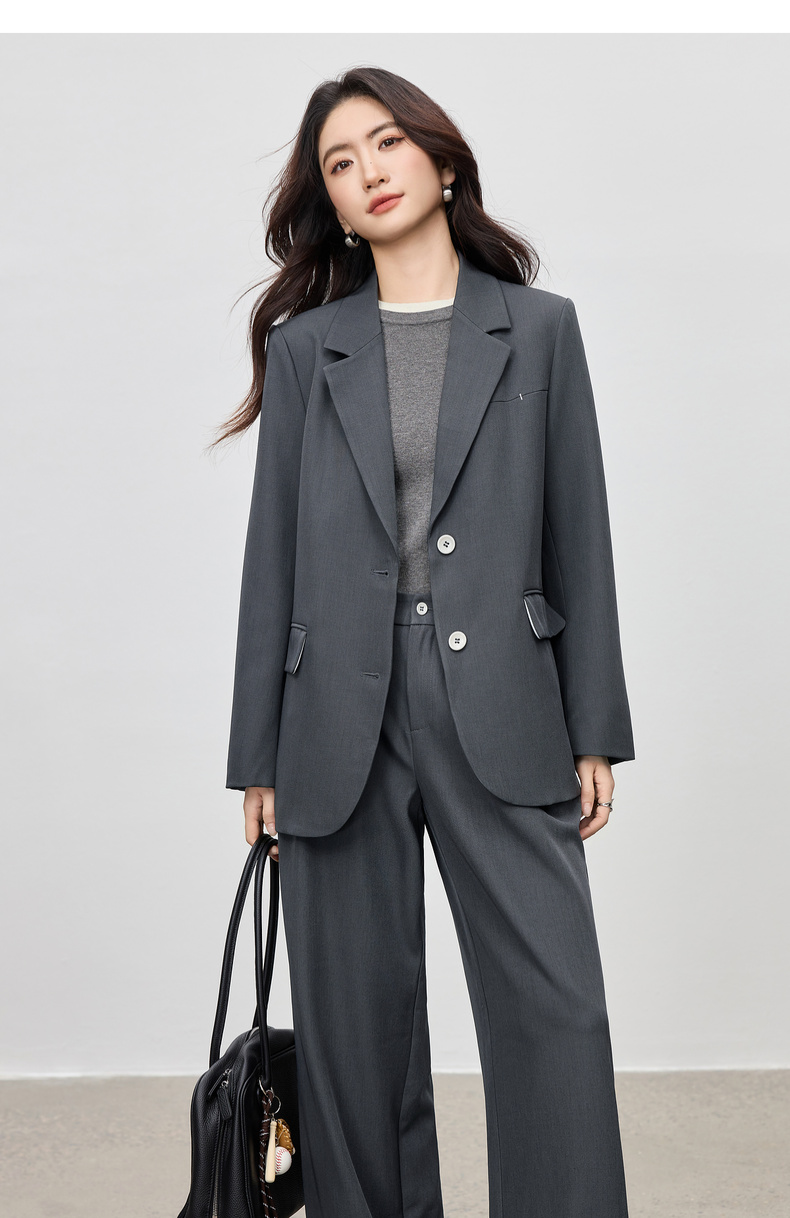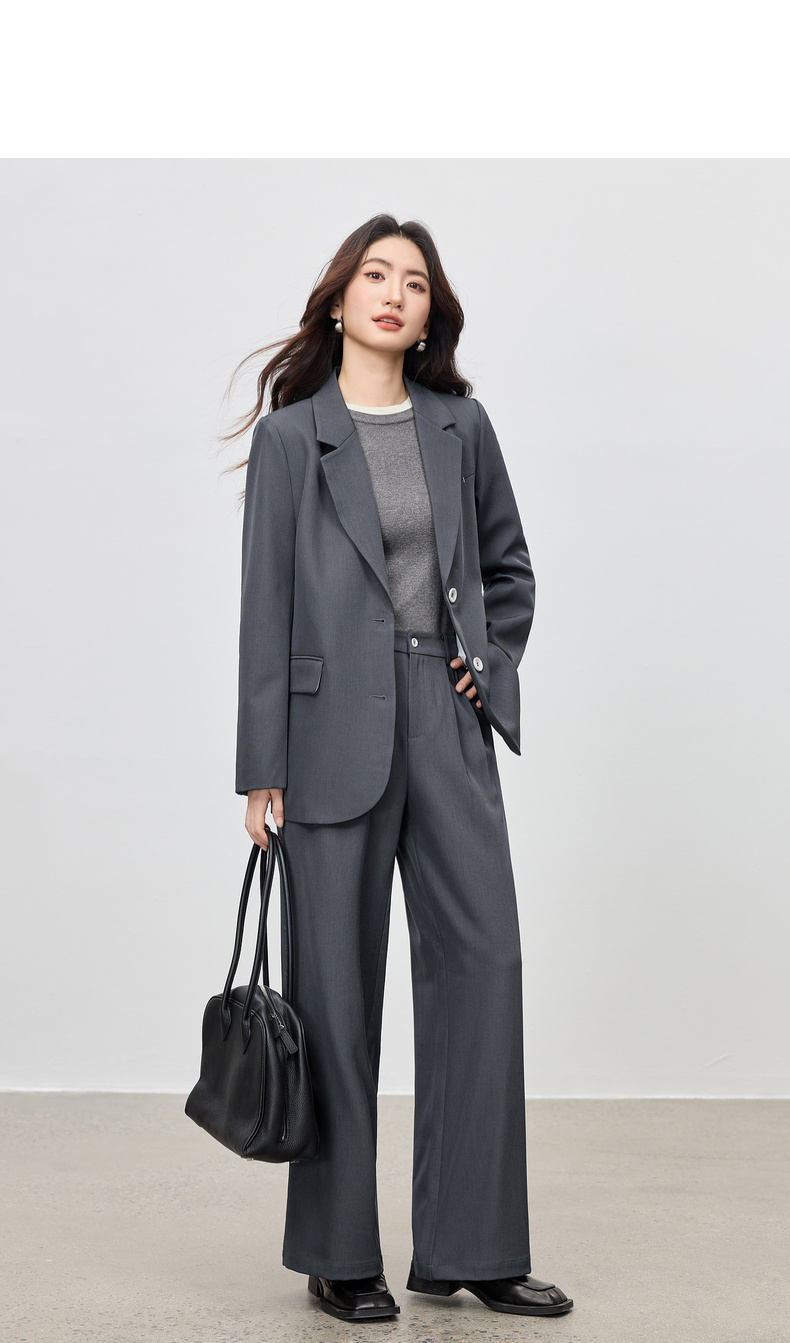 【内购】【懒人套装】平驳领垫肩下摆开叉垫肩西装外套&松紧双褶西装长裤-153ZE2168