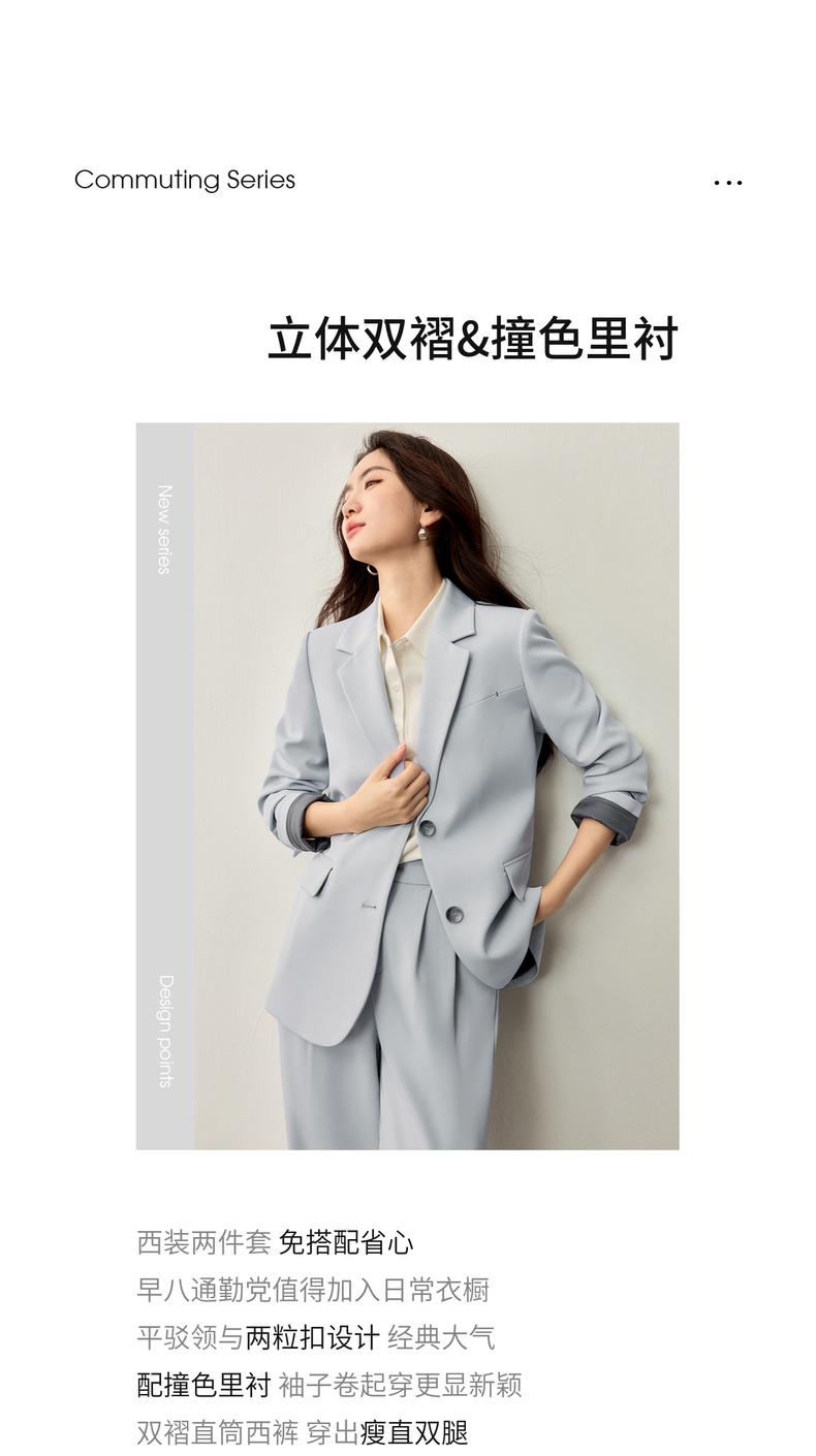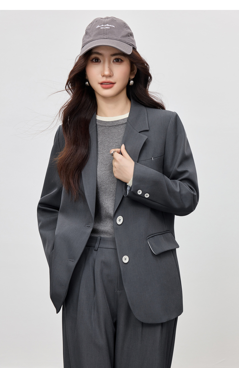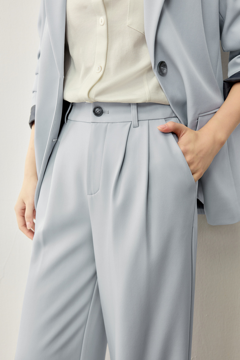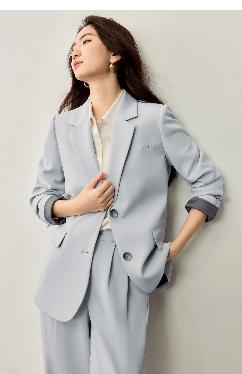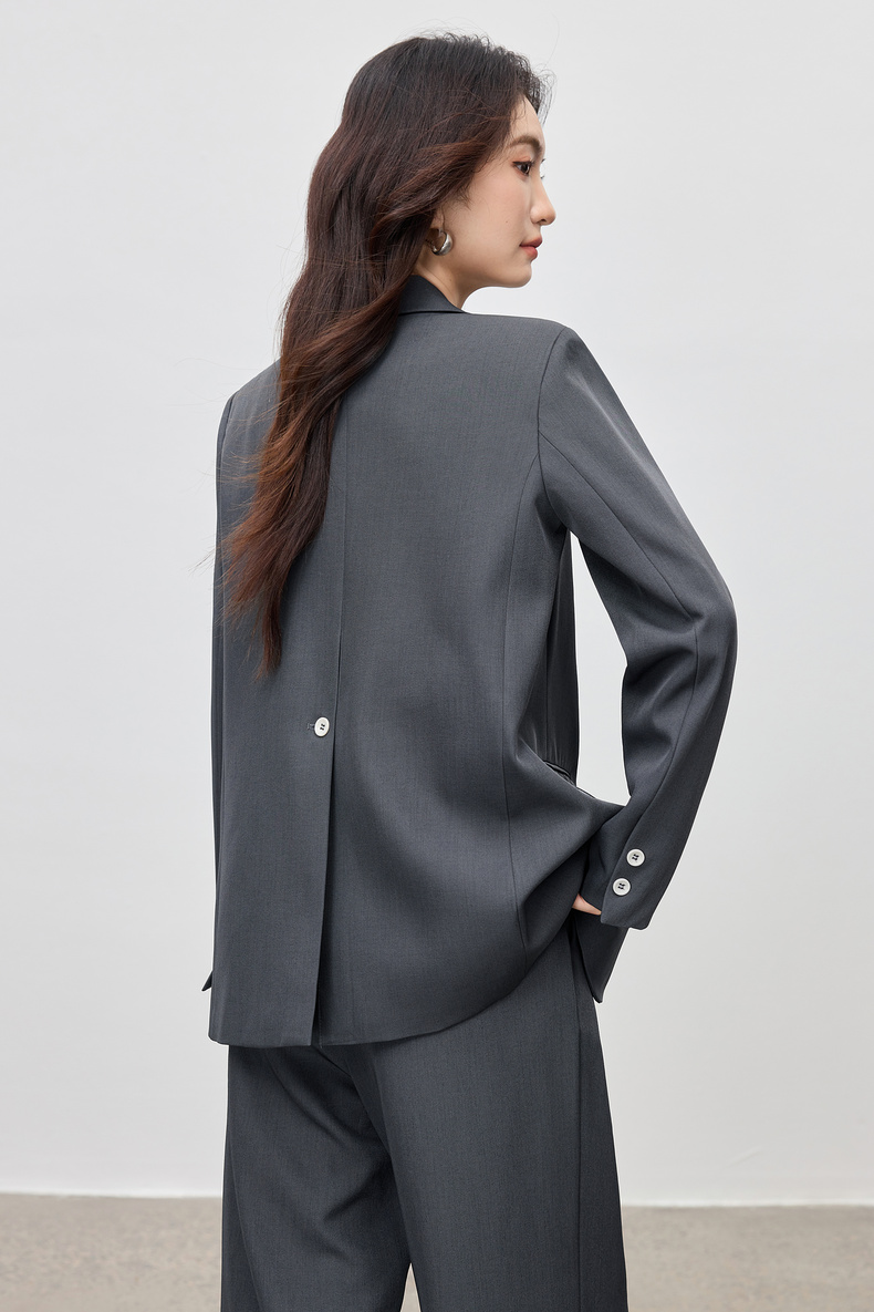 【内购】【懒人套装】平驳领垫肩下摆开叉垫肩西装外套&松紧双褶西装长裤-153ZE2168