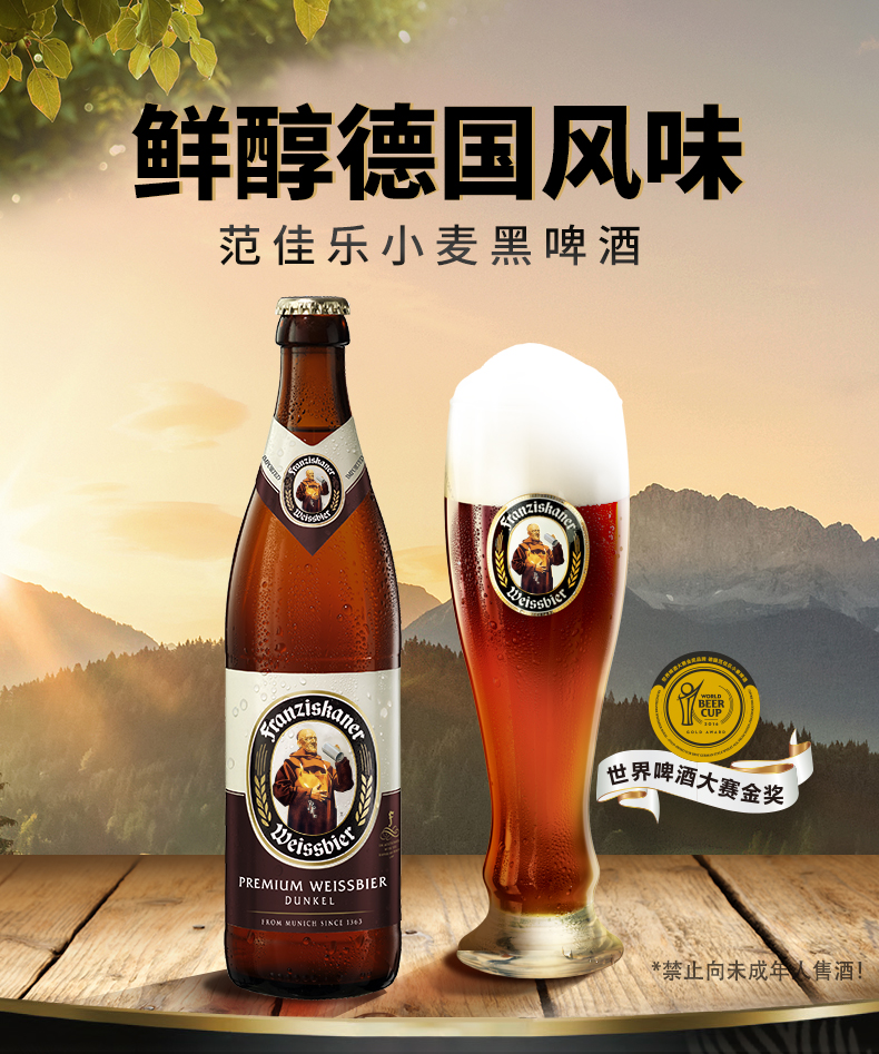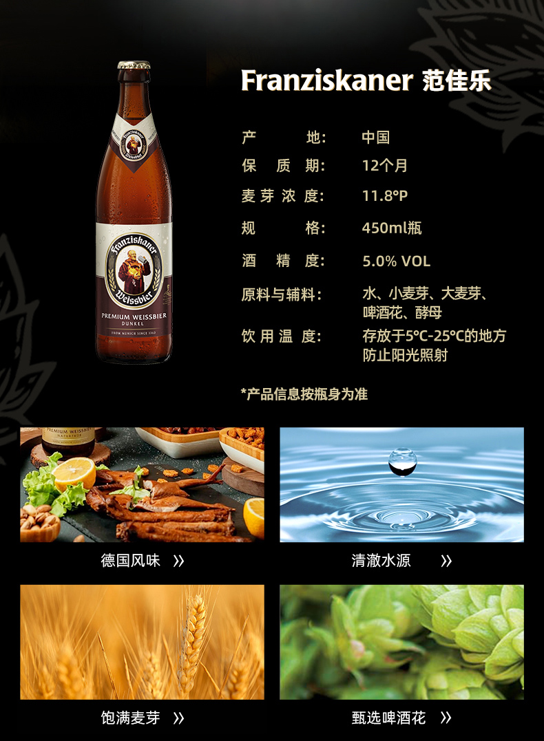 【整箱】范佳乐小麦啤酒 教士黑 450ml*12瓶 5%vol 麦芽汁浓度11.75
