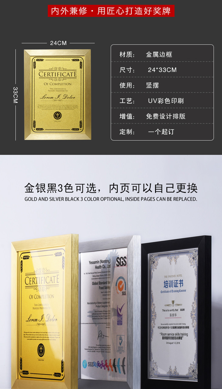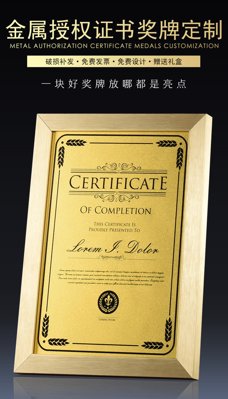 授权证书 奖牌制作室内设计师资格证 荣誉证书经销商 职业厨师证